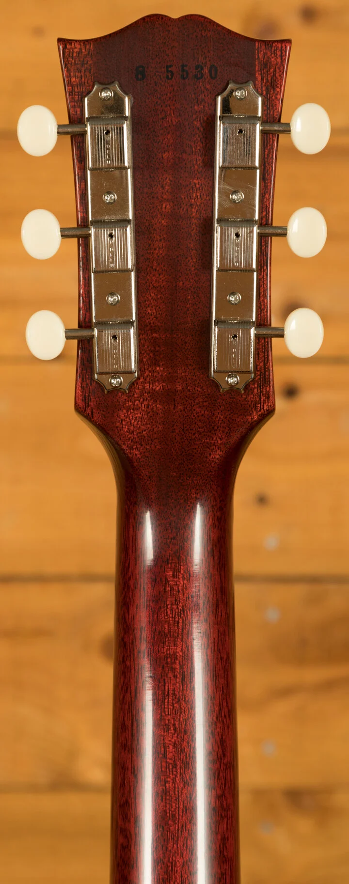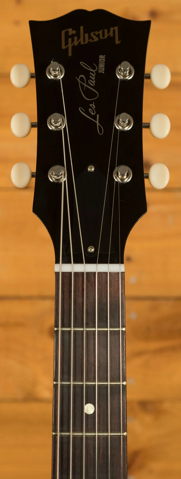 The Mahogany neck features an Indian Rosewood fingerboard which boasts 22 medium jumbo frets, a 24.75" scale length, a 50s Rounded Medium C-Shape profile and of course pearloid dot inlays. This 1958 Les Paul Junior Double Cut is super easy and smooth to play.