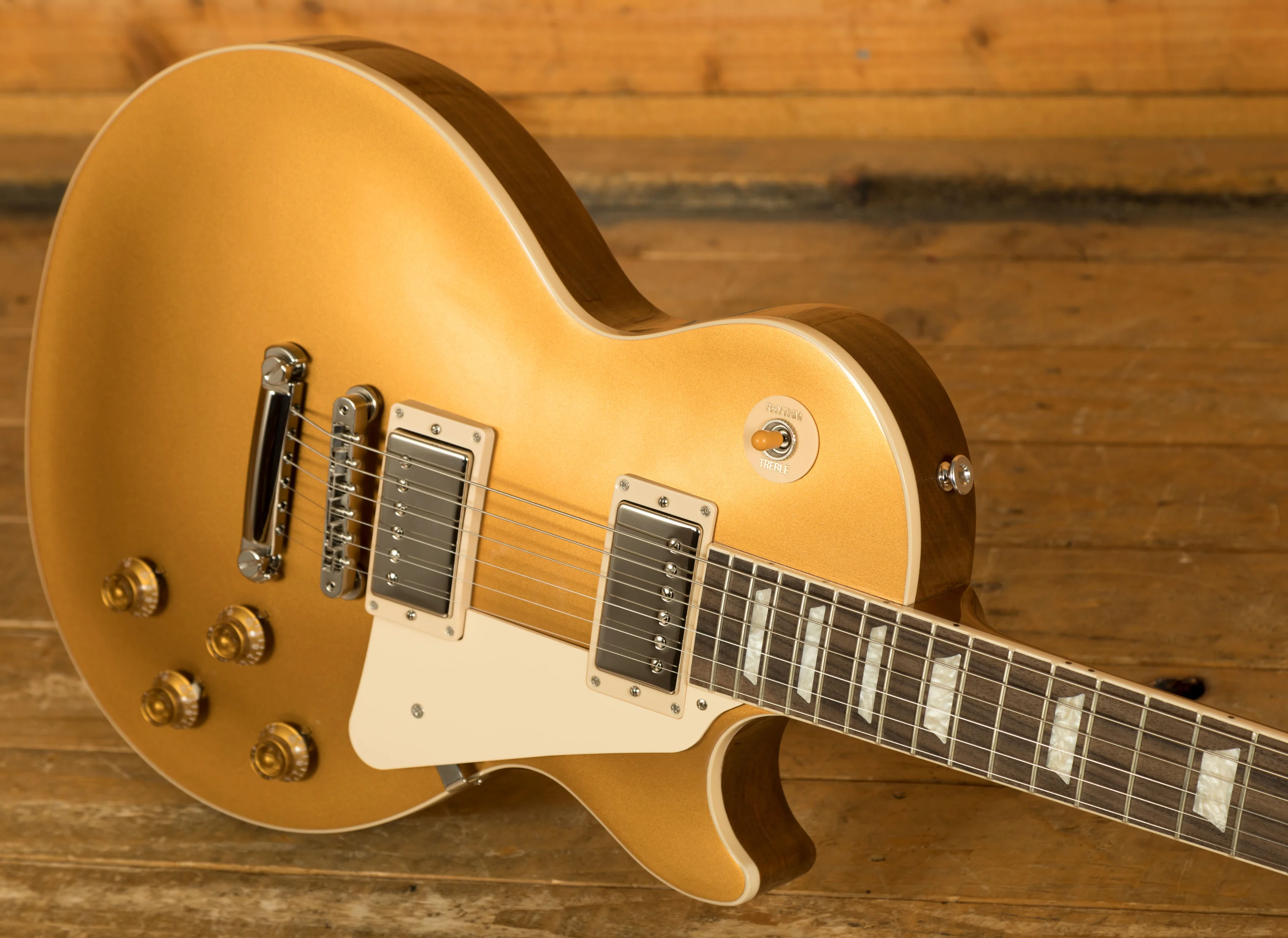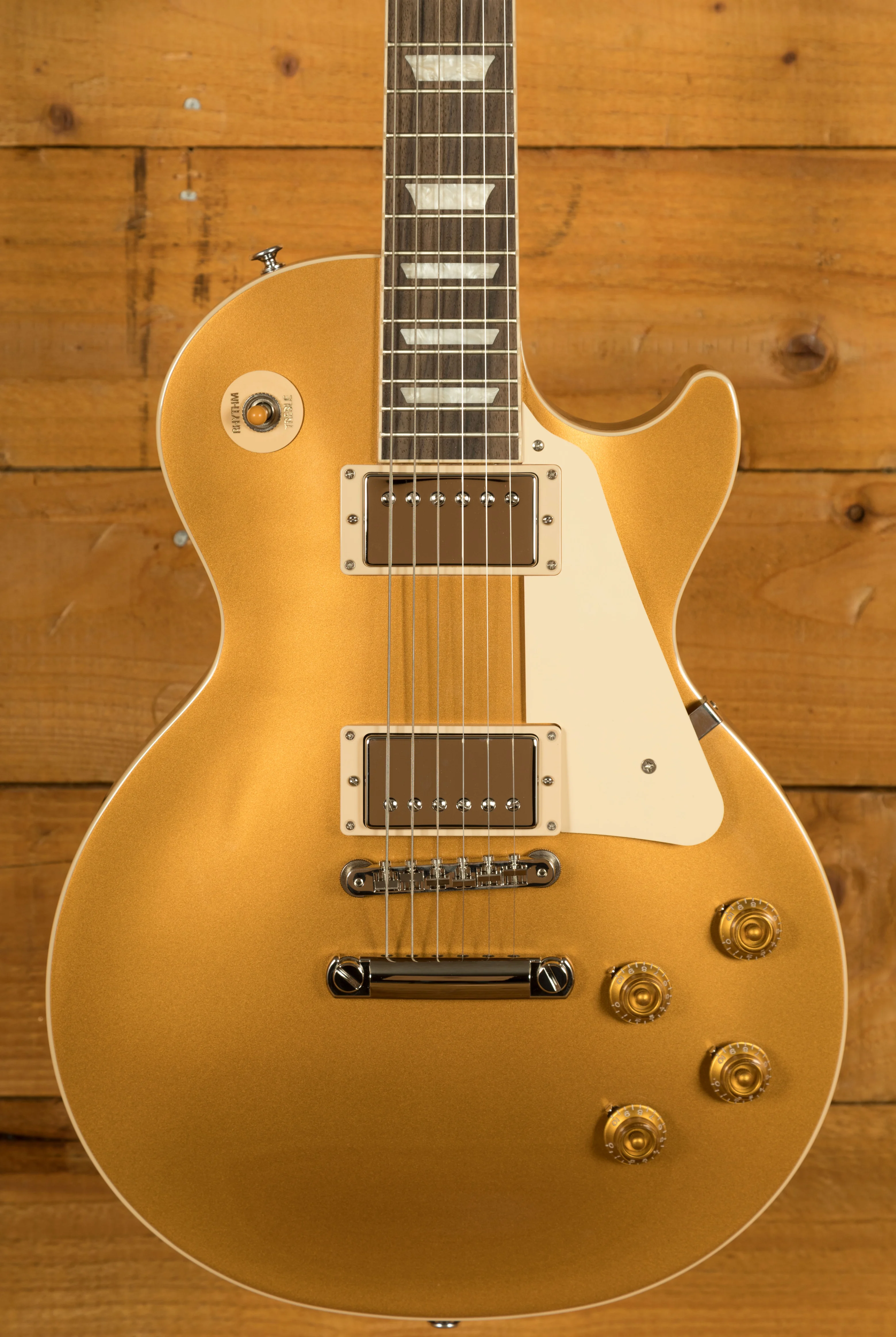 With a Mahogany body, this Les Paul benefits from a Maple top for the ultimate tonewood partnership. Rich and super resonant it offers premium tone and timeless aesthetics, while the Gold Top finish looks a million dollars and really allows the wood to breathe and the natural tone to sing through.