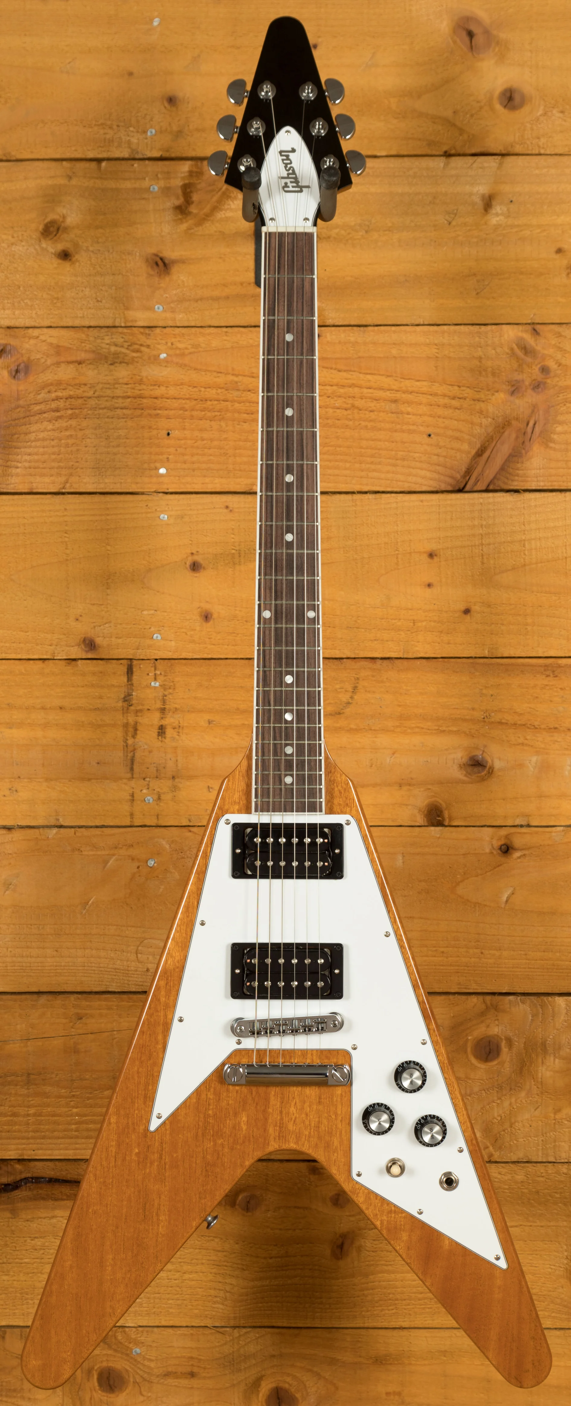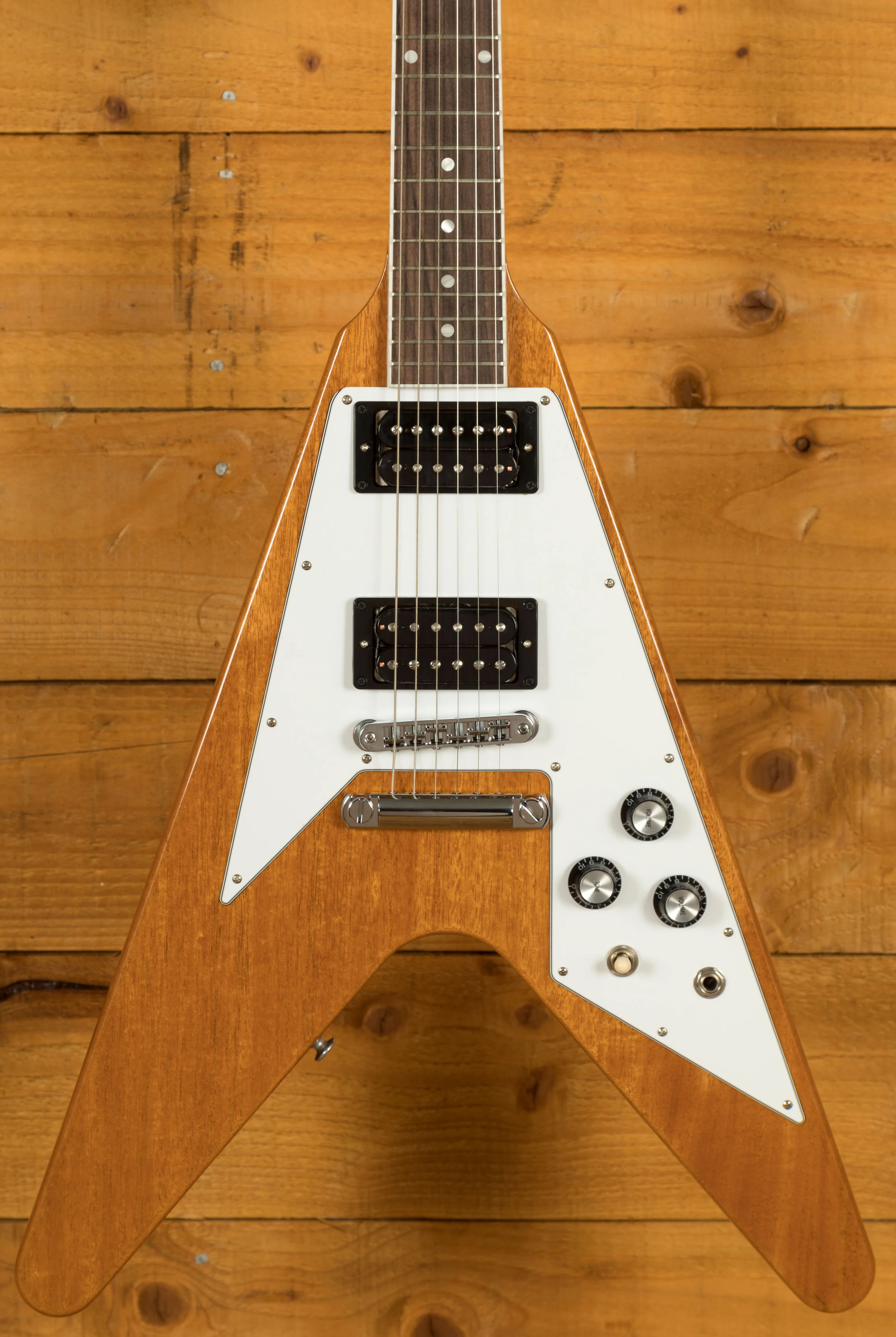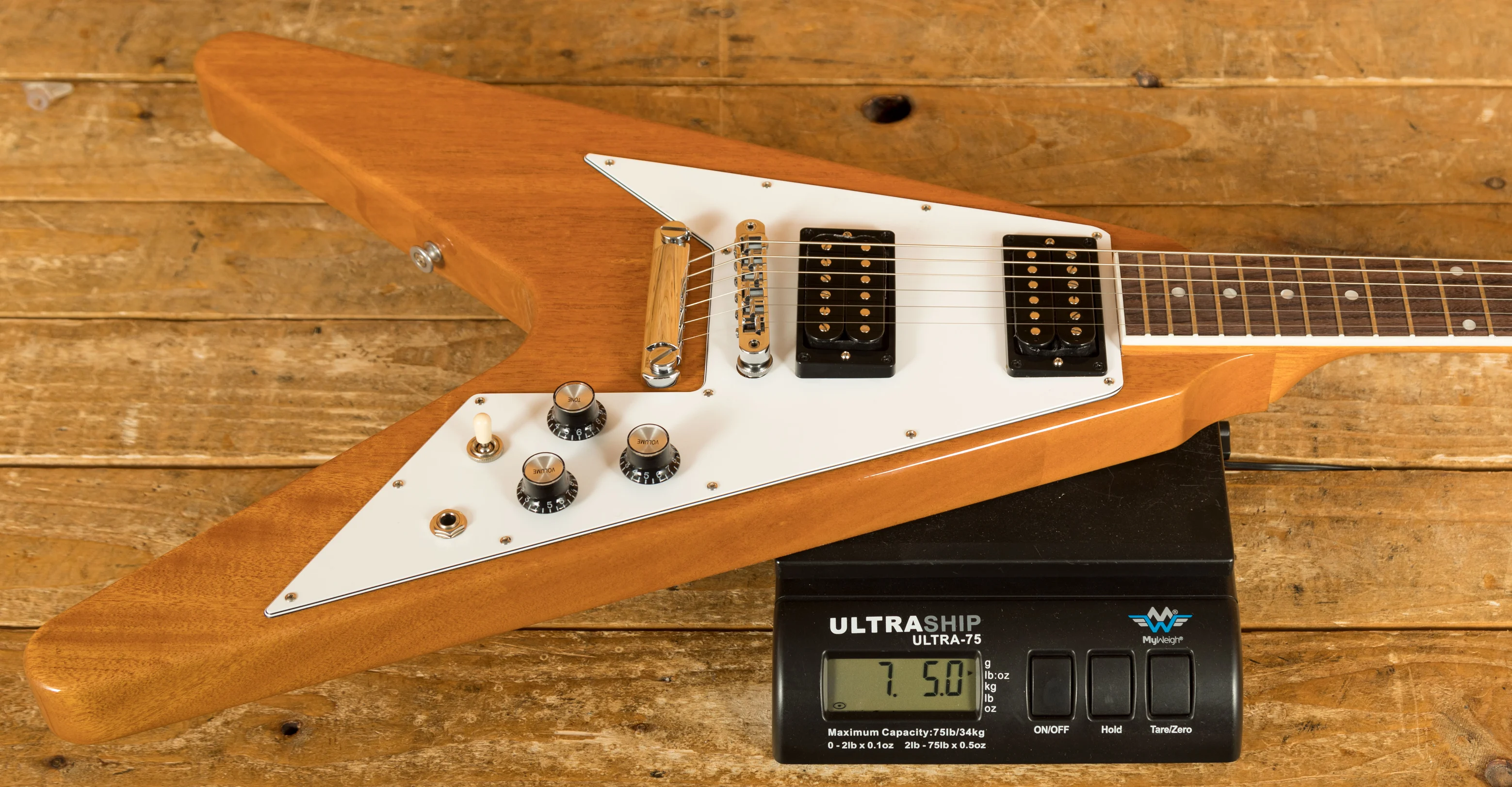 The Gibson 70's Flying V honours the rich history of this iconic guitar with some incredible features! The body is crafted from solid Mahogany for a deep, resonant tone, perfect for embracing the heavier side of life, the body is really nicely weighted and balanced. Finished in Antique Natural, it looks as cool today as it did 60 years ago.