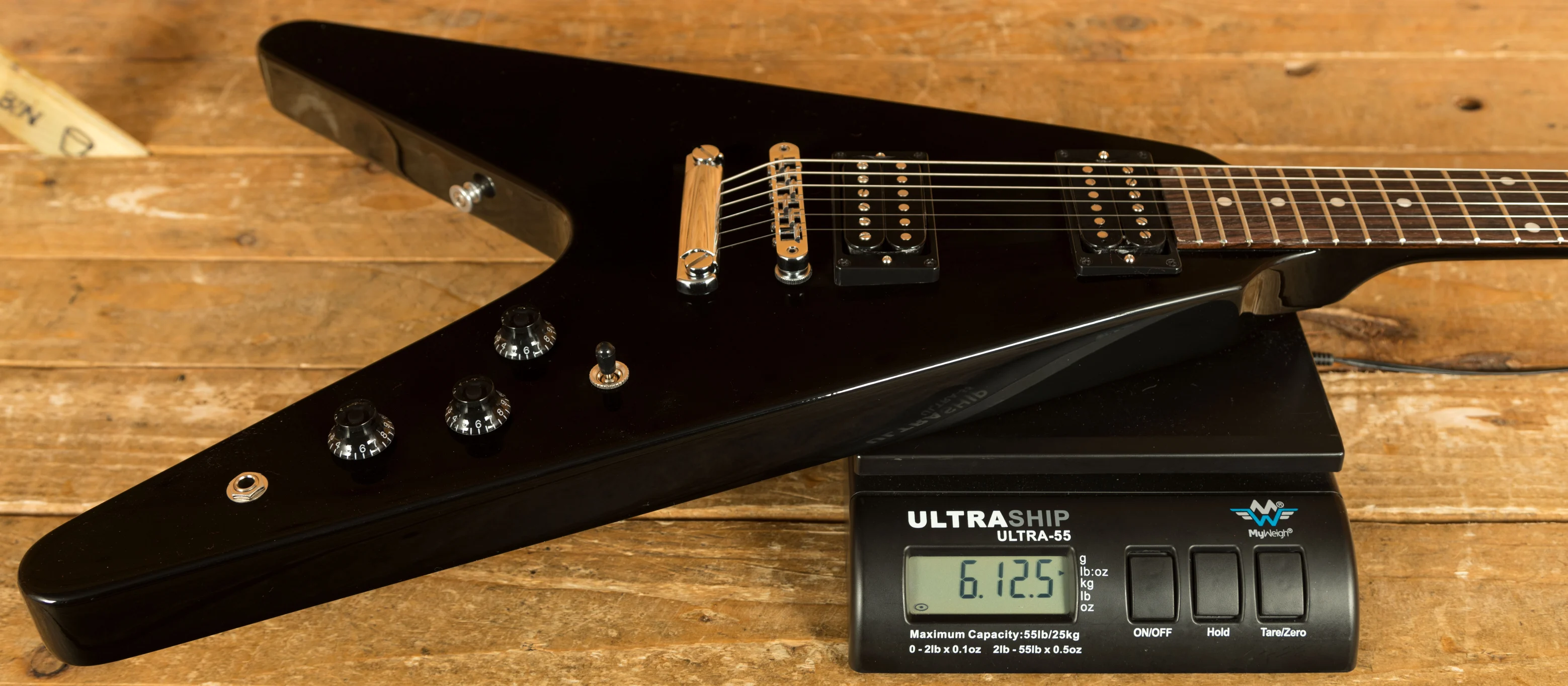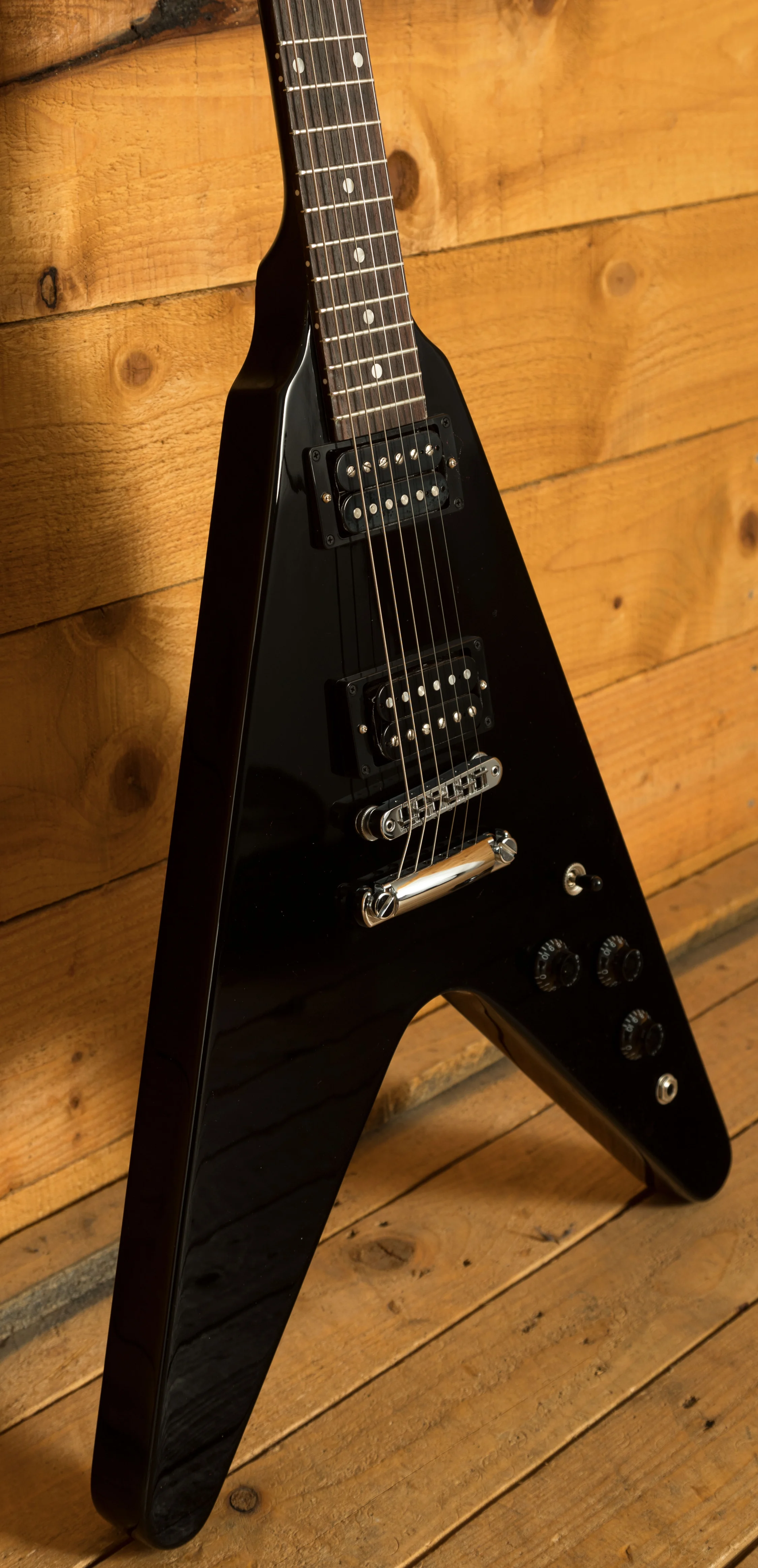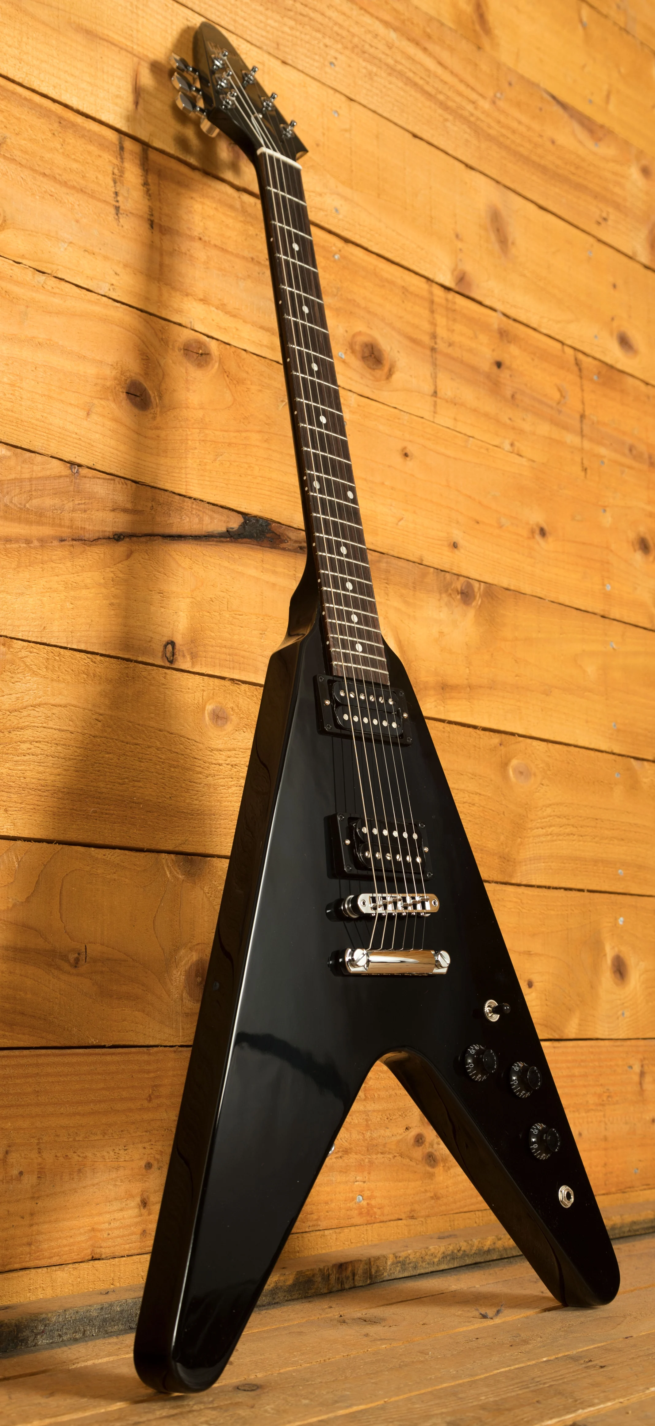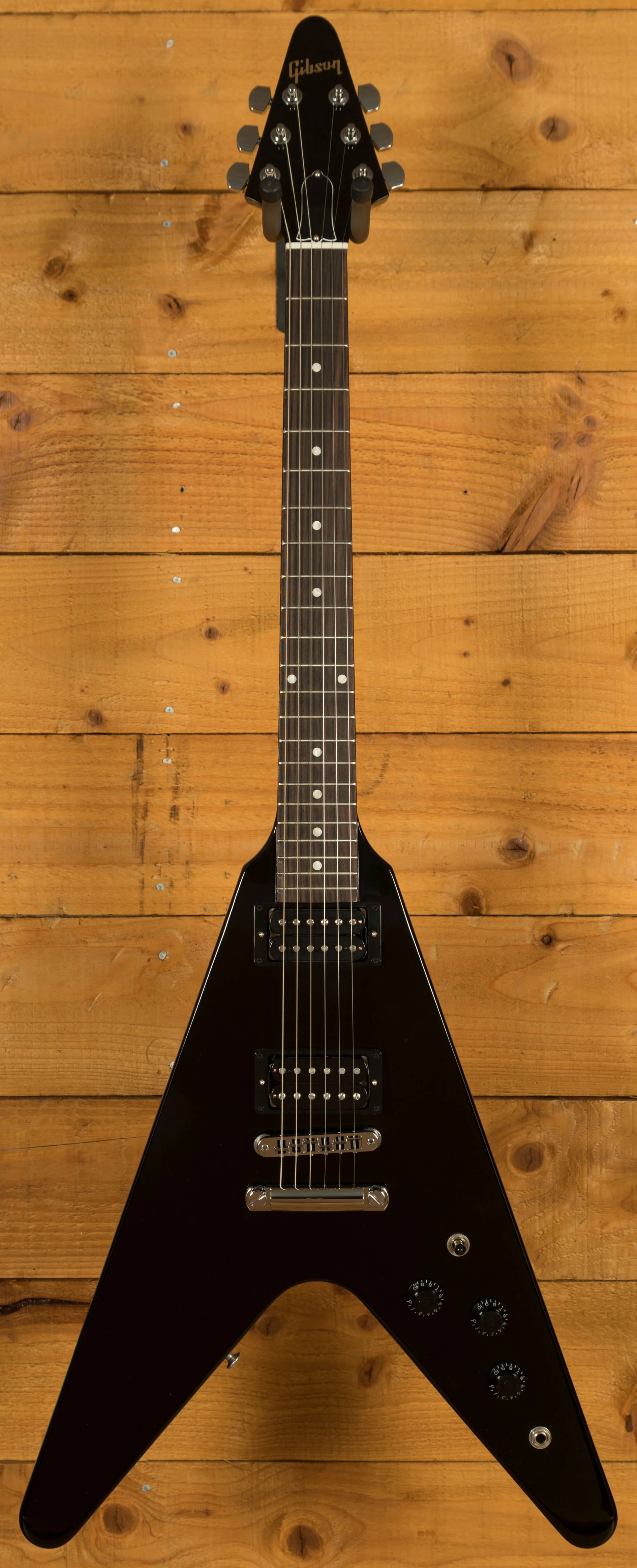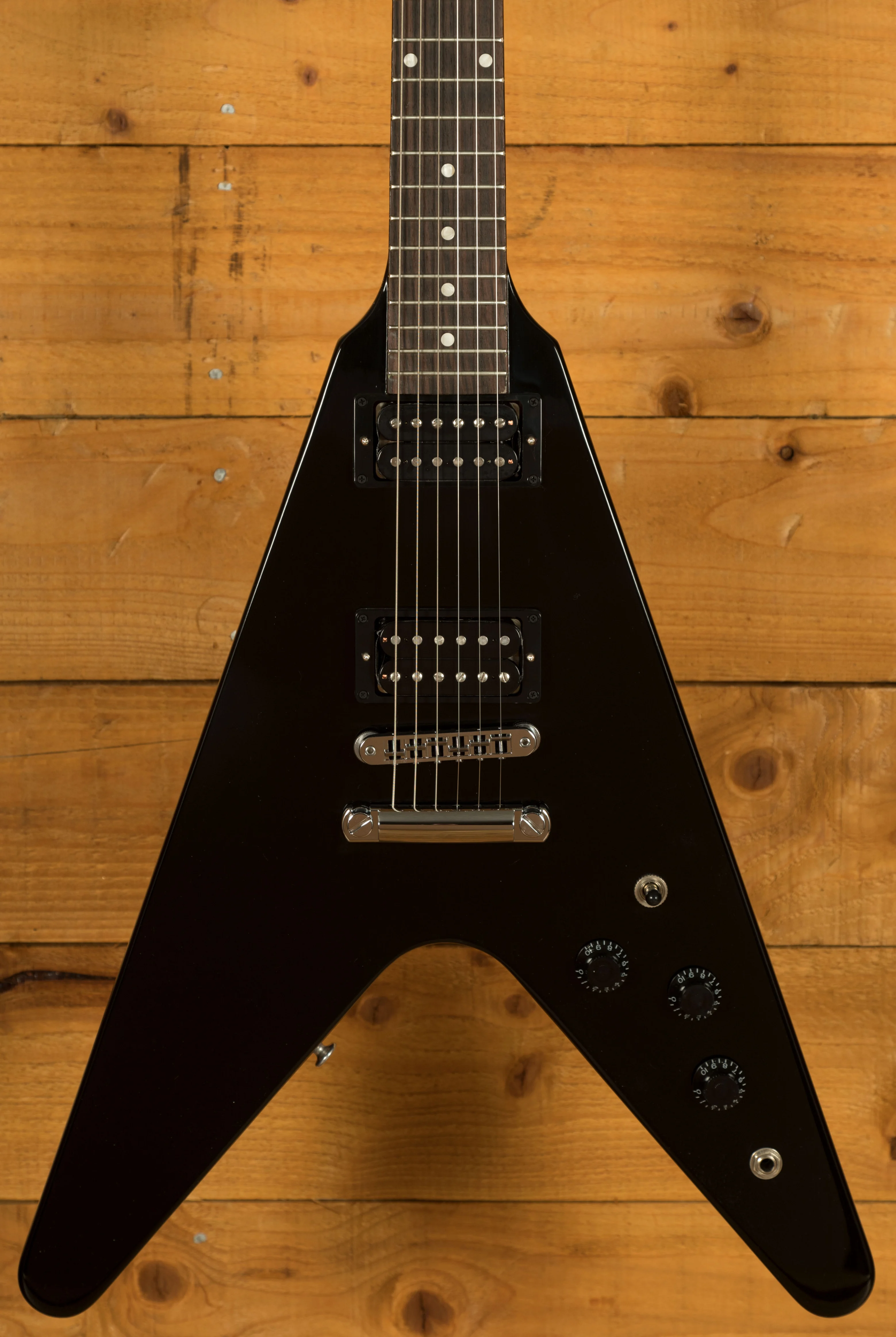 The Mahogany neck rocks a Slim Taper neck profile, 22 medium jumbo frets, a 24.75" scale length, and a killer Rosewood fingerboard with a 12" radius. Super stable and supremely comfortable, the 80s Gibson Flying V is a real powerhouse.