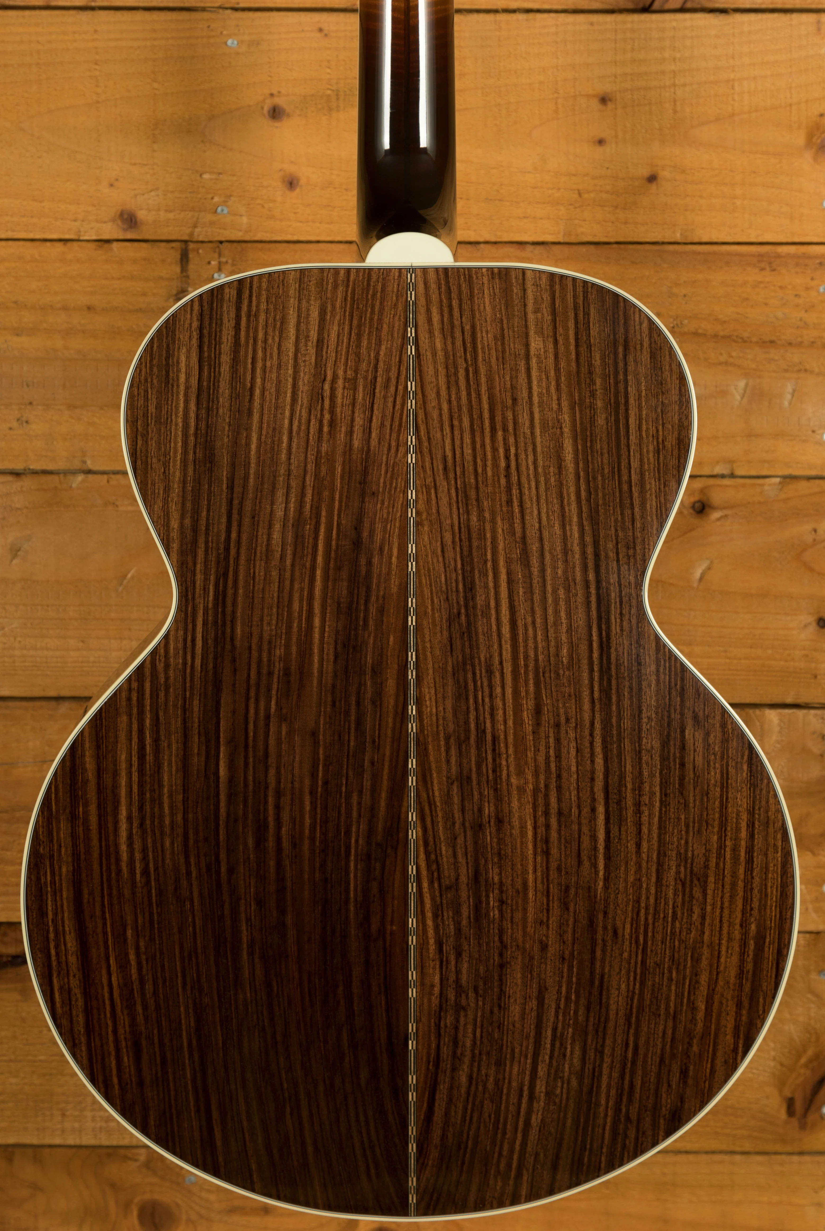 This awesome guitar features high-quality appointments and hardware across the board. It features Grover Mini Rotomatic tuners, and a traditional SJ-200 moustache bridge crafted from solid Rosewood.