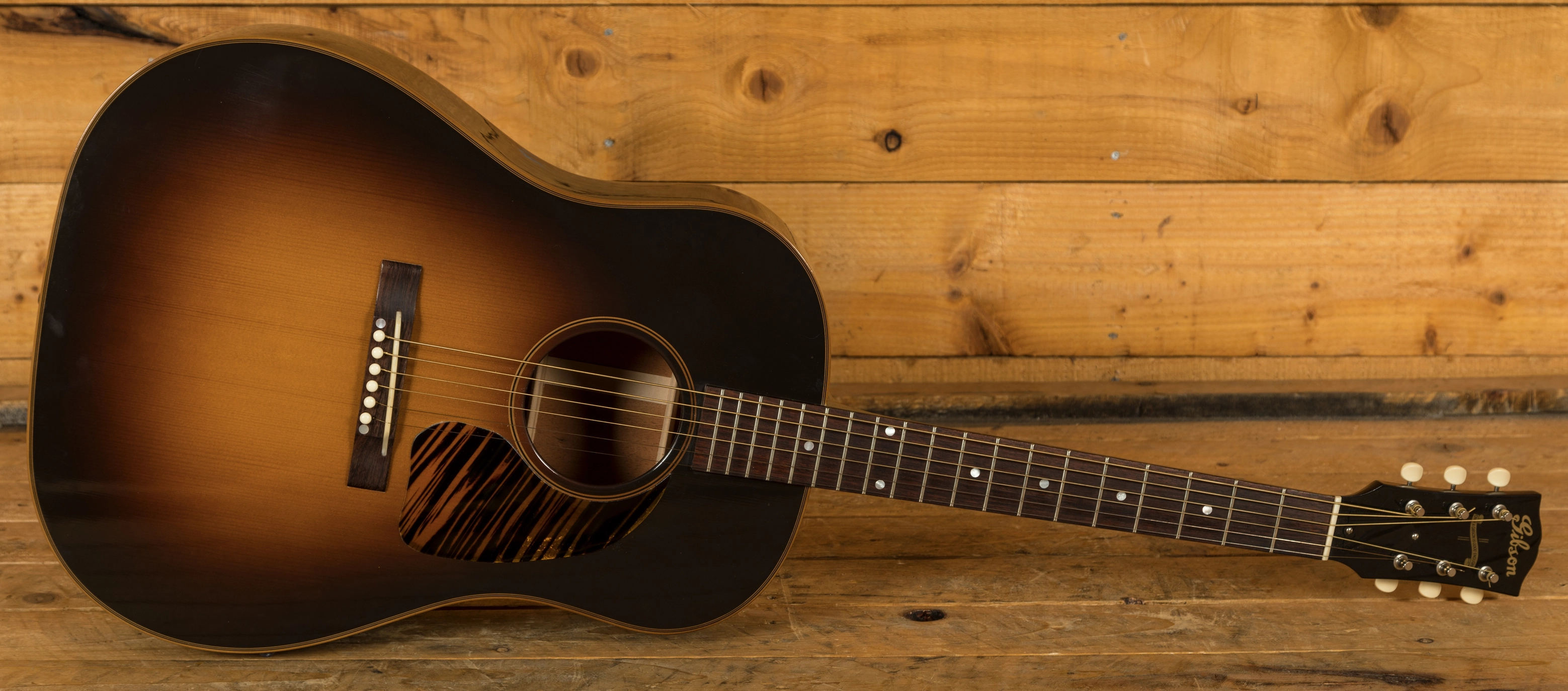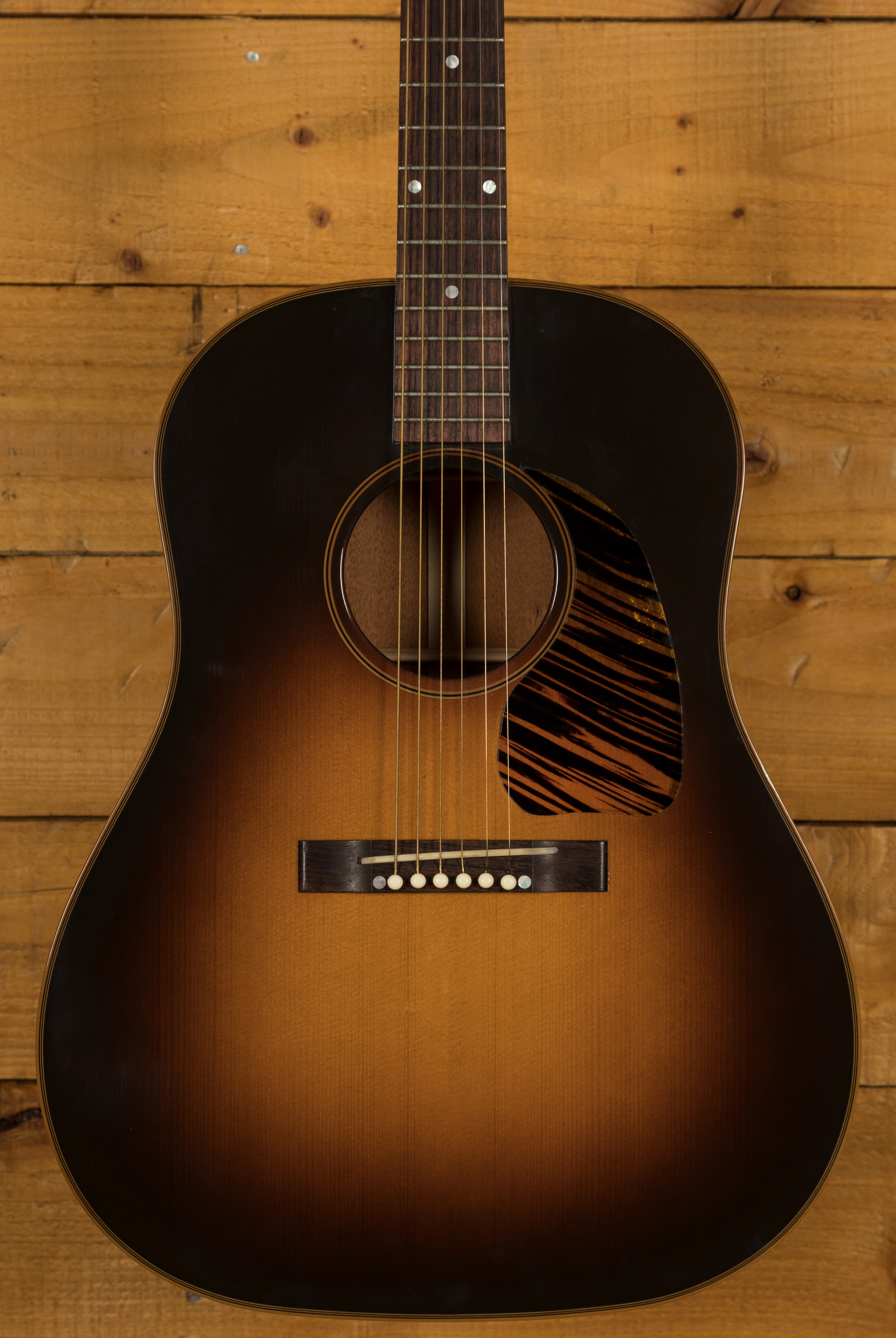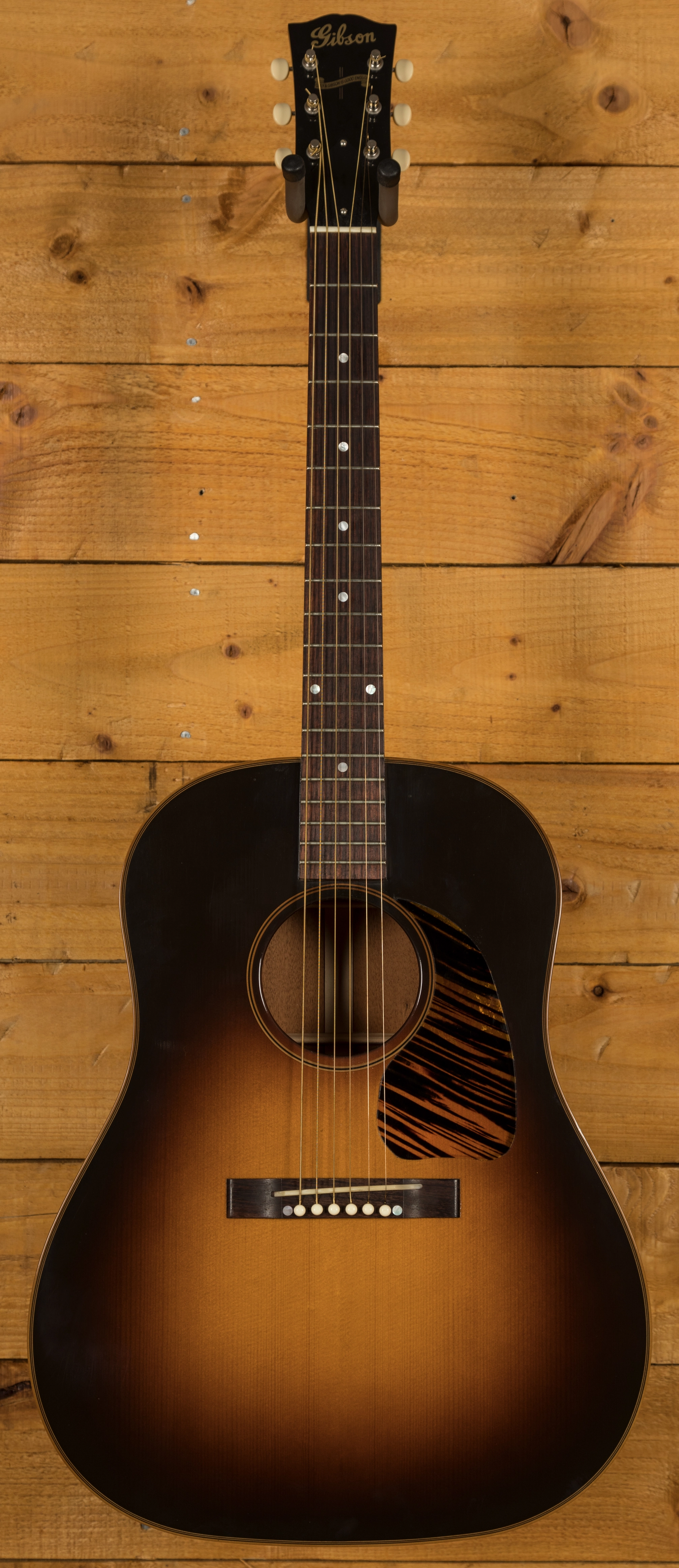 The Gibson J-45 is one of the most iconic acoustic guitars of all time. Since its release back in 1942, it has developed a reputation as the finest workhorse acoustic around, with its full, rich tone and effortless playability it's easy to understand why. The Gibson 1942 J-45 Legend is a tribute to the original series of workhorse guitars.