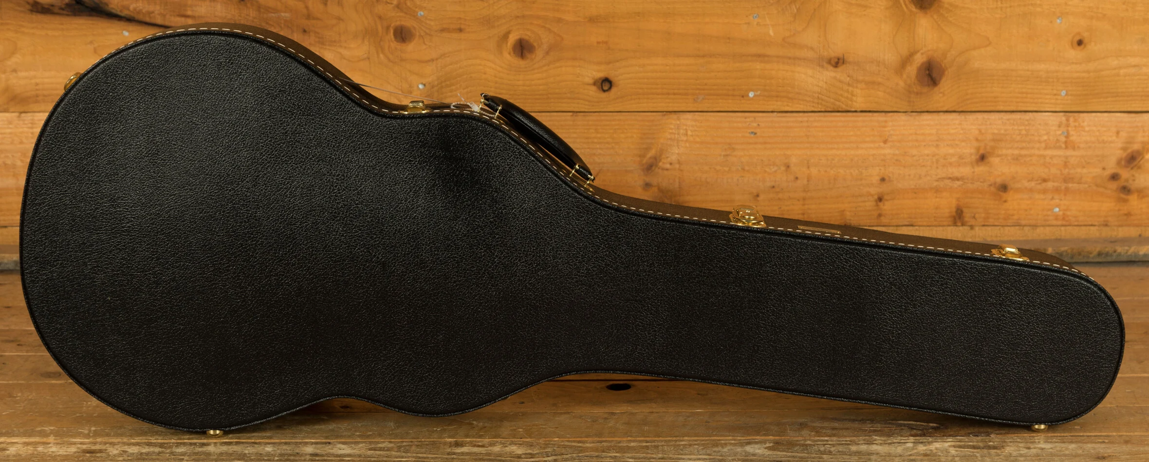 The Mahogany neck boasts a 24.75" scale length, an Ebony fingerboard with mother of pearl block inlays; it feels perfectly balanced and poised, just as a Les Paul should. With the period correct long neck tenon and hide glue fit, this guitar delivers incredible sustain and resonance.