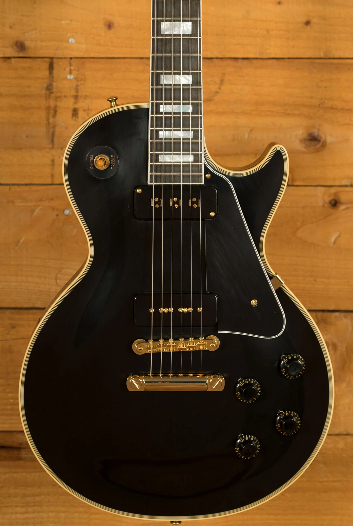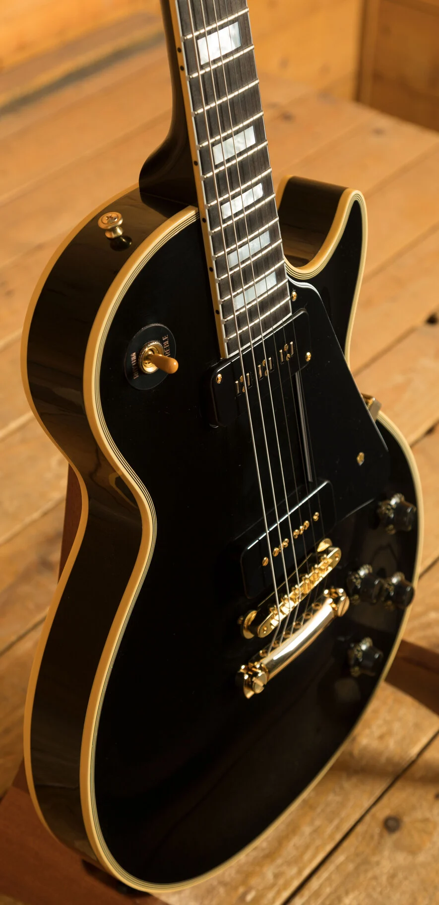 This Gibson '54 Les Paul Custom is the ultimate way to experience what makes the Les Paul so special. With a solid Mahogany body, the Custom is finished in stunning Ebony VOS with Gold hardware. I think it's fair to say it's a real eye catcher.