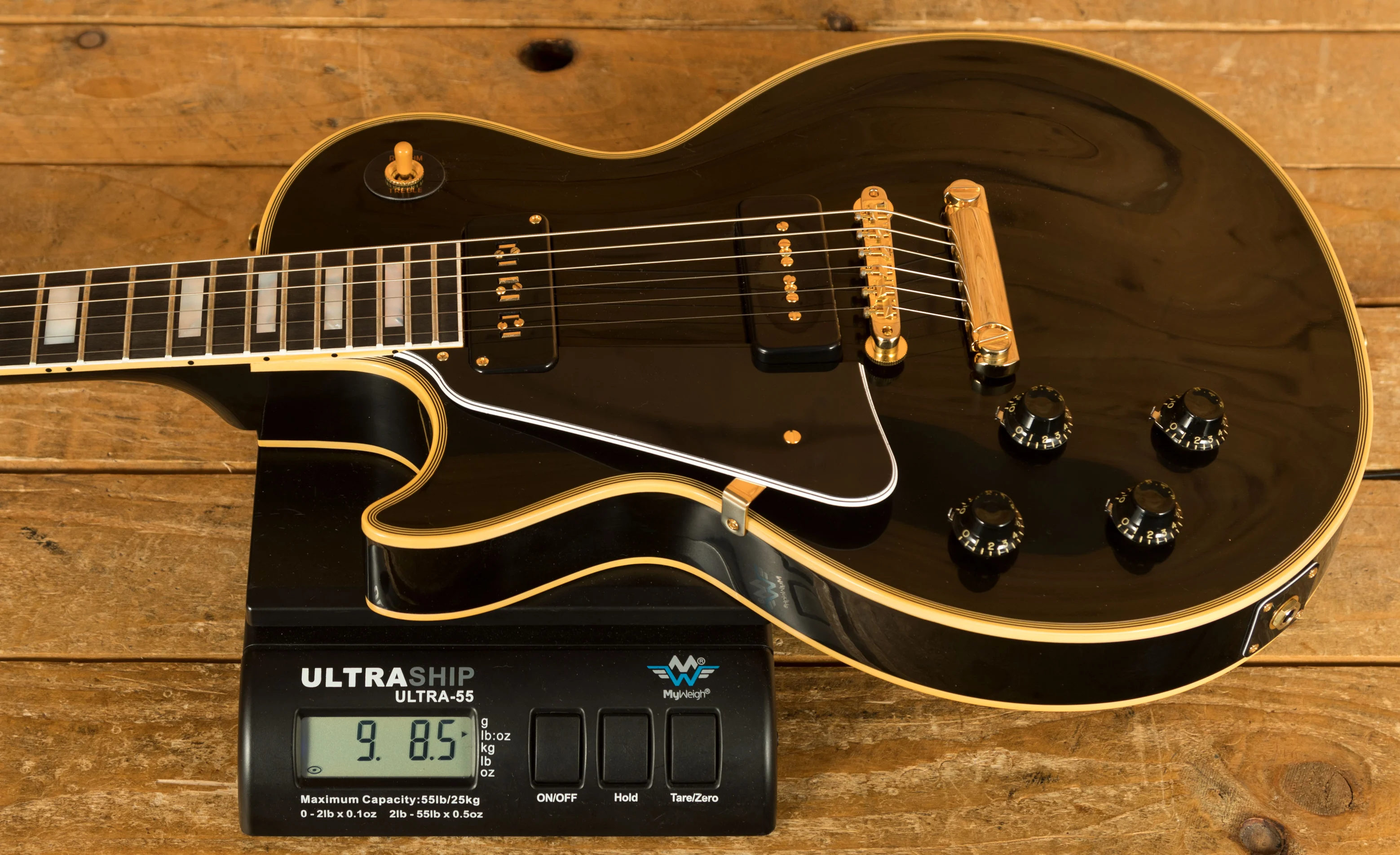 The Mahogany neck boasts a 24.75" scale length, an Ebony fingerboard with mother of pearl block inlays; it feels perfectly balanced and poised, just as a Les Paul should. With the period correct long neck tenon and hide glue fit, this guitar delivers incredible sustain and resonance.