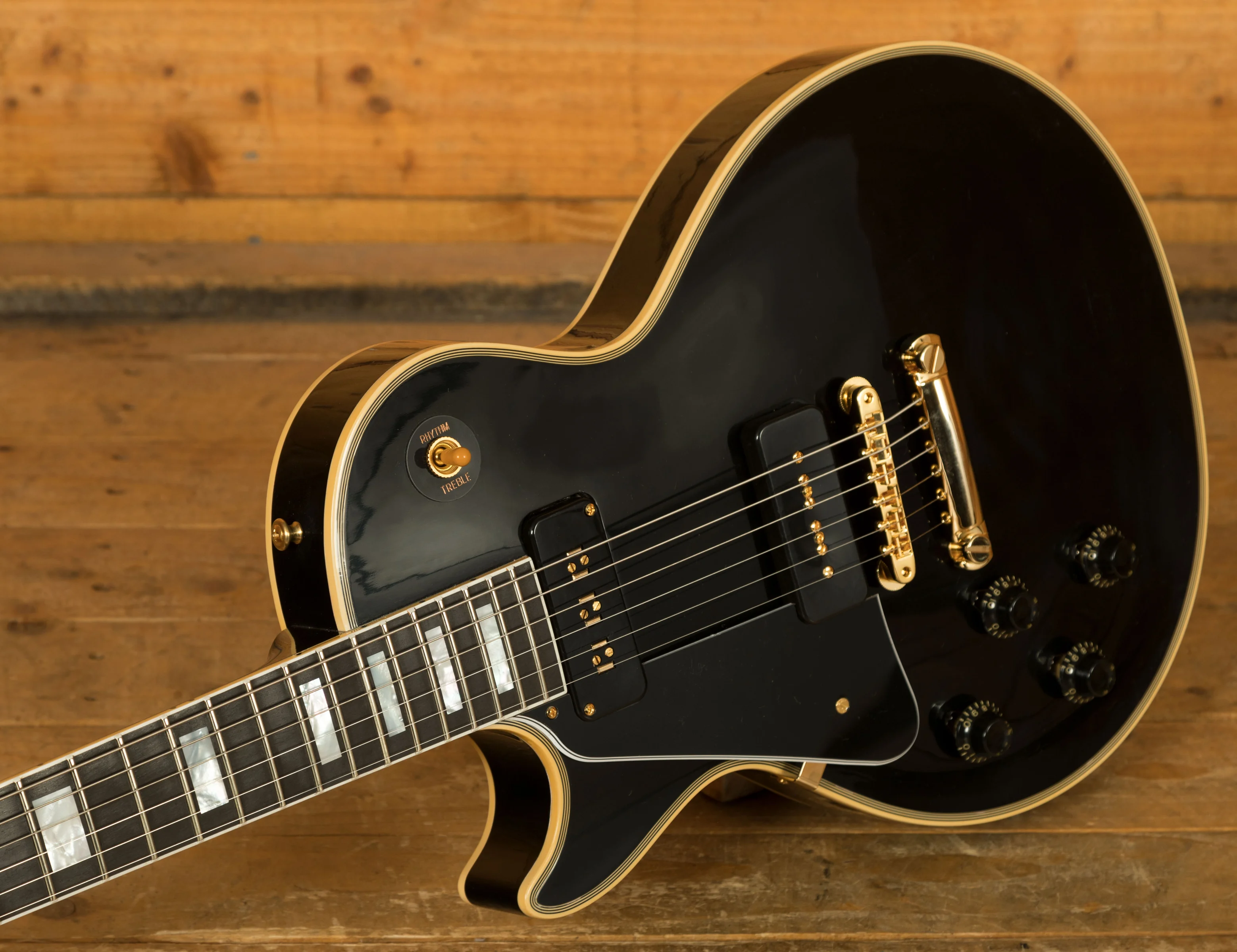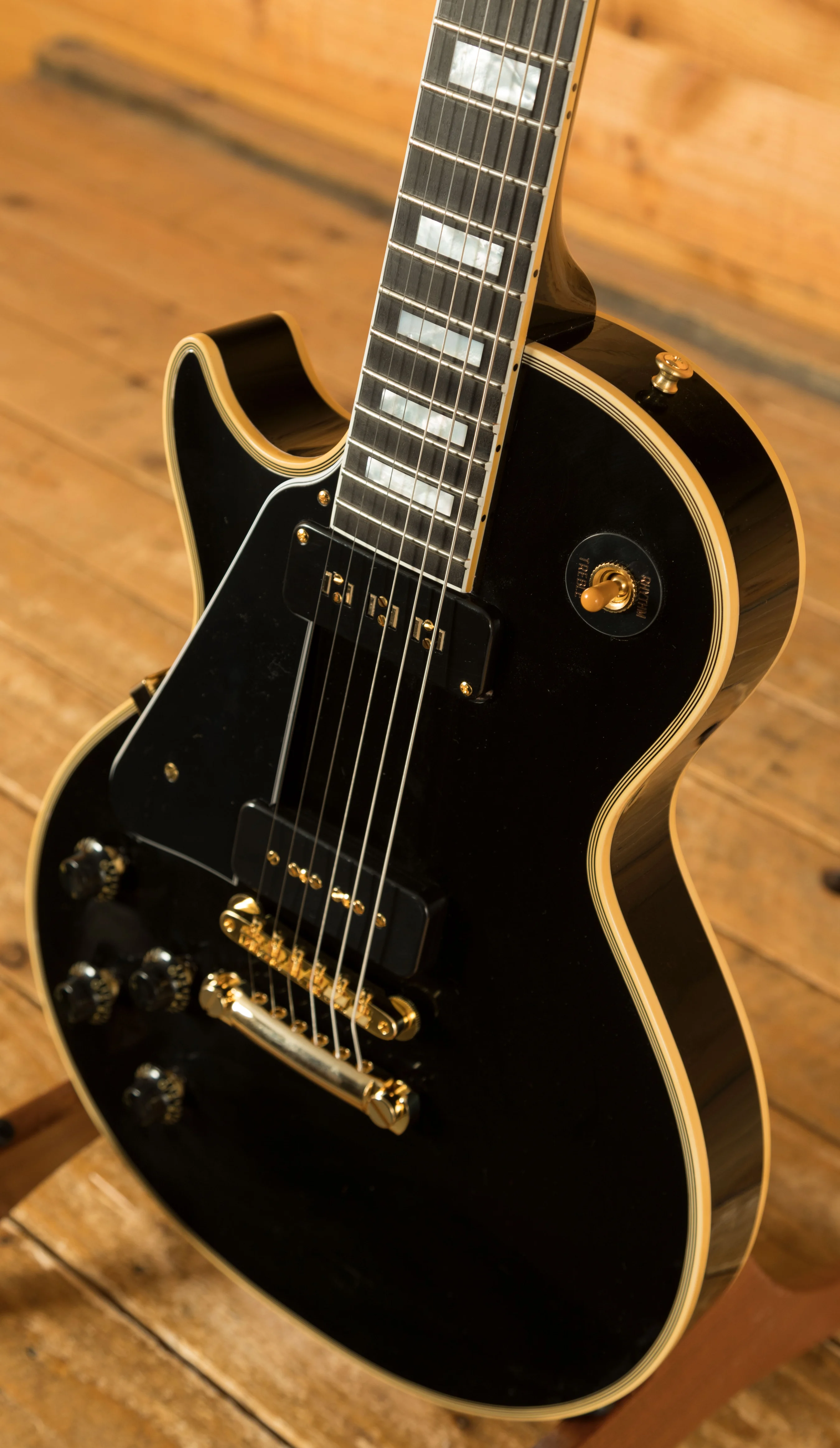 The Les Paul Custom is loaded with a duo of Gibson pickups, a P90 at the bridge and a fabled staple Alnico V at the neck. These deliver an alternative take on that authentic tone that only a Les Paul can produce.