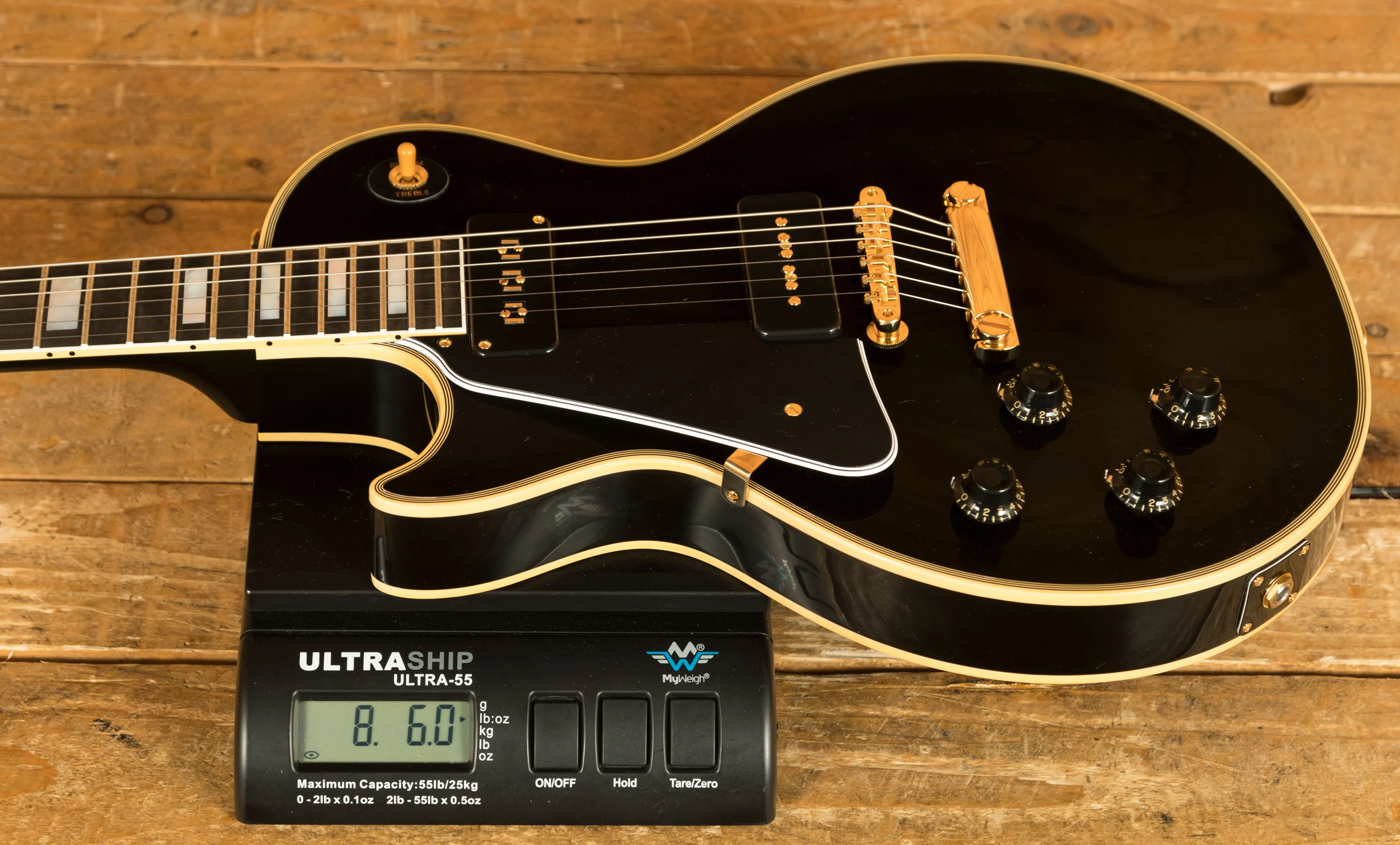 The Mahogany neck boasts a 24.75" scale length, an Ebony fingerboard with mother of pearl block inlays; it feels perfectly balanced and poised, just as a Les Paul should. With the period correct long neck tenon and hide glue fit, this guitar delivers incredible sustain and resonance.