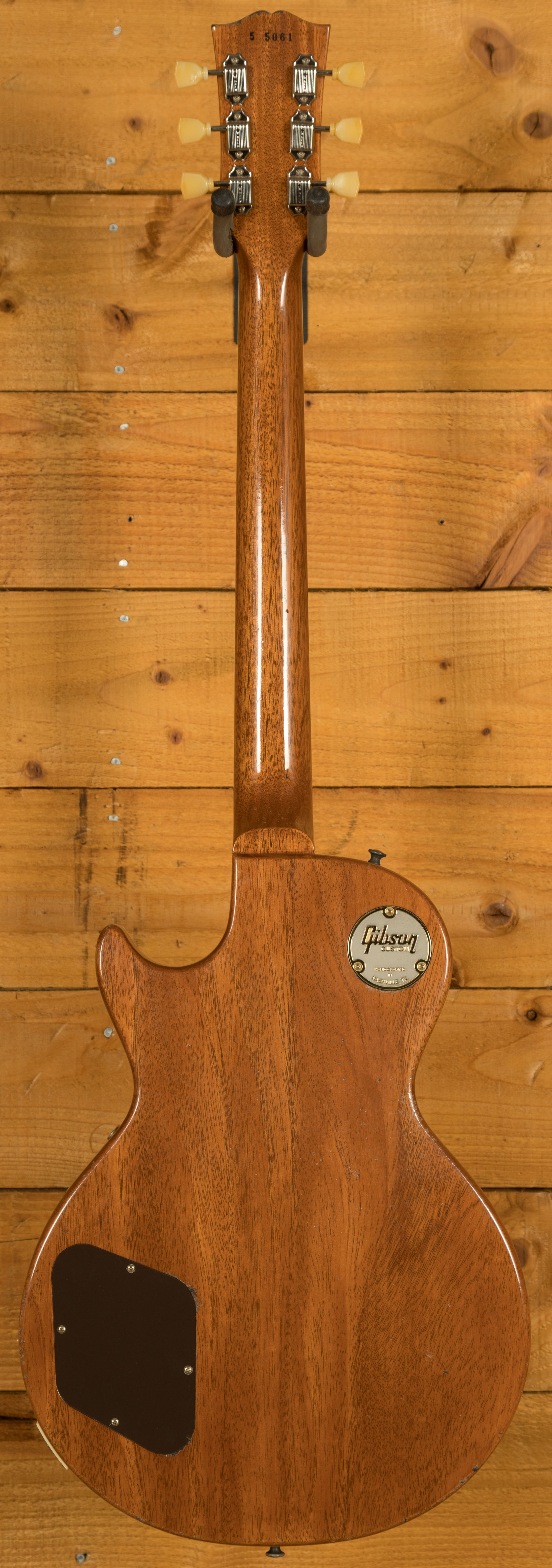 On this guitar, youll find premium hardware across the board. It features Kluson single line tuners, alongside a No-Wire ABR-1 bridge and Stop Bar tailpiece. These bridges were first introduced on the Gibson Super 400 in 1953 and were used on the 1954 Les Paul Custom, but they made their first appearance on a standard Les Paul model with the five guitars that were displayed at the 1955 NAMM Show.