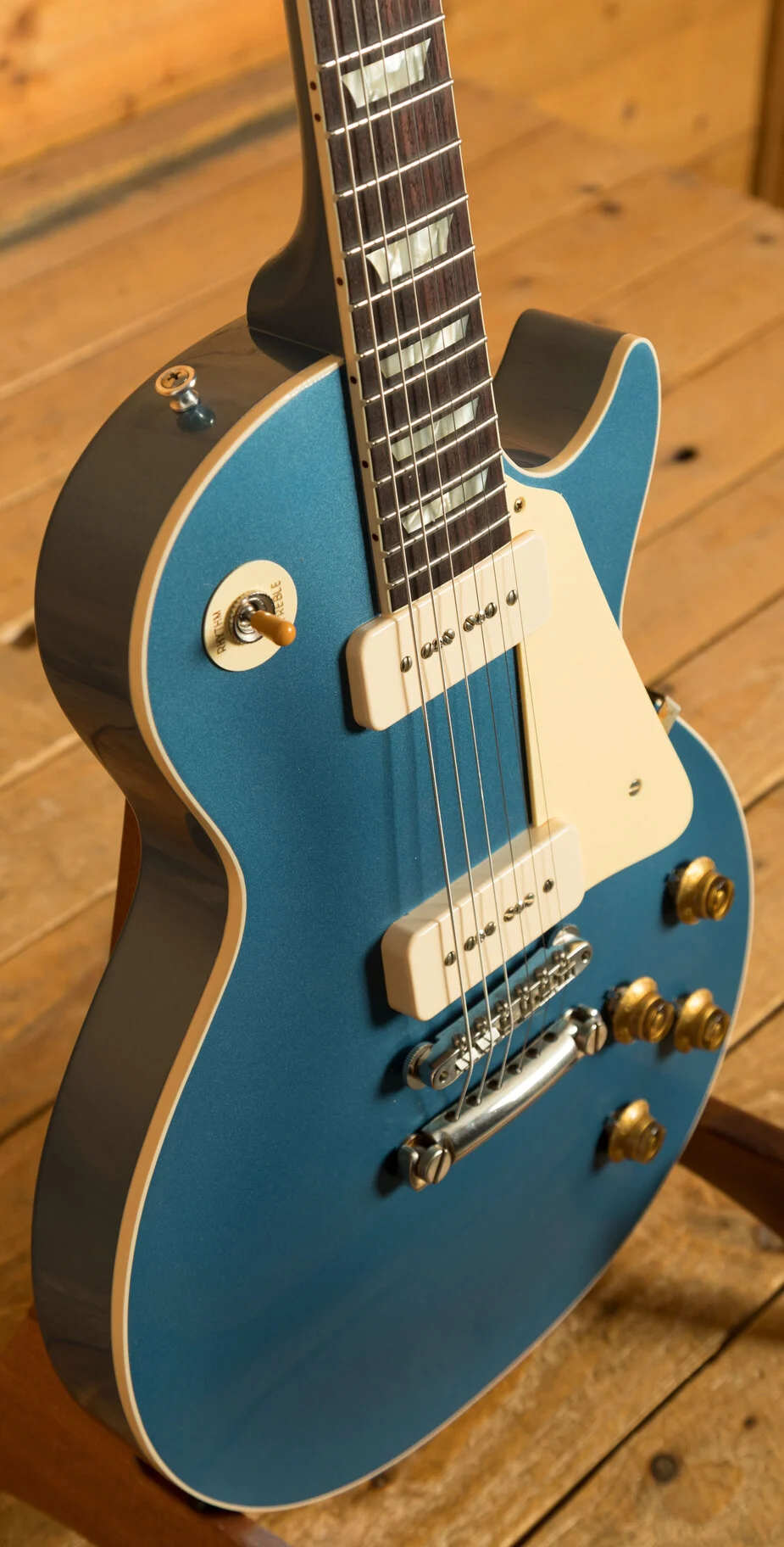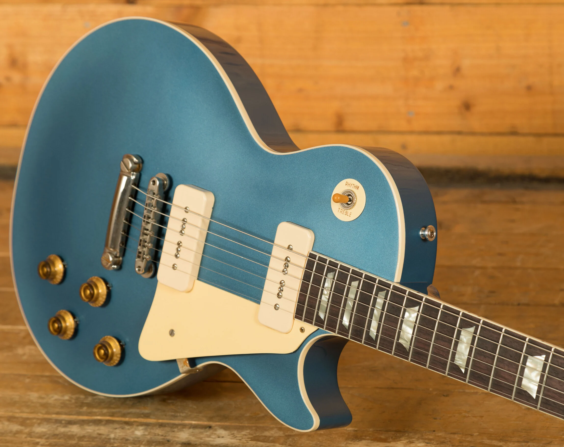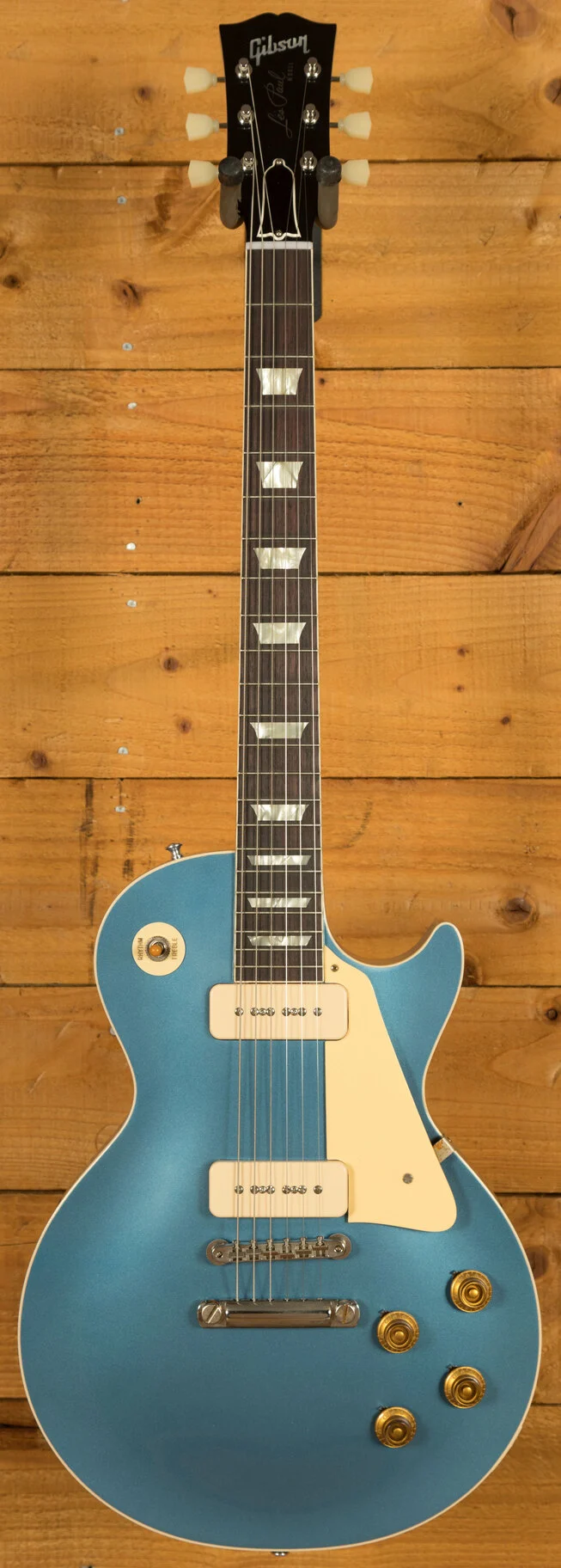 - Pickups & Hardware: Two Custom Soapbar P-90 pickups for classic pre-PAF tone, complemented by an ABR-1 Tune-O-Matic bridge, lightweight stopbar tailpiece, and Kluson tuners, all in a VOS-aged nickel finish.