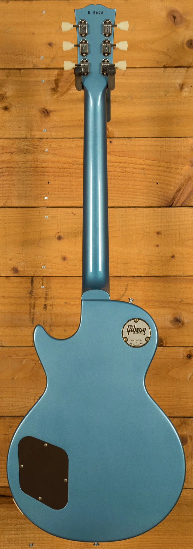 Discover the exceptional craftsmanship of this Gibson Custom 1956 Les Paul Standard, a Made to Measure creation from the Gibson Custom Shop in Nashville, Tennessee, designed to replicate the iconic 1956 Les Paul with a unique twist. Typically seen in the classic Double Gold finish, this particular guitar was custom-ordered with a rare, all-over Pelham Blue finish—a color not commonly offered for this model. The VOS treatment gives it a subtle, vintage patina, enhancing its aesthetic with a lightly aged look that complements the Pelham Blue hue, making it a visually striking piece with a bespoke appeal.