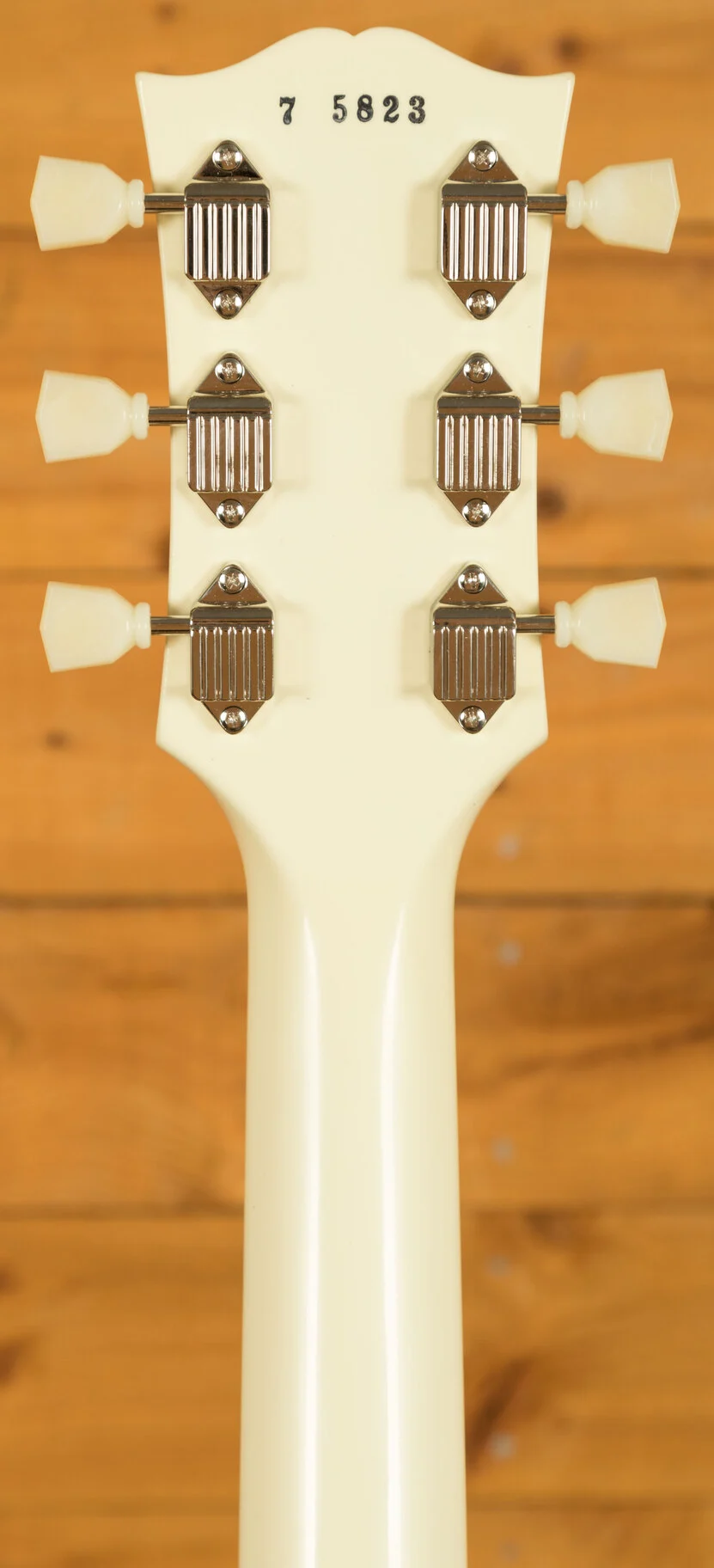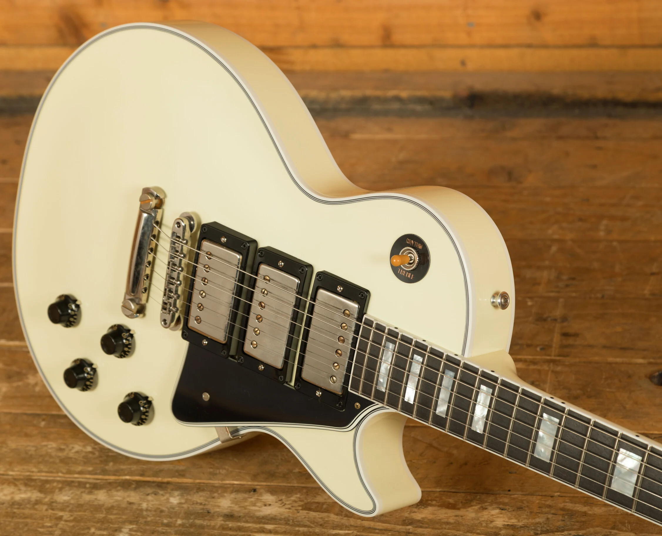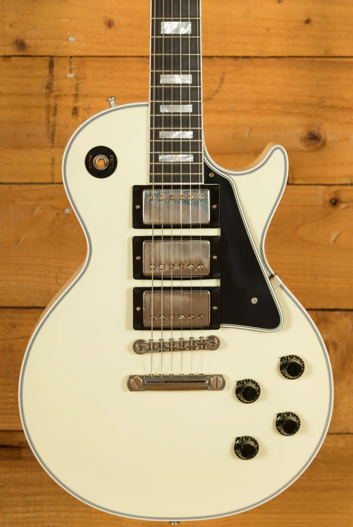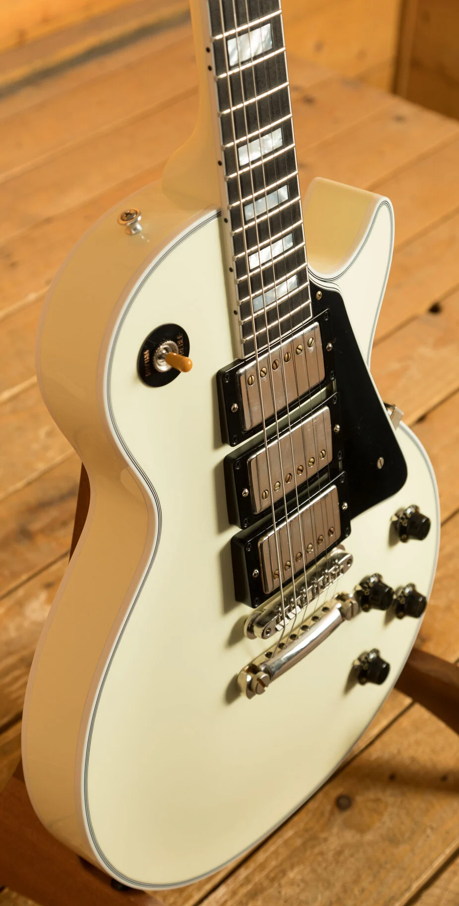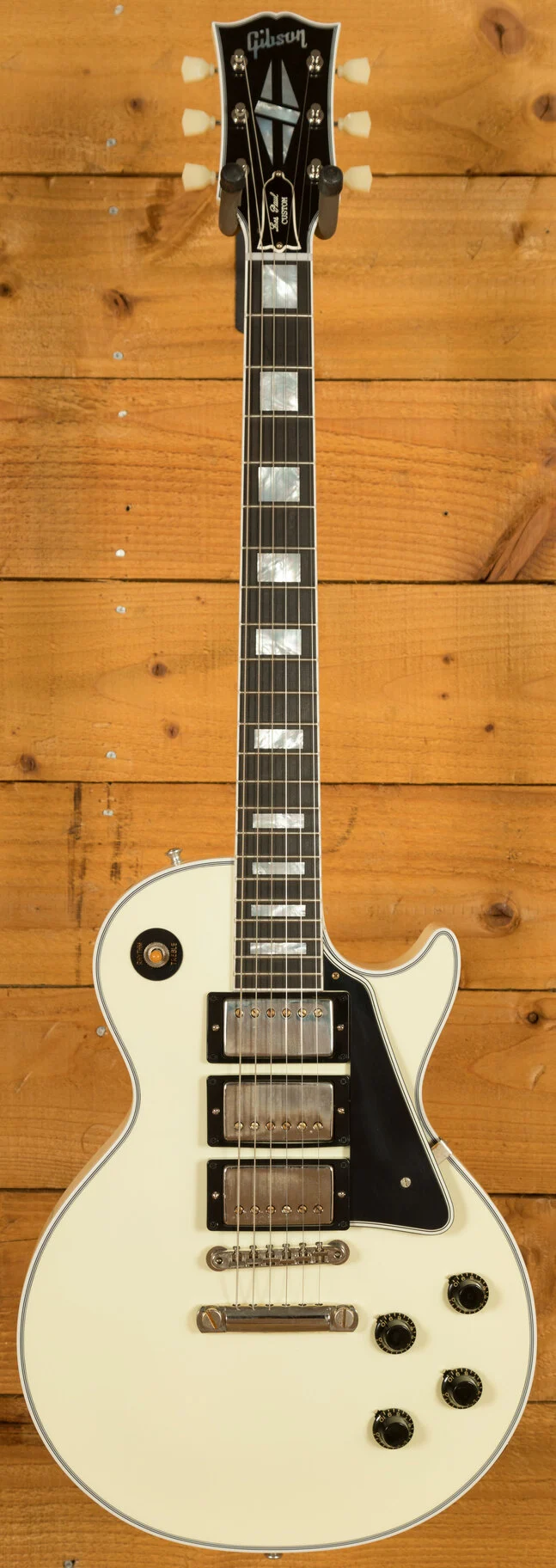 From our latest batch of custom spec Gibsons, we have this classy 1957 Les Paul Custom 3-Pickup. Typically, the 3-pickup variation only comes in Ebony with gold hardware but we've flipped the script on this one with a Classic White finish and nickel hardware combo. It's sure to be a stand-out look.