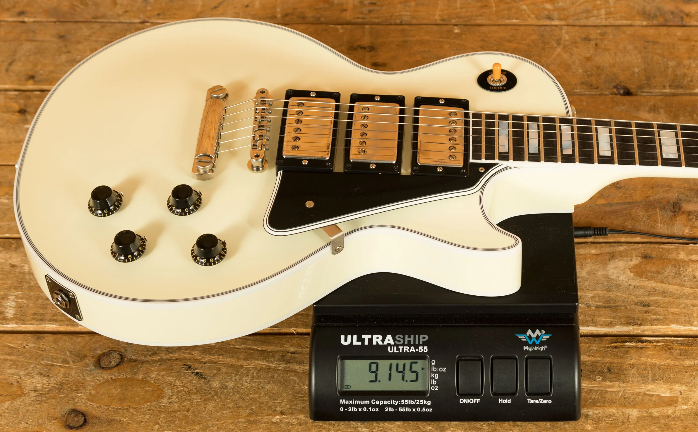 Besides the aesthetic, this guitar comes with everything you would expect from a '57 Les Paul Custom. The 1-piece Mahogany body and Mahogany neck set the foundation for a sleek Ebony fingerboard that feels incredibly smooth under your fingers and the 22 Jescar Medium-Jumbo frets help you make full use of this when performing wide vibrato. The gorgeous Mother-of-Pearl block inlays are a perfect match for this guitar's looks and further show off that the Les Paul Custom is a premium model in Gibson's line-up.