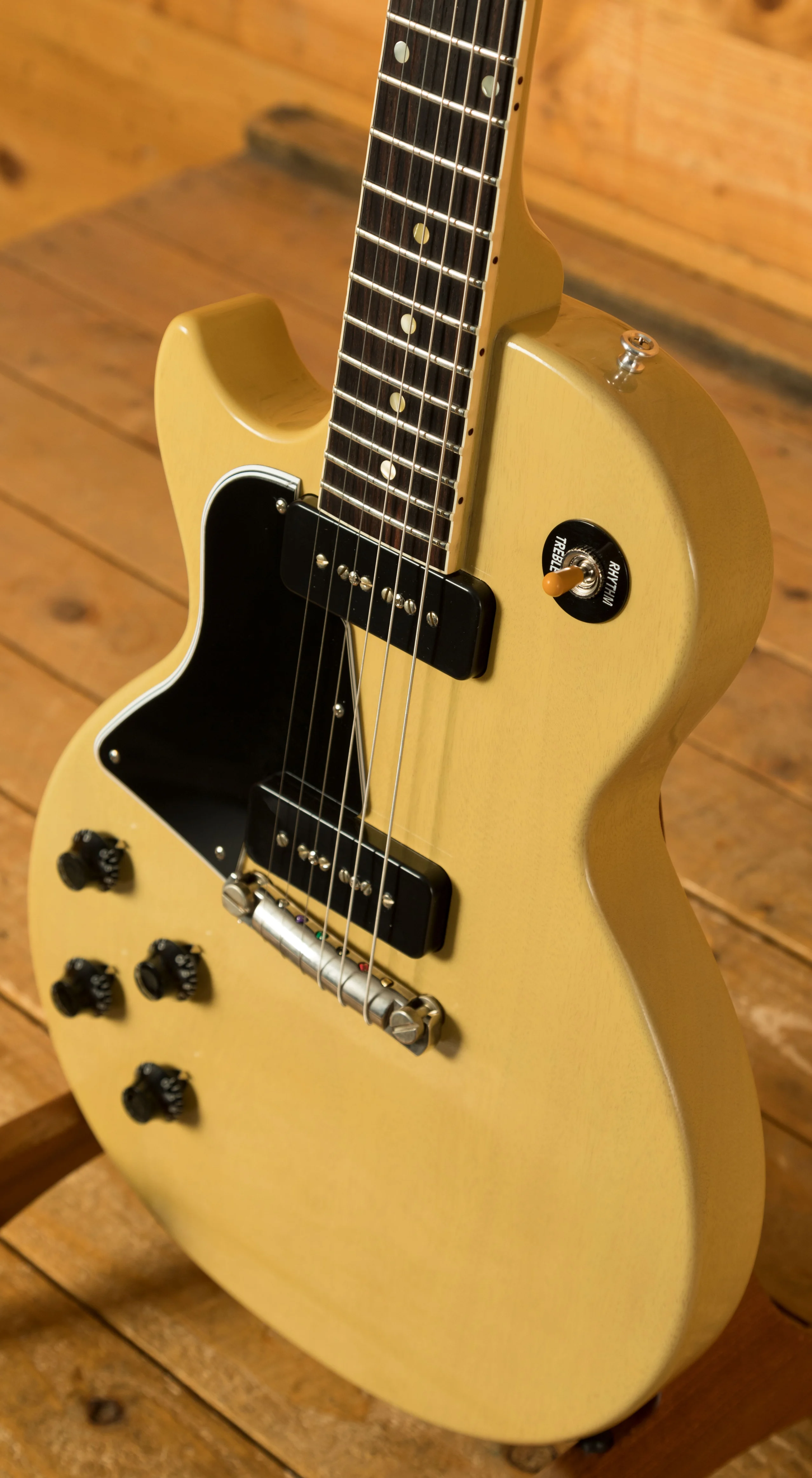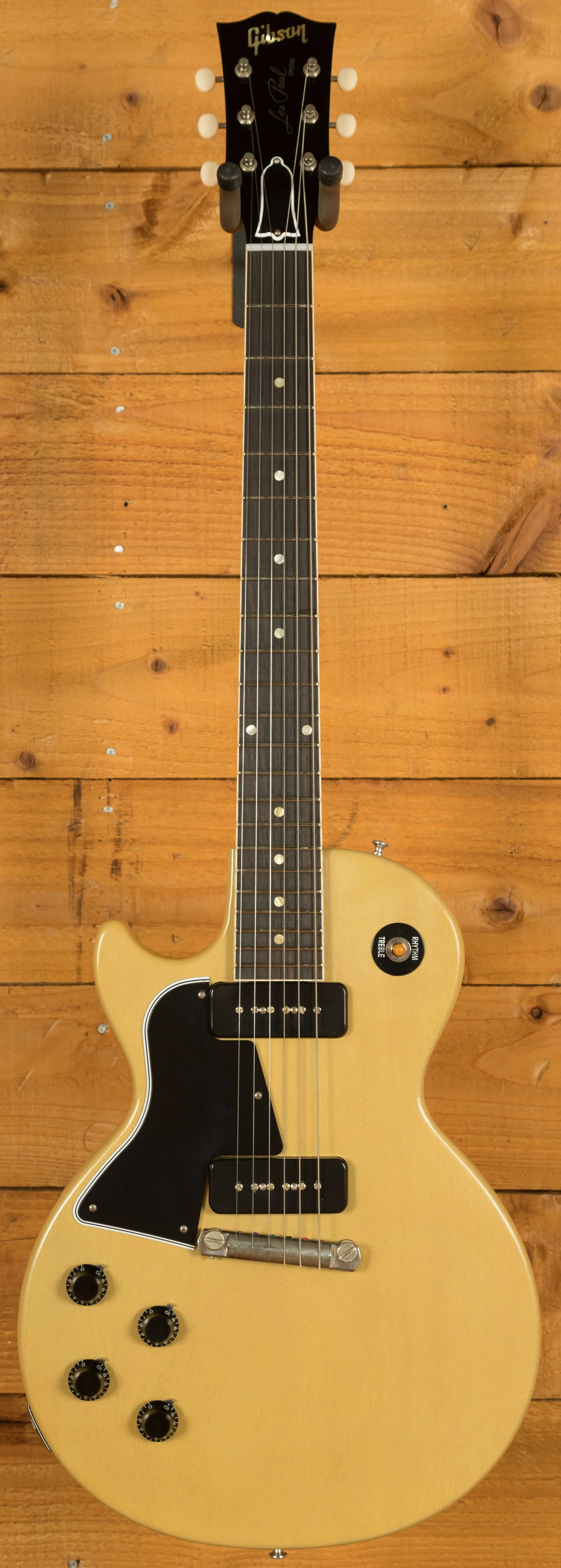 With a solid Mahogany body, finished in the iconic TV Yellow, this is super resonant and really nicely balanced. The C-Shape Mahogany neck offers a fast and responsive platform for bold chords and slick lead lines. The Rosewood fingerboard boasts 22 frets, a 12" radius, 24.75" Scale length and classic dot inlays