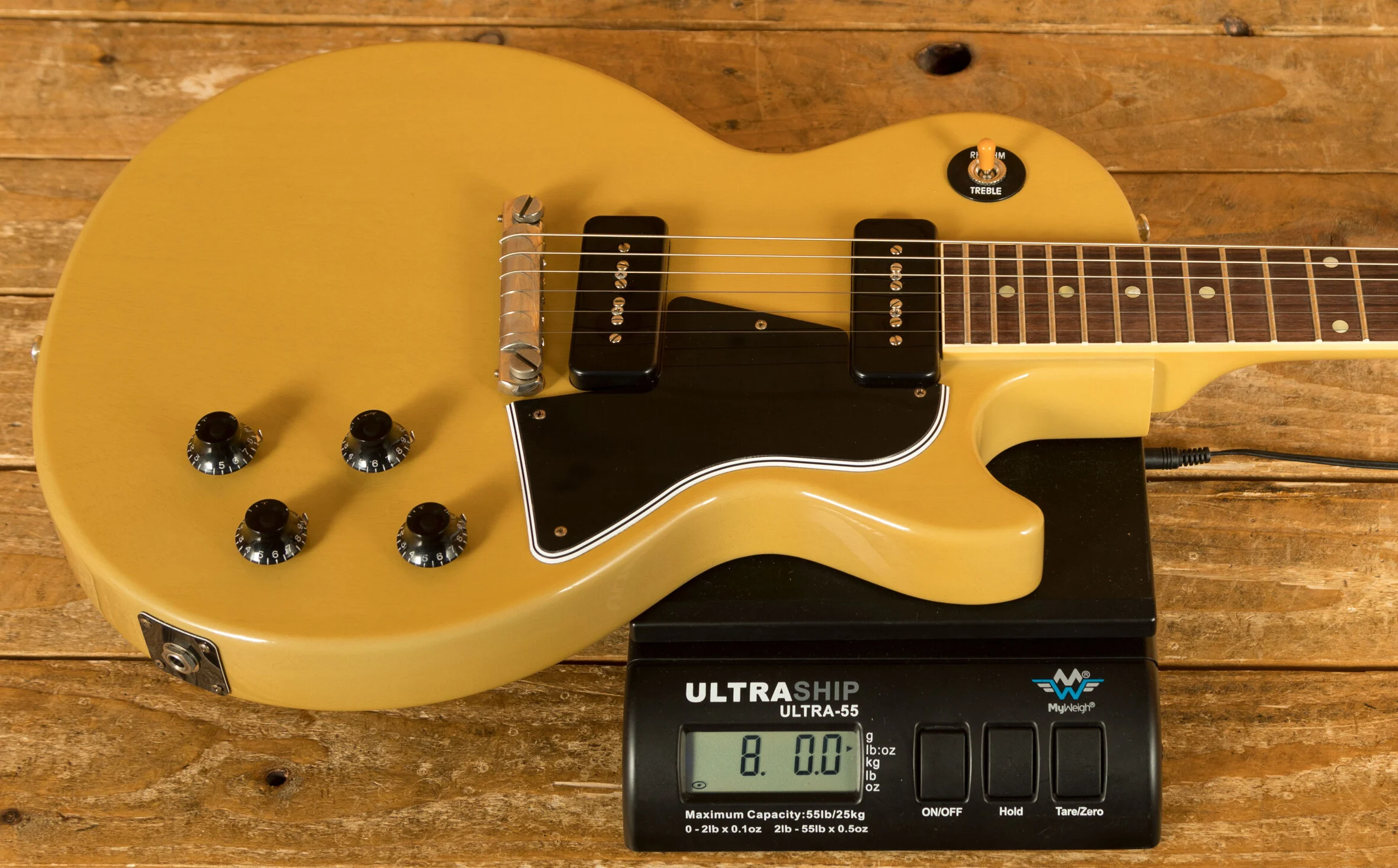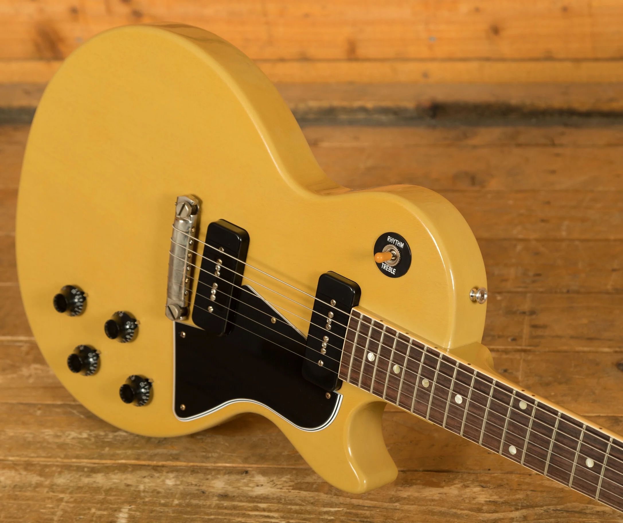 With a solid Mahogany body, finished in the iconic TV Yellow, this is super resonant and really nicely balanced. The C-Shape Mahogany neck offers a fast and responsive platform for bold chords and slick lead lines. The Rosewood fingerboard boasts 22 frets, a 12" radius, 24.75" Scale length and classic dot inlays