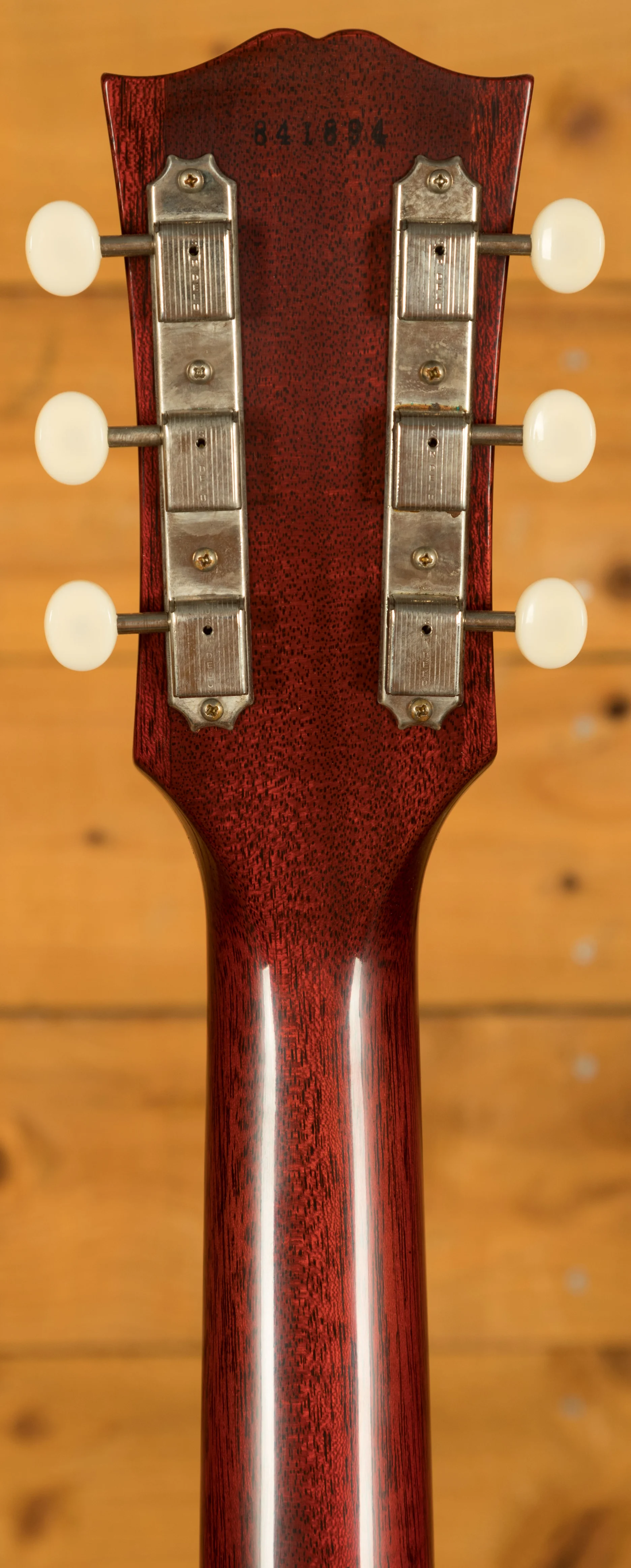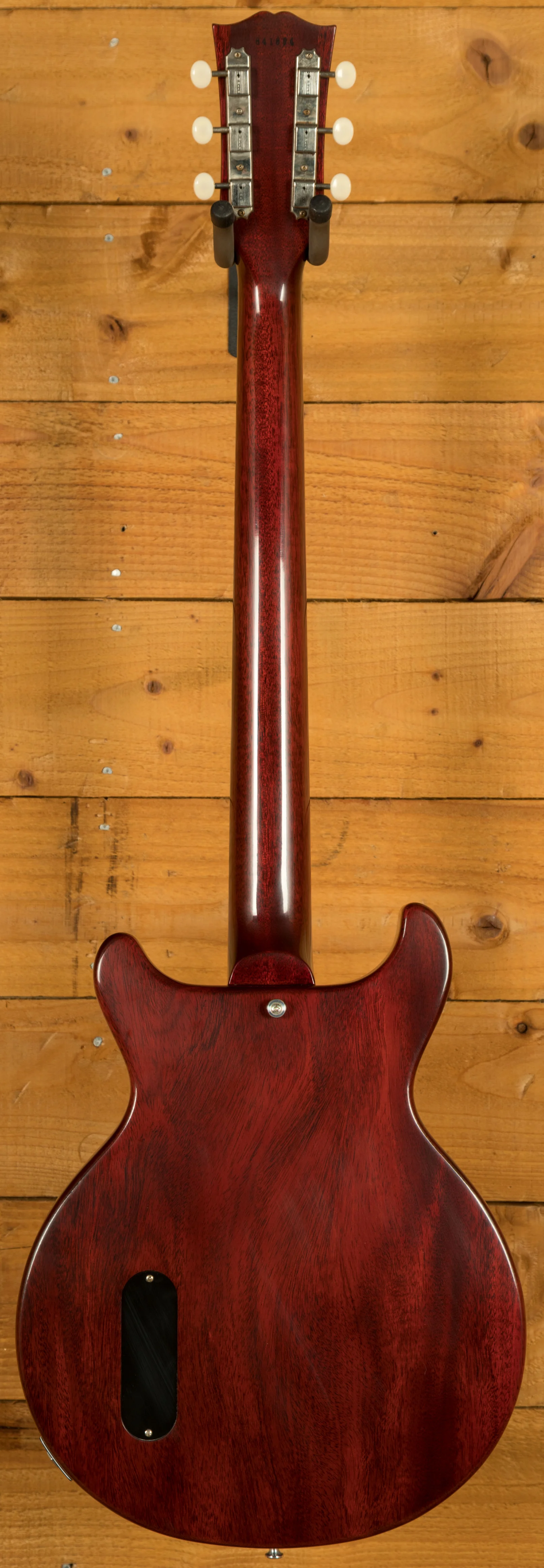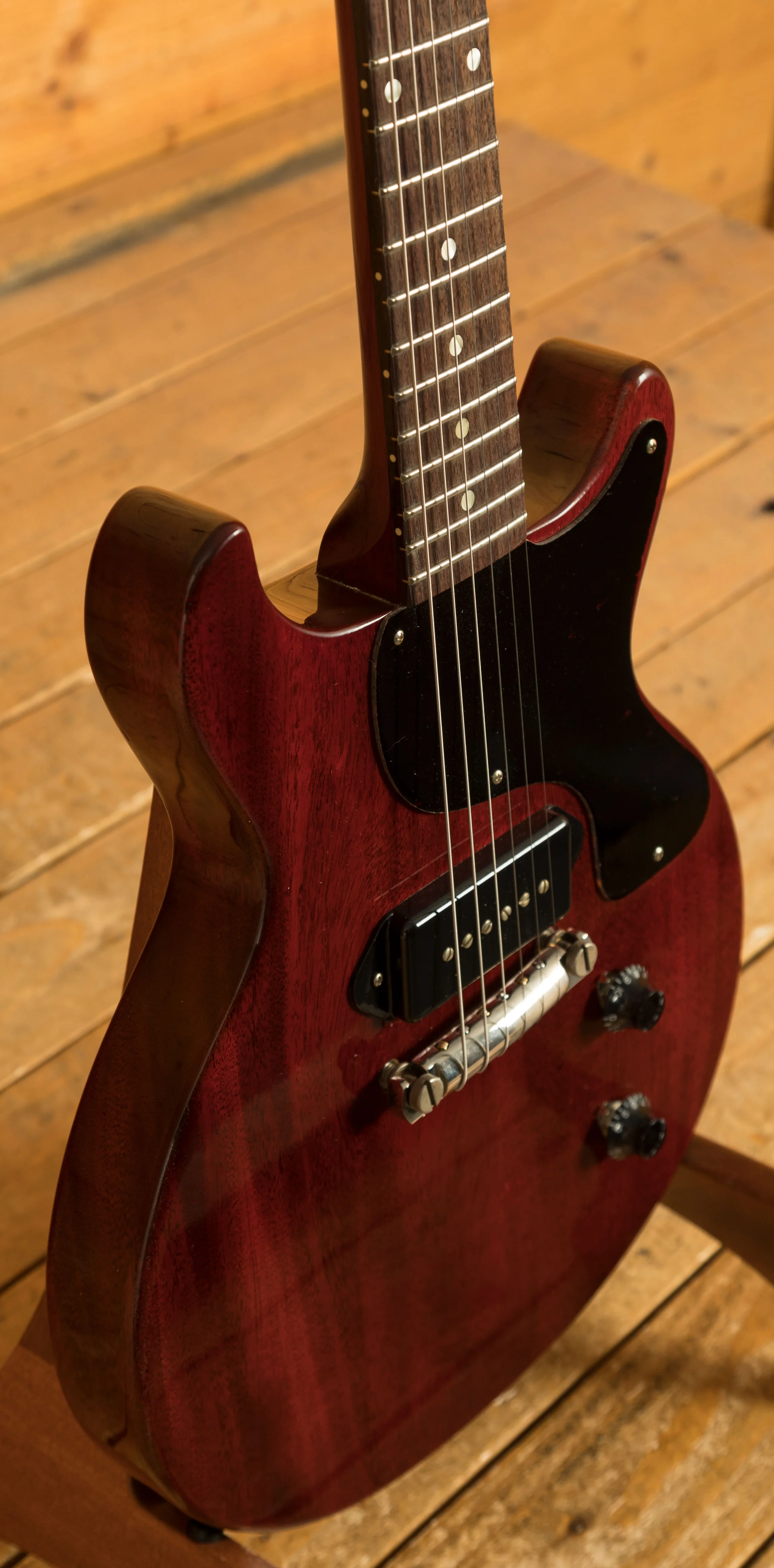 The Mahogany neck features an Indian Rosewood fingerboard which boasts 22 medium jumbo frets, a 24.75" scale length, a 50s Rounded Medium C-Shape profile and of course pearloid dot inlays. This 1958 Les Paul Junior Double Cut is super easy and smooth to play.