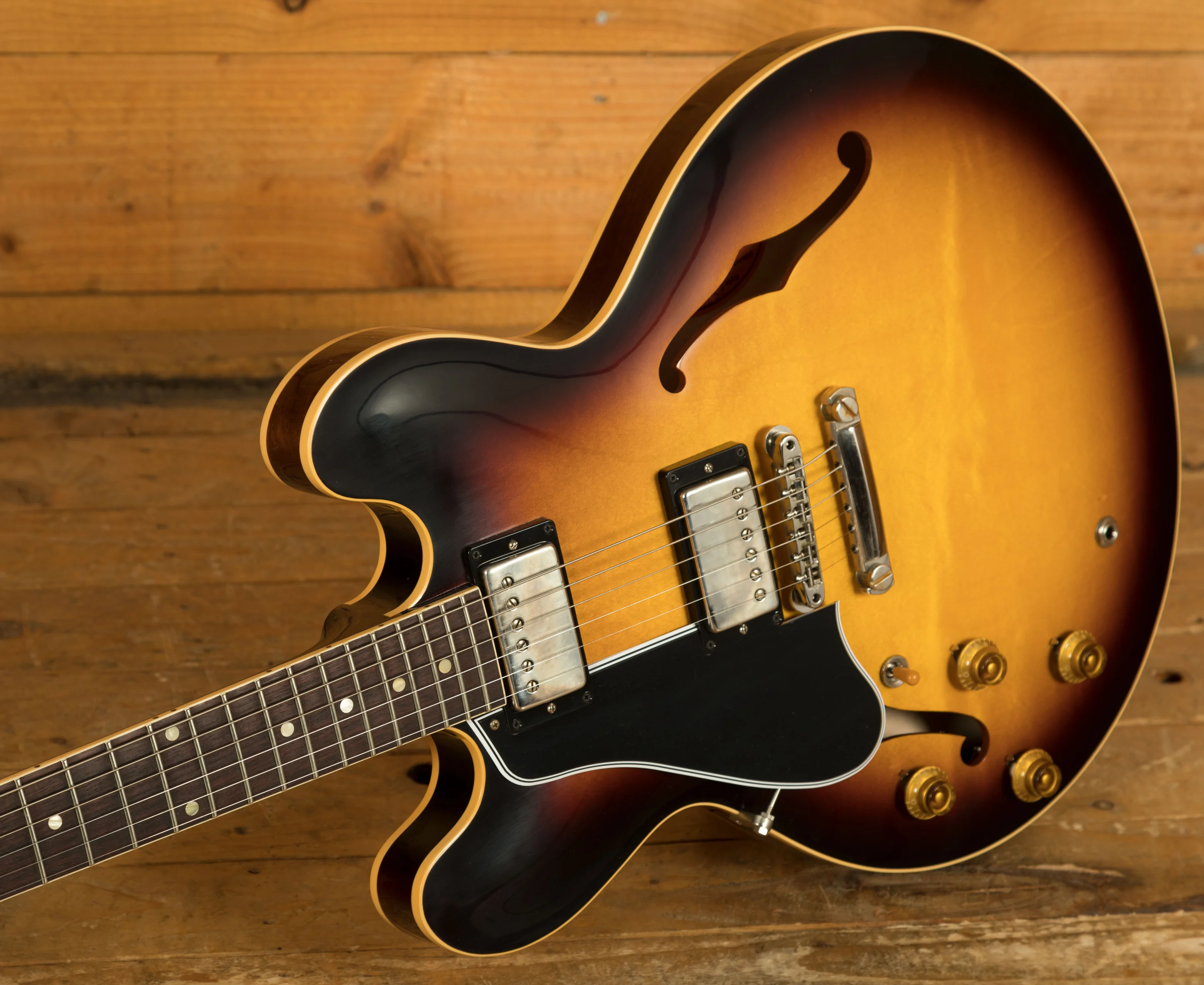 Featuring a 3-ply Maple/Poplar/Maple body, it's finished in a slick, Vintage Burst Nitro Lacquer, the attention to detail and craftsmanship shown on this guitar is astonishing. This ES-335 is super resonant and beautifully balanced; it just oozes that classic Gibson appeal.