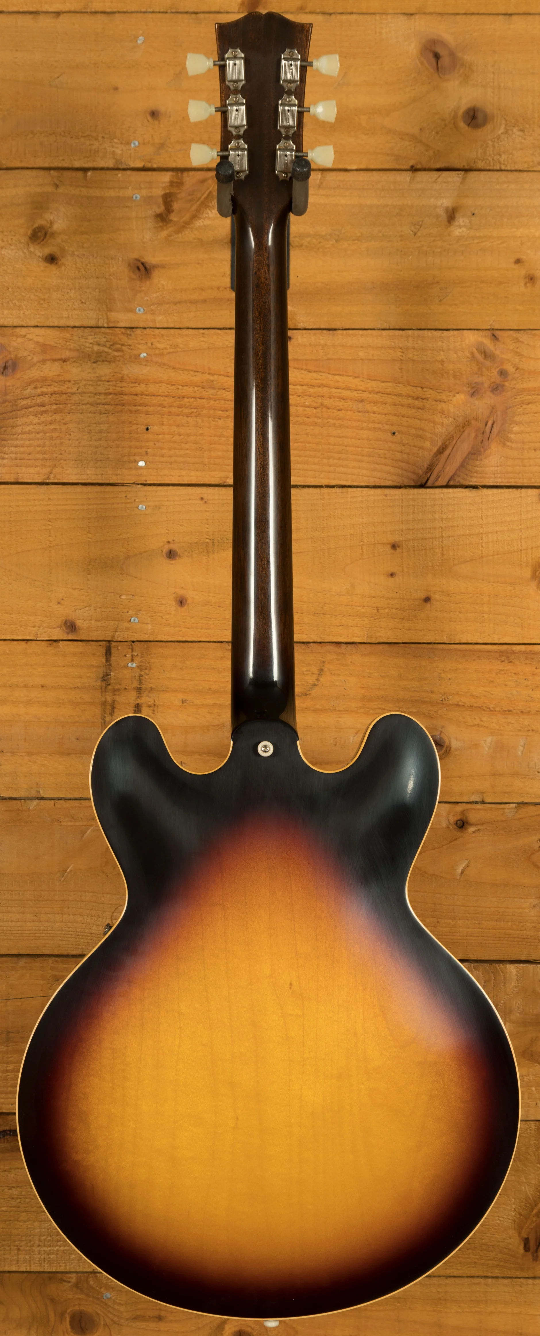 The neck is something special, crafted from Mahogany; it features a gorgeous Indian Rosewood fingerboard, embellished with Pearloid inlays. With 22 frets, 12" radius, 1.687" nut width and a 24.75" scale length it feels smooth and comfortable, equally at home playing slick lead work or heavy chord strumming thanks to the authentic 50s Rounded Medium "C" profile. With hide glue construction, this 335 offers true vintage tonality.