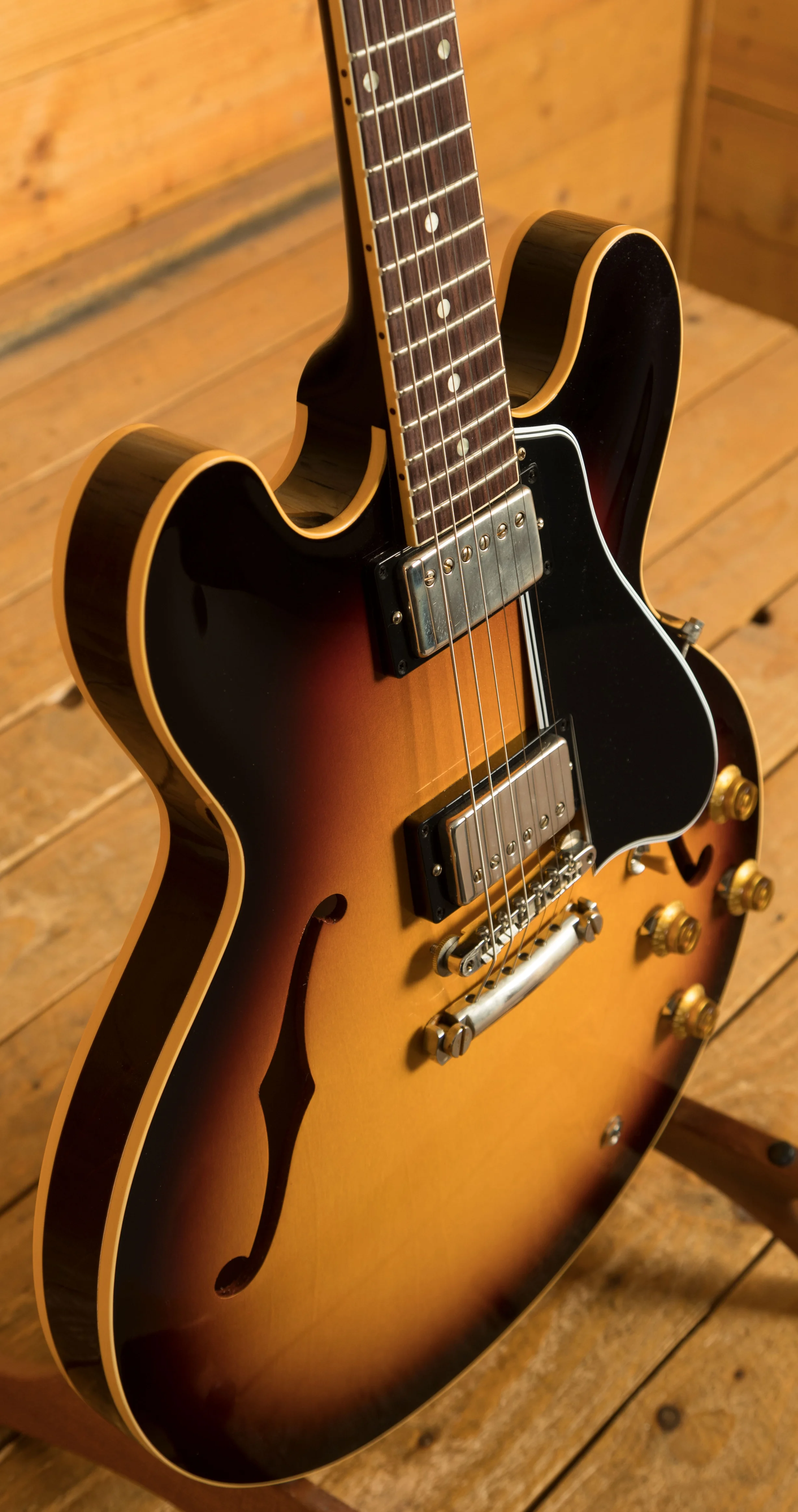 Featuring a 3-ply Maple/Poplar/Maple body, it's finished in a slick, Vintage Burst Nitro Lacquer, the attention to detail and craftsmanship shown on this guitar is astonishing. This ES-335 is super resonant and beautifully balanced; it just oozes that classic Gibson appeal.