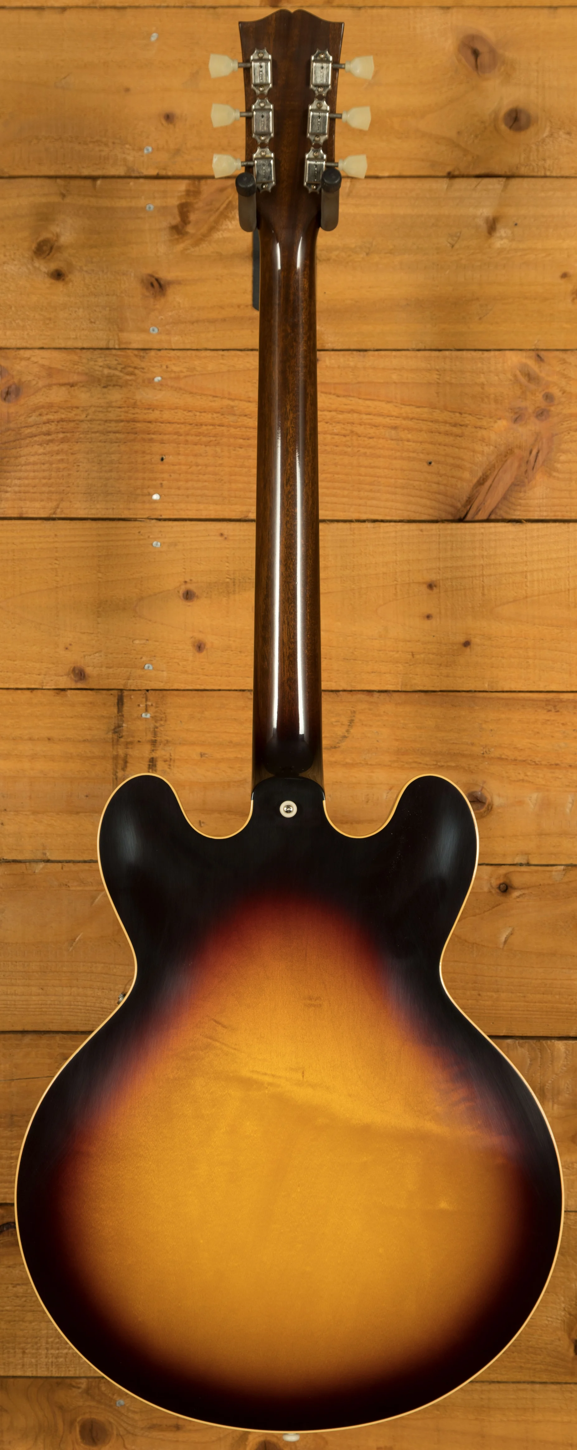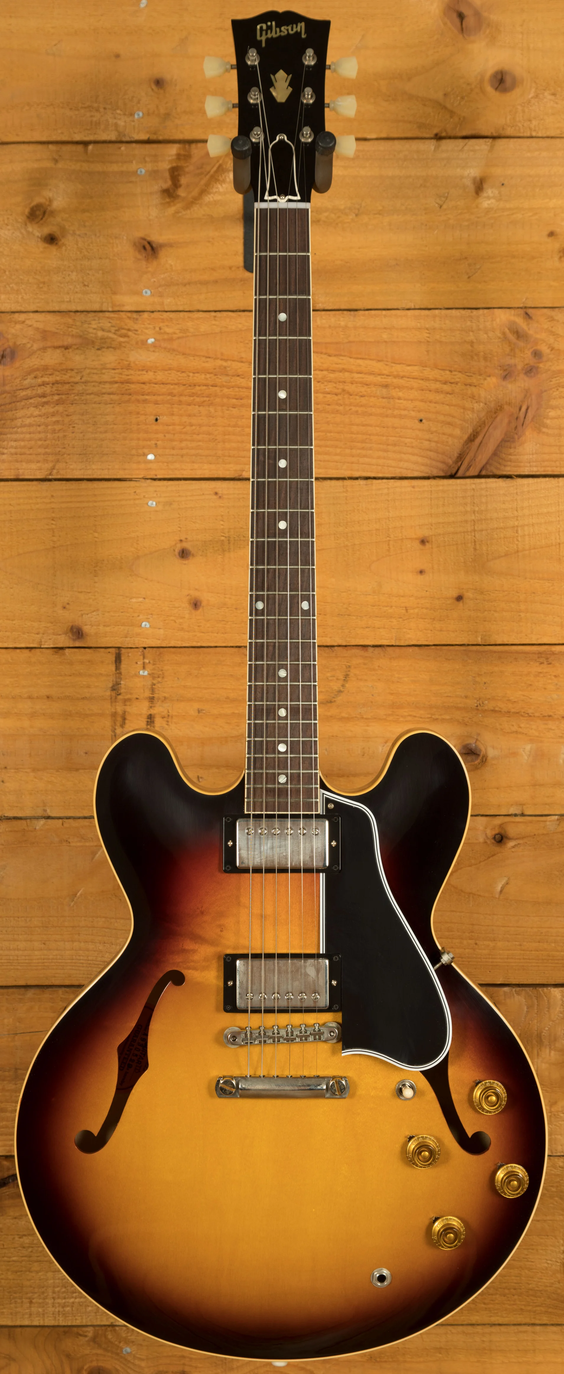 The neck is something special, crafted from Mahogany; it features a gorgeous Indian Rosewood fingerboard, embellished with Pearloid inlays. With 22 frets, 12" radius, 1.687" nut width and a 24.75" scale length it feels smooth and comfortable, equally at home playing slick lead work or heavy chord strumming thanks to the authentic 50s Rounded Medium "C" profile. With hide glue construction, this 335 offers true vintage tonality.