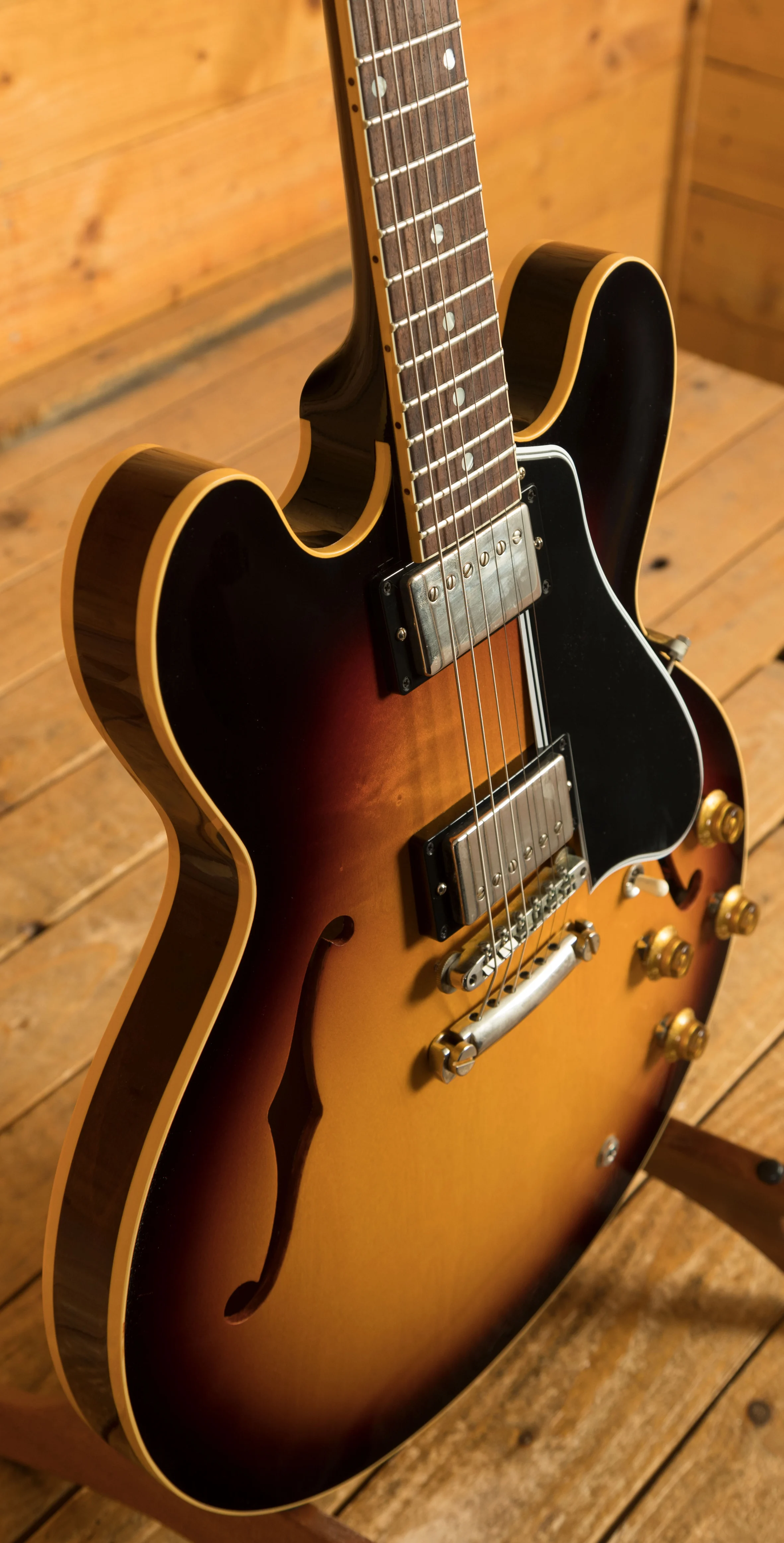 Featuring a 3-ply Maple/Poplar/Maple body, it's finished in a slick, Vintage Burst Nitro Lacquer, the attention to detail and craftsmanship shown on this guitar is astonishing. This ES-335 is super resonant and beautifully balanced; it just oozes that classic Gibson appeal.