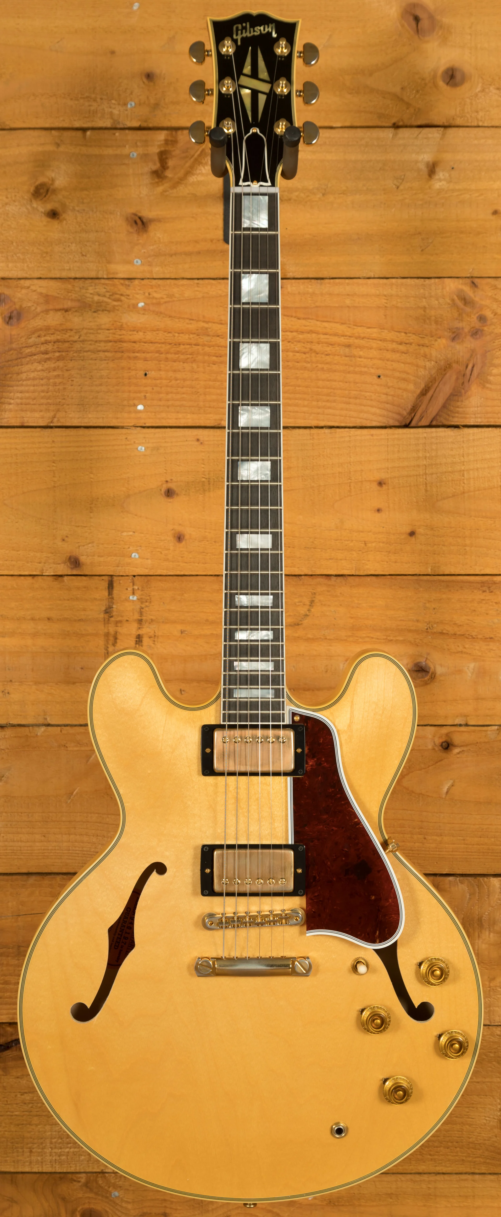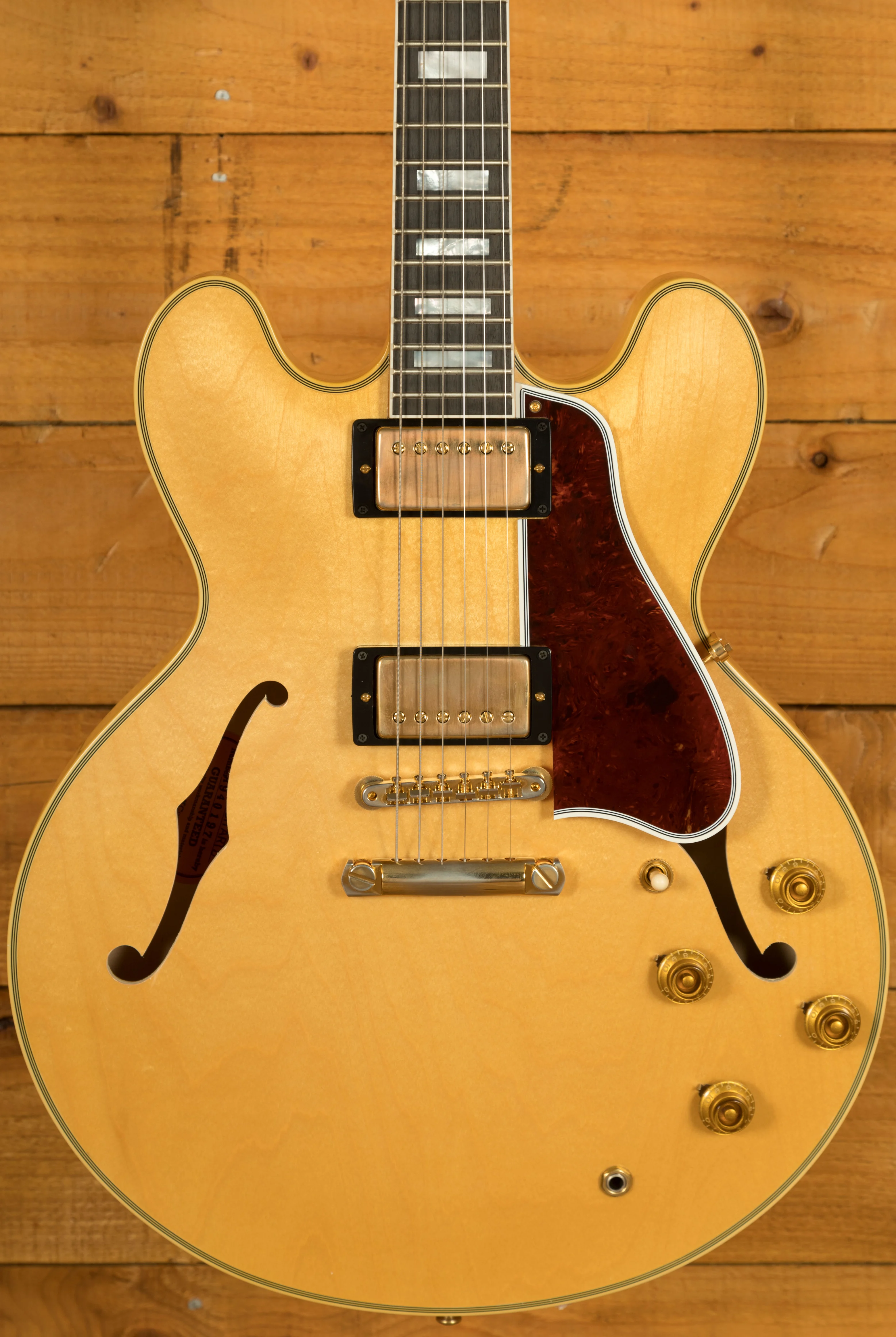 The neck is something special, crafted from Mahogany; it features a gorgeous Ebony fingerboard, embellished with block inlays. With 22 frets and a 24.75" scale length it feels smooth and comfortable, equally at home playing slick lead work or heavy chord strumming. With hide glue construction, this 355 offers true vintage tonality.