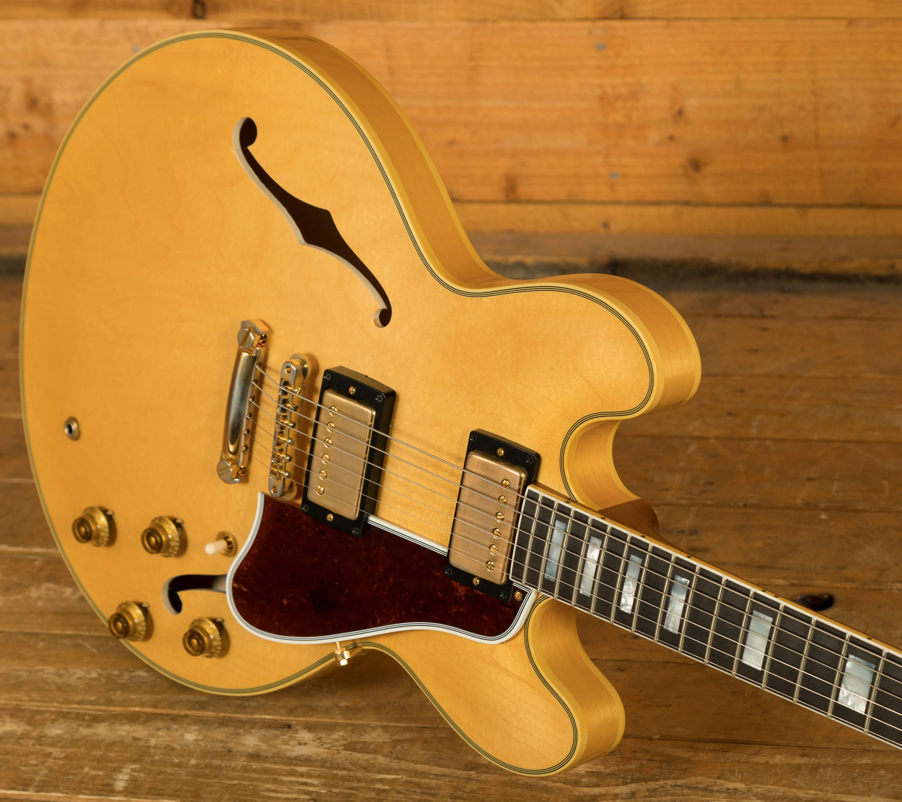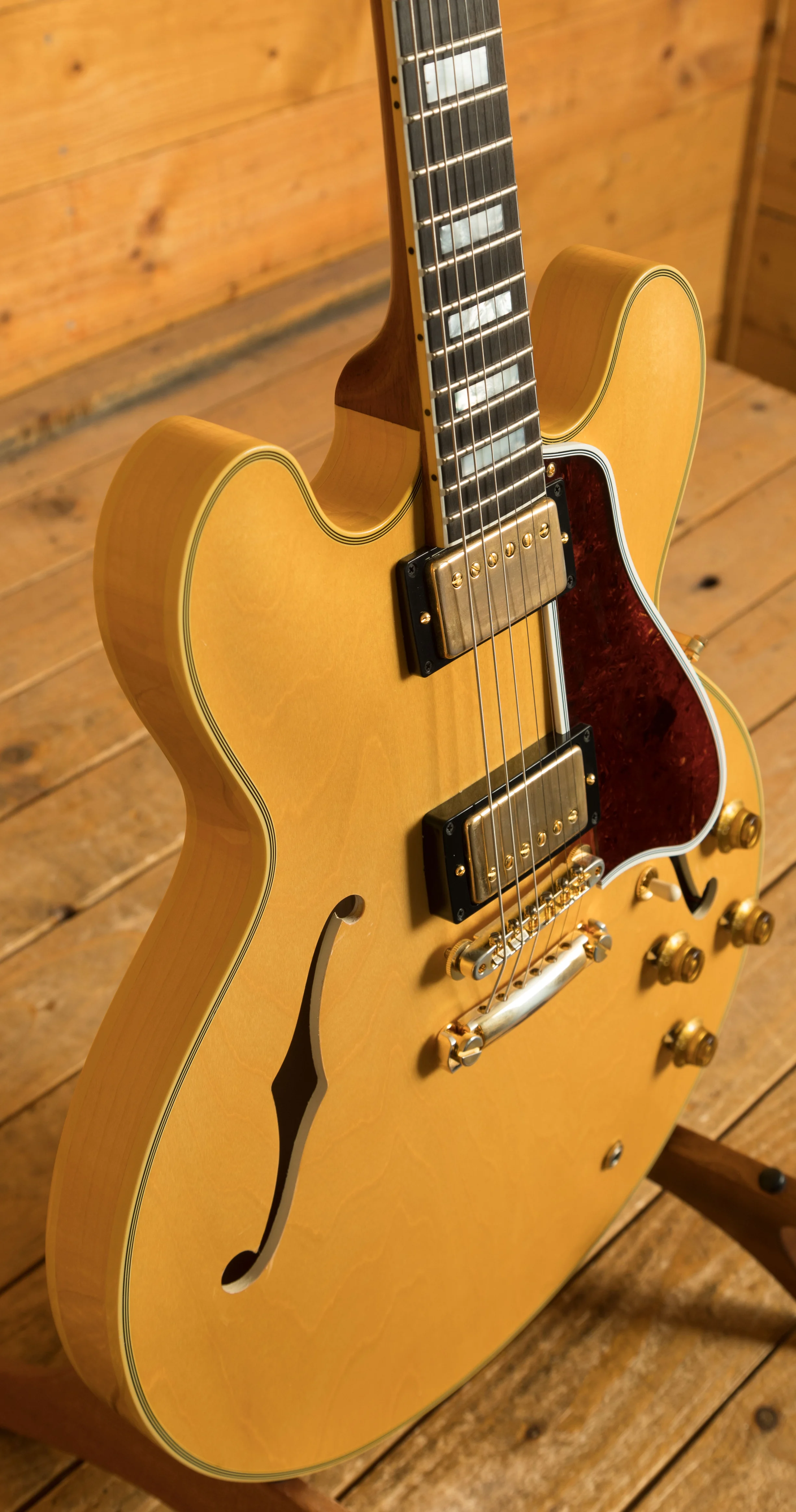 Featuring a 3-ply Maple/Poplar/Maple body, it's finished in a slick, old school Vintage Natural VOS. Delivering a rich and authentic tone, this ES-355 is super resonant and beautifully balanced; it just oozes that vintage Gibson appeal. The nitro VOS finish is incredible and gives a vintage feel without any real wear.