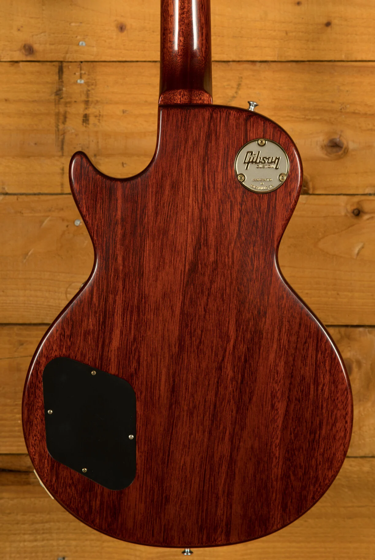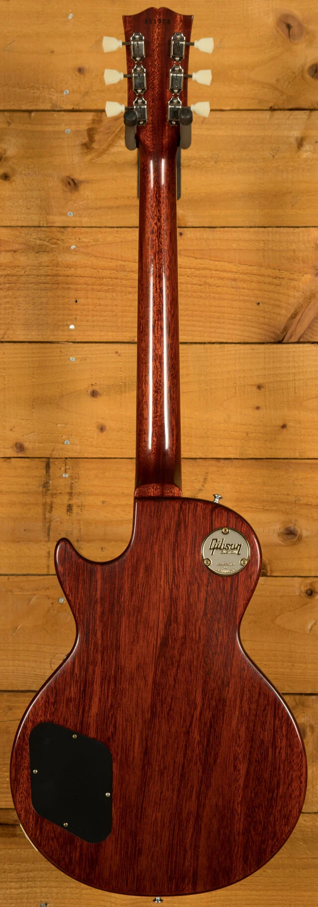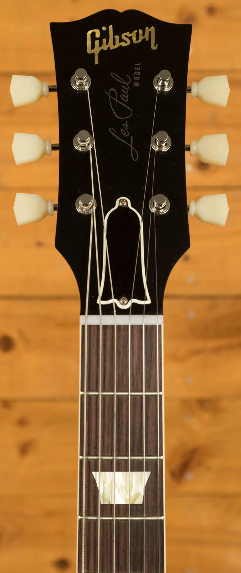The Mahogany neck boasts a Carmelita Fine Carve profile that is slightly thinner than the standard 59 profile, allowing for extra manoeuvrability when traversing the 12" radius Indian Rosewood fretboard. With classic Trapezoid inlays and cream body top and neck binding, it offers authentic Gibson Les Paul vibes.