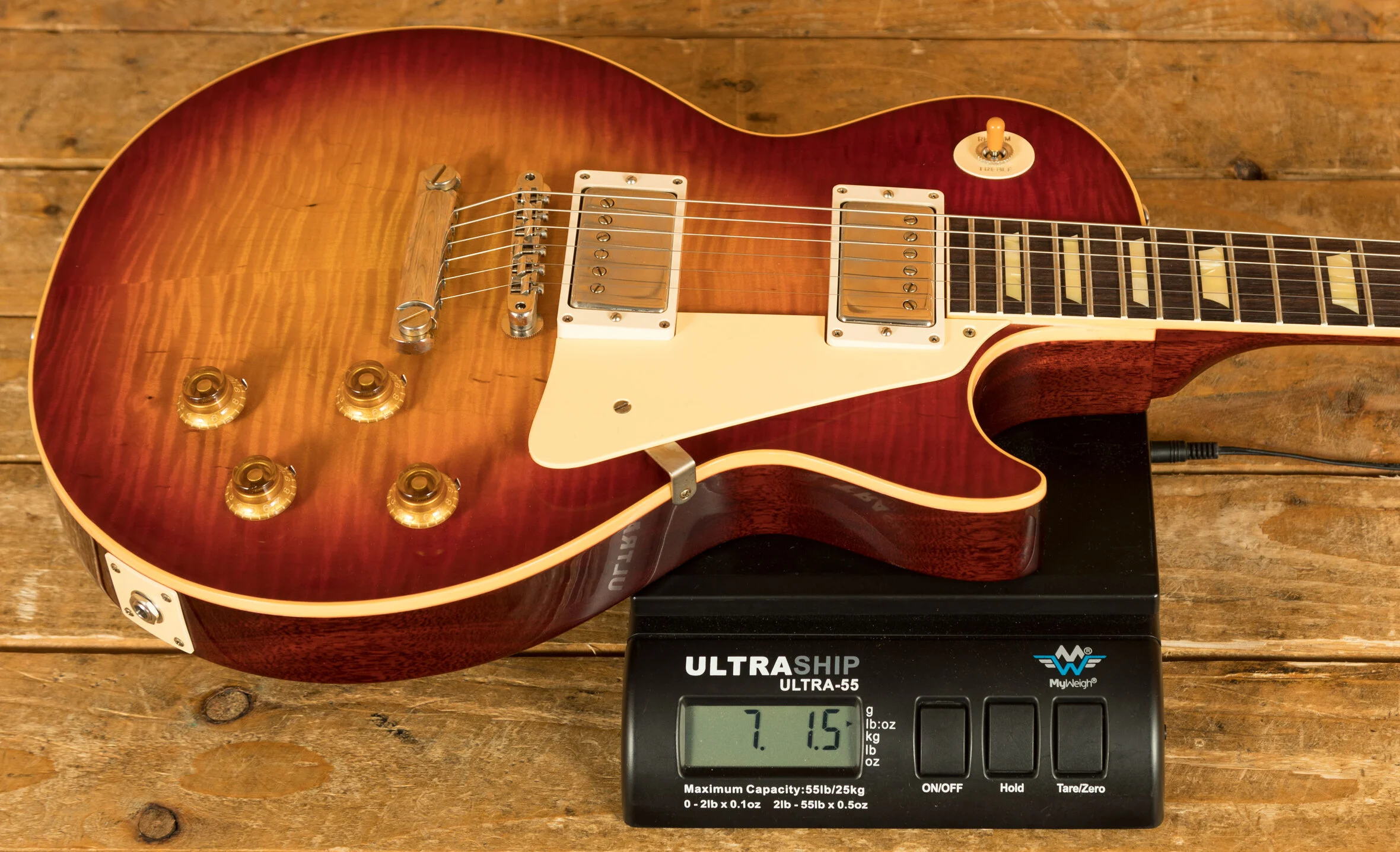 Fresh off our latest batch of custom spec Gibsons is this stunning 1959 Les Paul Standard Chambered in Factory Burst. With a handpicked AAA figured Maple top, this beauty really stands out from the crowd. Paired up with a chambered Mahogany body, not only is it considerably lighter but it also has a more open and airy tone that you might expect from an ES semi-hollow.
