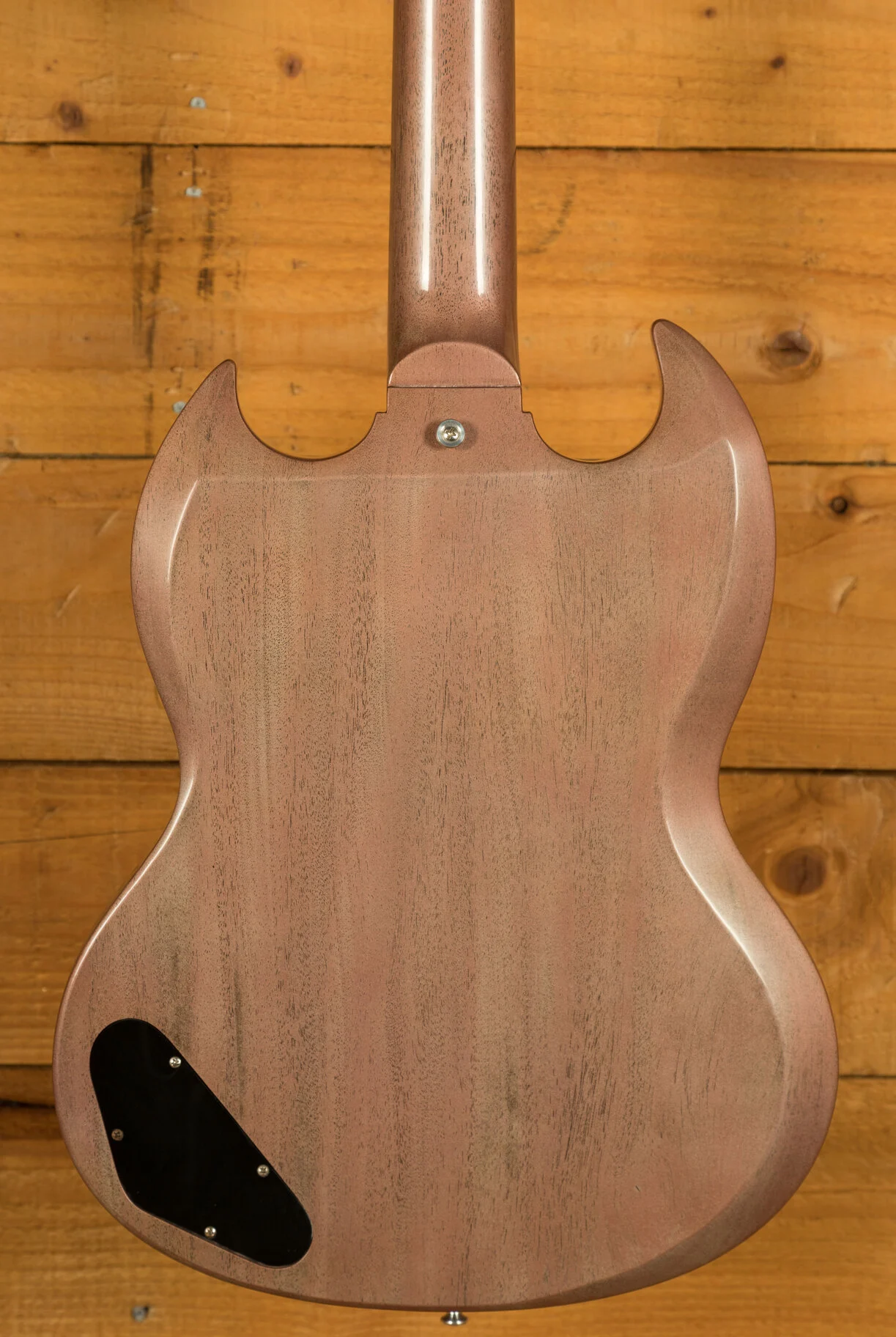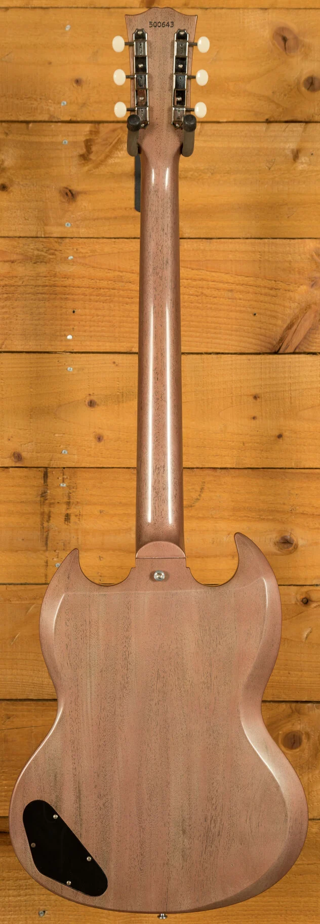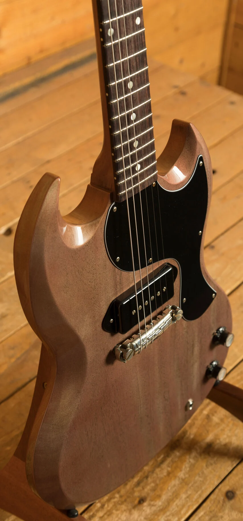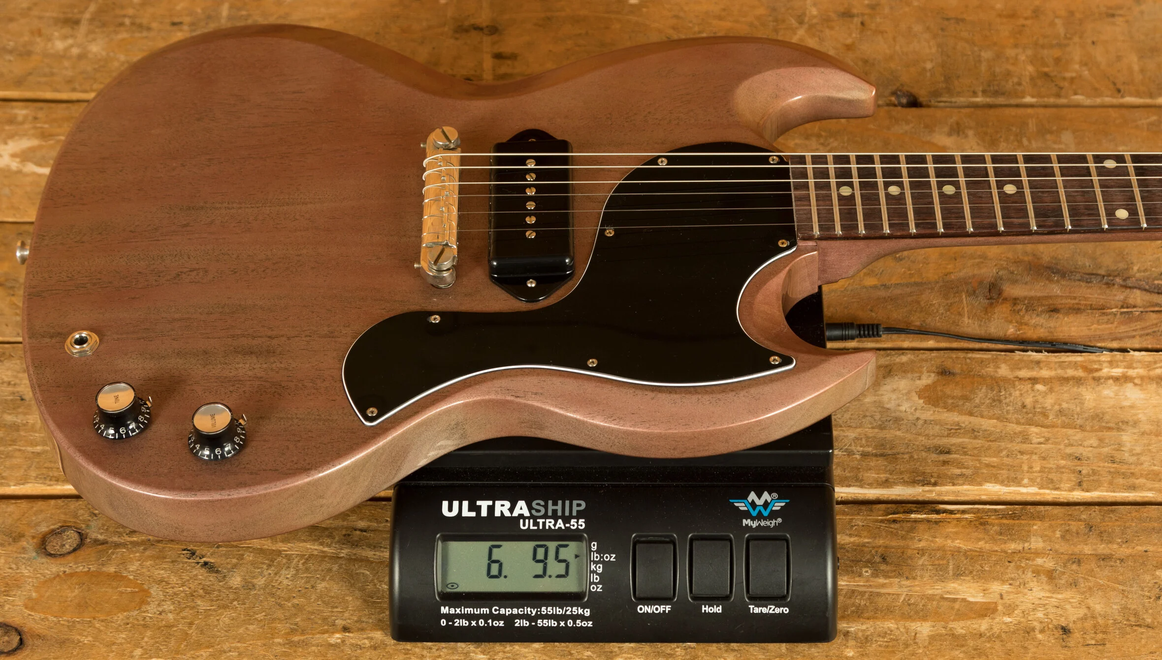 With the classic all Mahogany, super slim design, the SG Junior is the same tone machine we all know and love. The 61 SG profile Mahogany neck is topped with a lush Indian Rosewood fingerboard to complete the tonewood dream team. Unlike normal all-Mahogany guitars, the SG is super light thanks to its thinline profile and simplistic design. Featuring a 24.75" scale length, 12" fretboard radius, Reissue fretwire, and a neck measuring .800" thick at the 1st fret and .900" at the 12th, it feels exactly how you would expect a Gibson to.