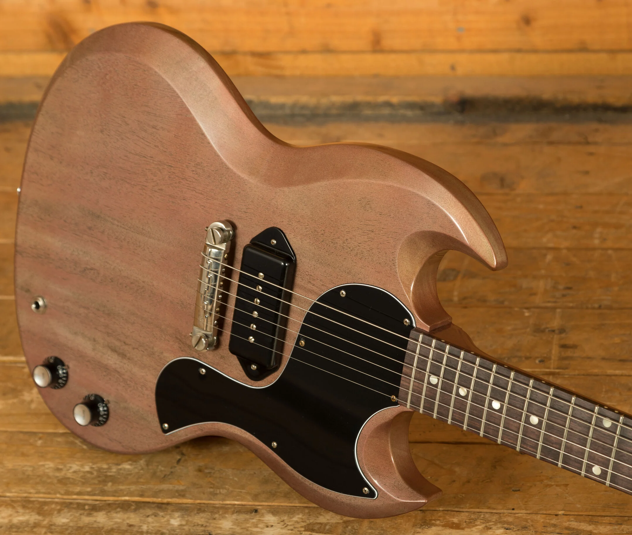 When the SG debuted back in '61 it was considered pretty radical for the time, with its thin body and no nonsense styling, it clearly focussed on raw power and playability. Quickly becoming a fan favourite with players like Pete Townshend, the SG found itself a permanent member of the Gibson roster. The Gibson SG Junior is the stripped back younger brother to the original SG's. And they don't come any better than this, the Gibson Custom 1963 SG Junior.