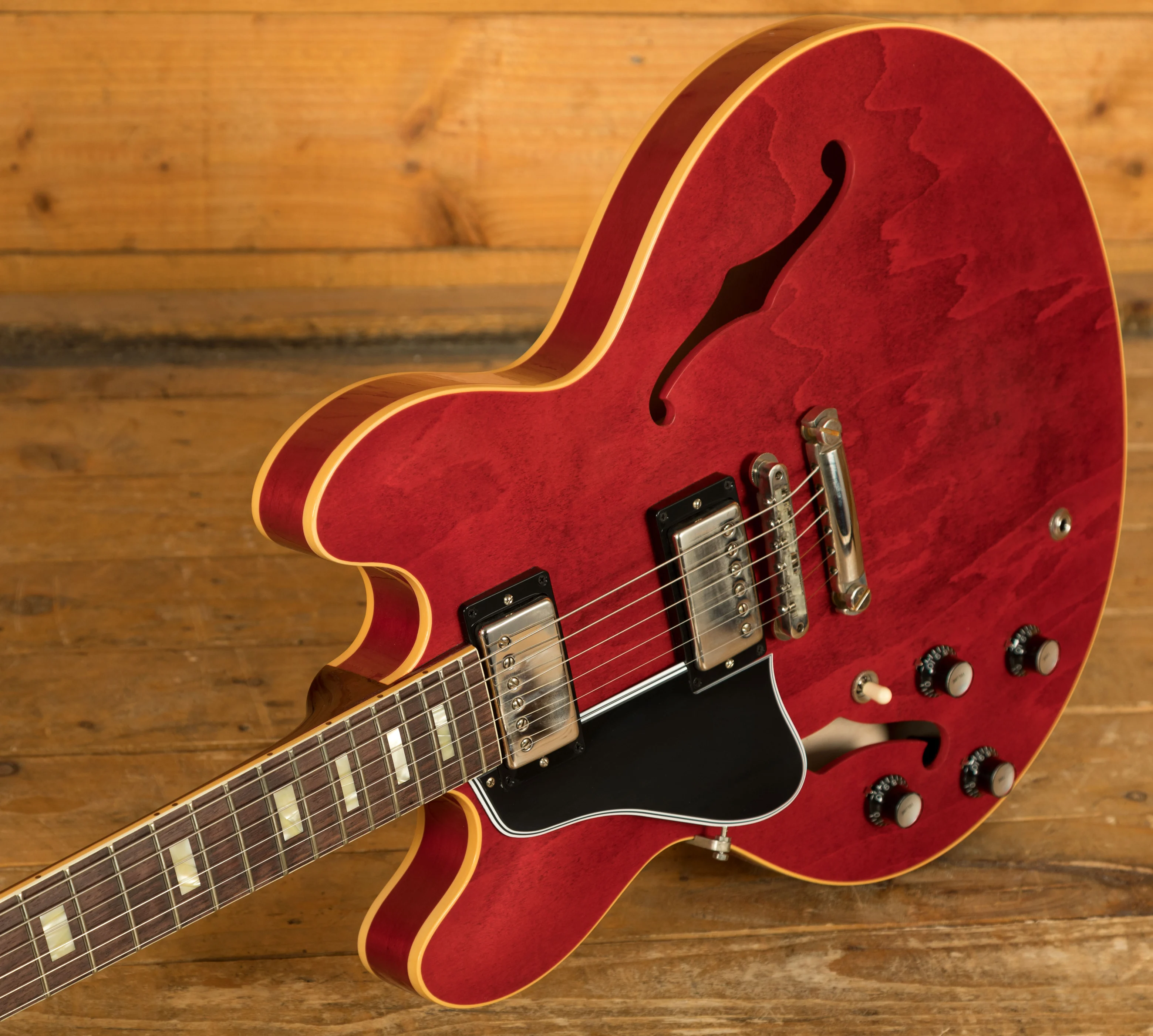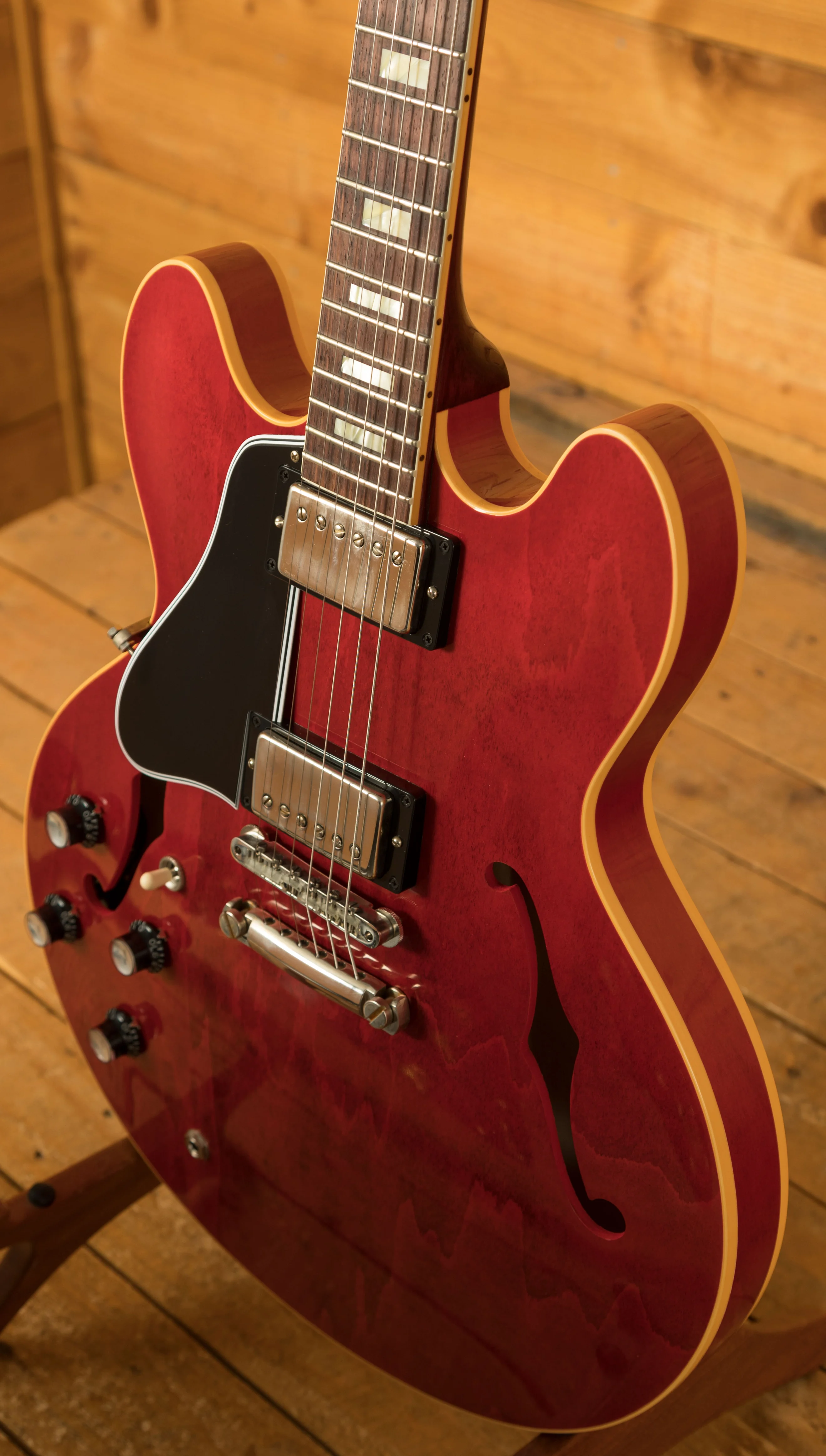 Featuring a 3-ply Maple/Poplar/Maple body, it's finished in a slick, old school 60's Cherry VOS. Delivering a rich and authentic tone, this ES-335 is super resonant and beautifully balanced; it just oozes that vintage Gibson appeal. The nitro VOS finish is incredible and gives a vintage feel without any real wear.