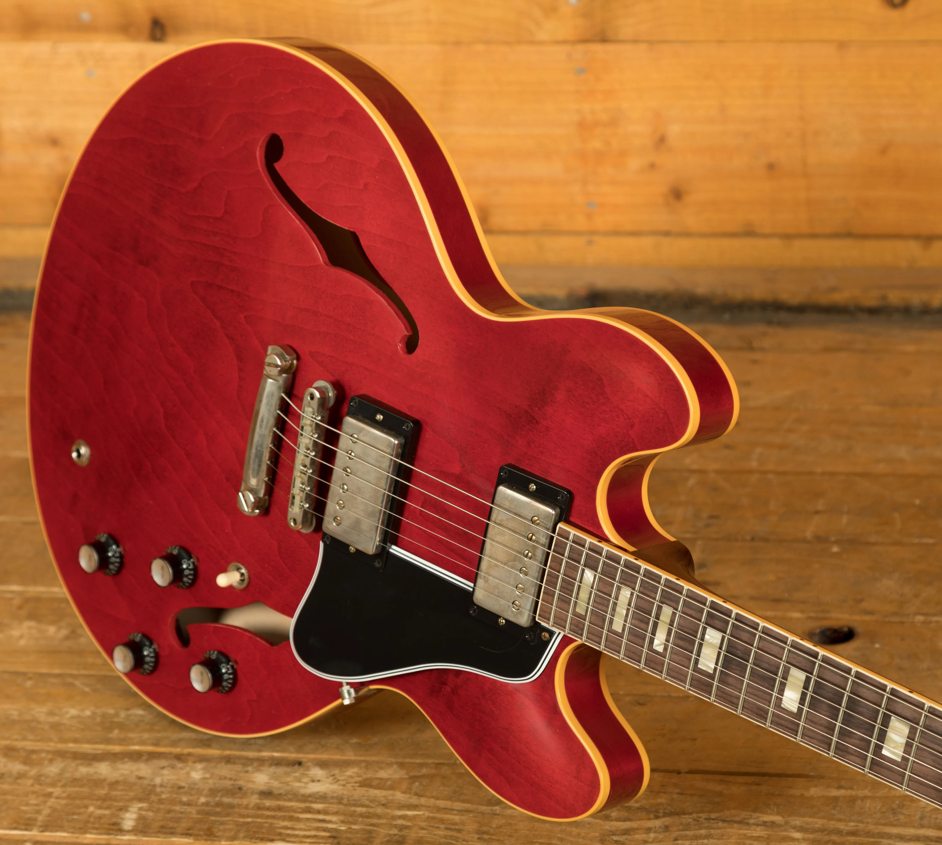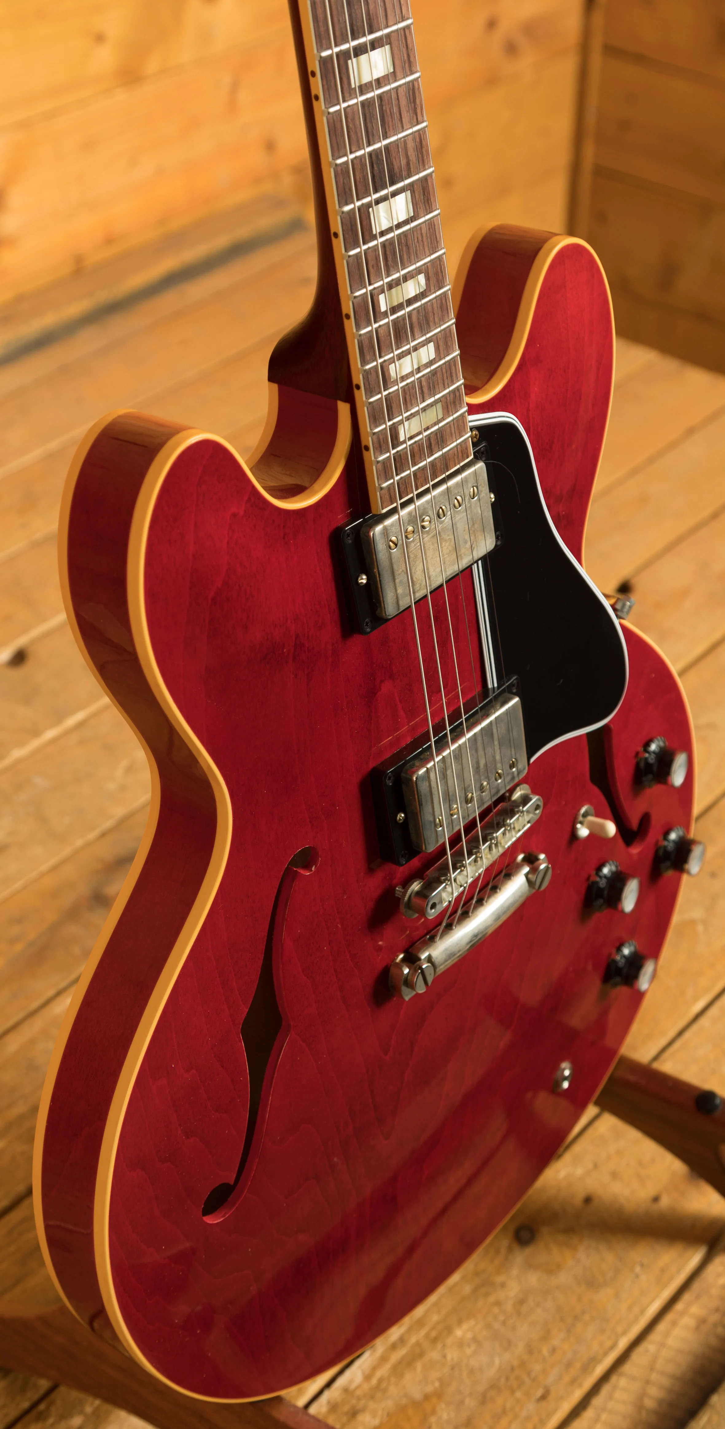 Featuring a 3-ply Maple/Poplar/Maple body, it's finished in a slick, old school 60's Cherry VOS. Delivering a rich and authentic tone, this ES-335 is super resonant and beautifully balanced; it just oozes that vintage Gibson appeal. The nitro VOS finish is incredible and gives a vintage feel without any real wear.