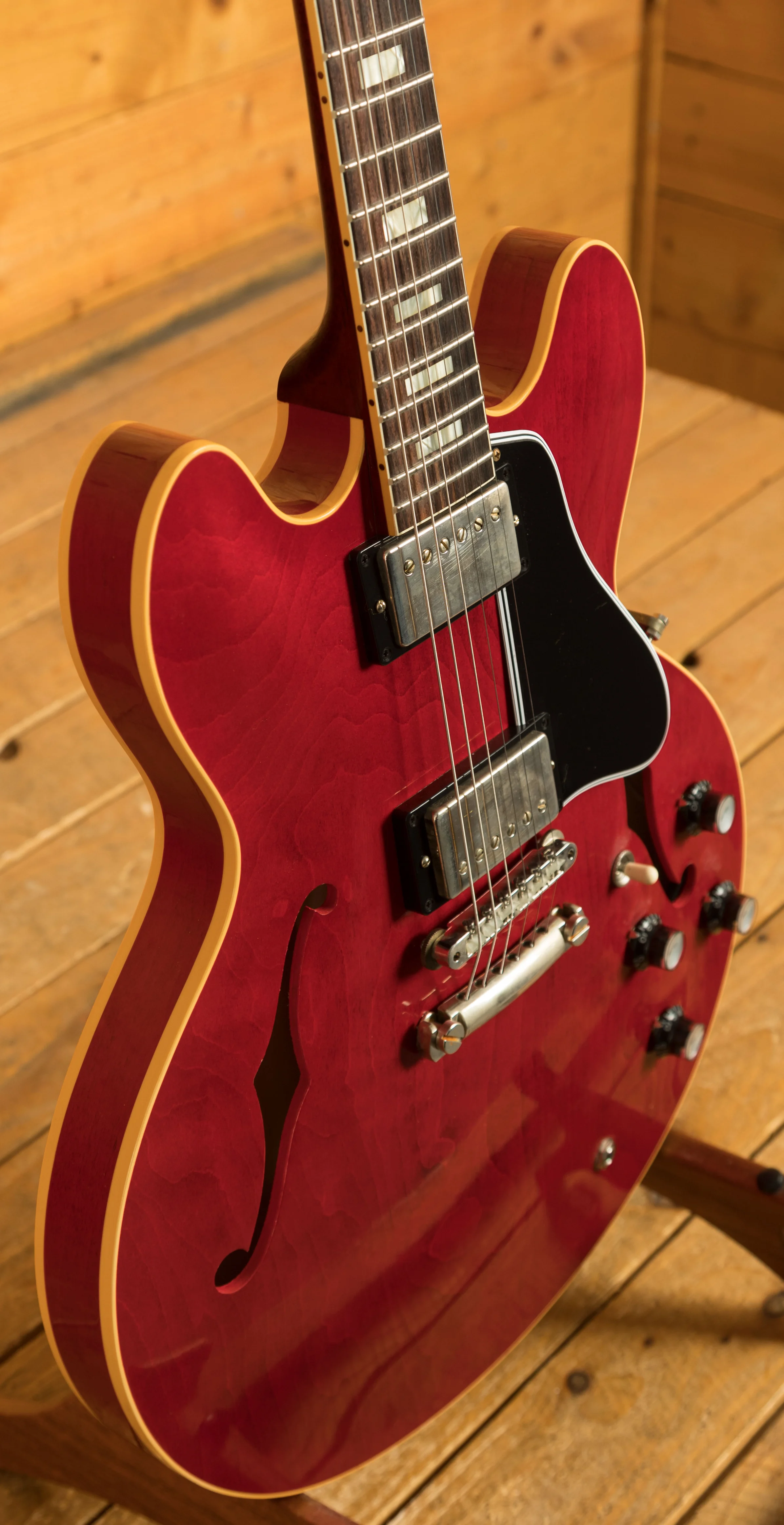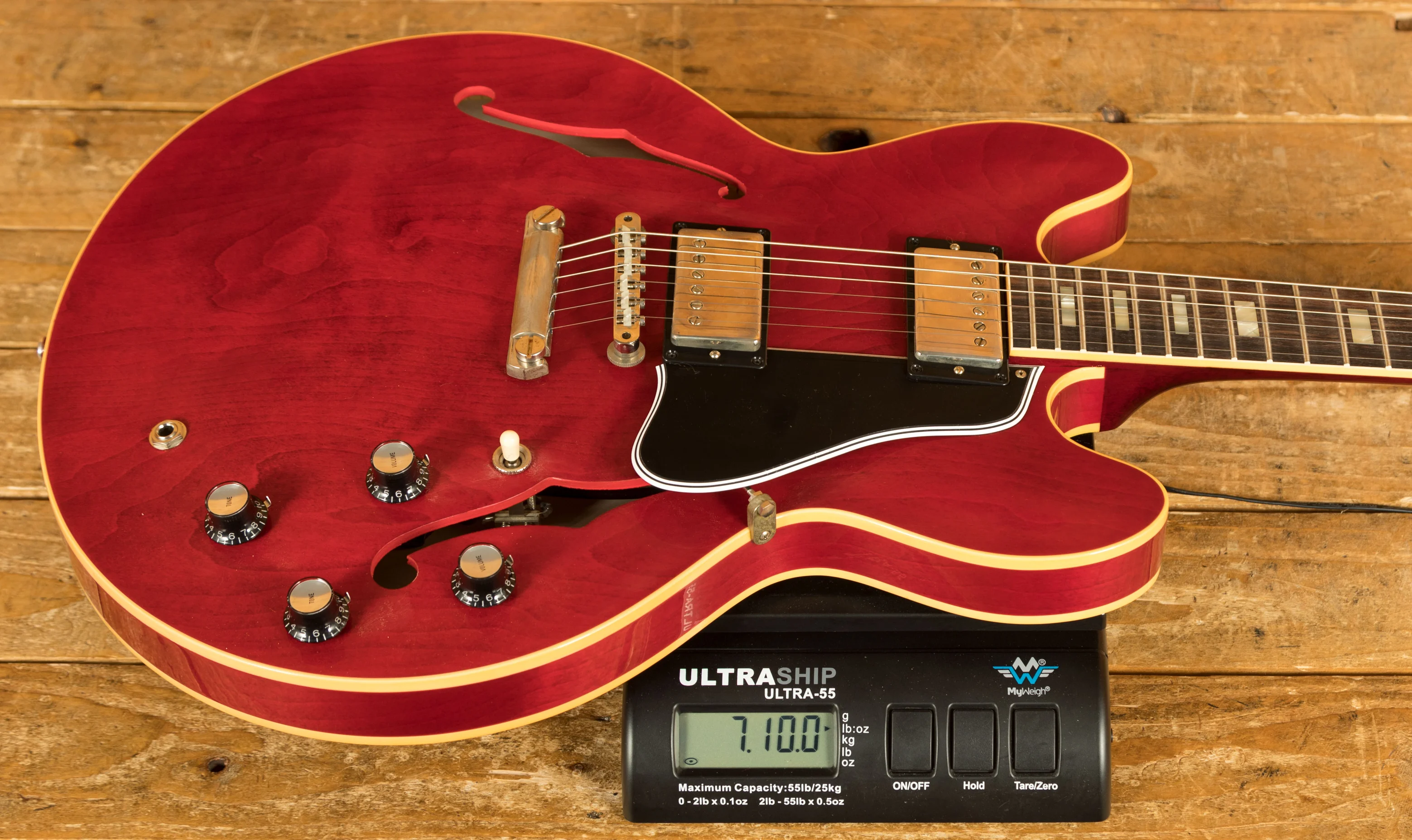 Featuring a 3-ply Maple/Poplar/Maple body, it's finished in a slick, old school 60's Cherry VOS. Delivering a rich and authentic tone, this ES-335 is super resonant and beautifully balanced; it just oozes that vintage Gibson appeal. The nitro VOS finish is incredible and gives a vintage feel without any real wear.