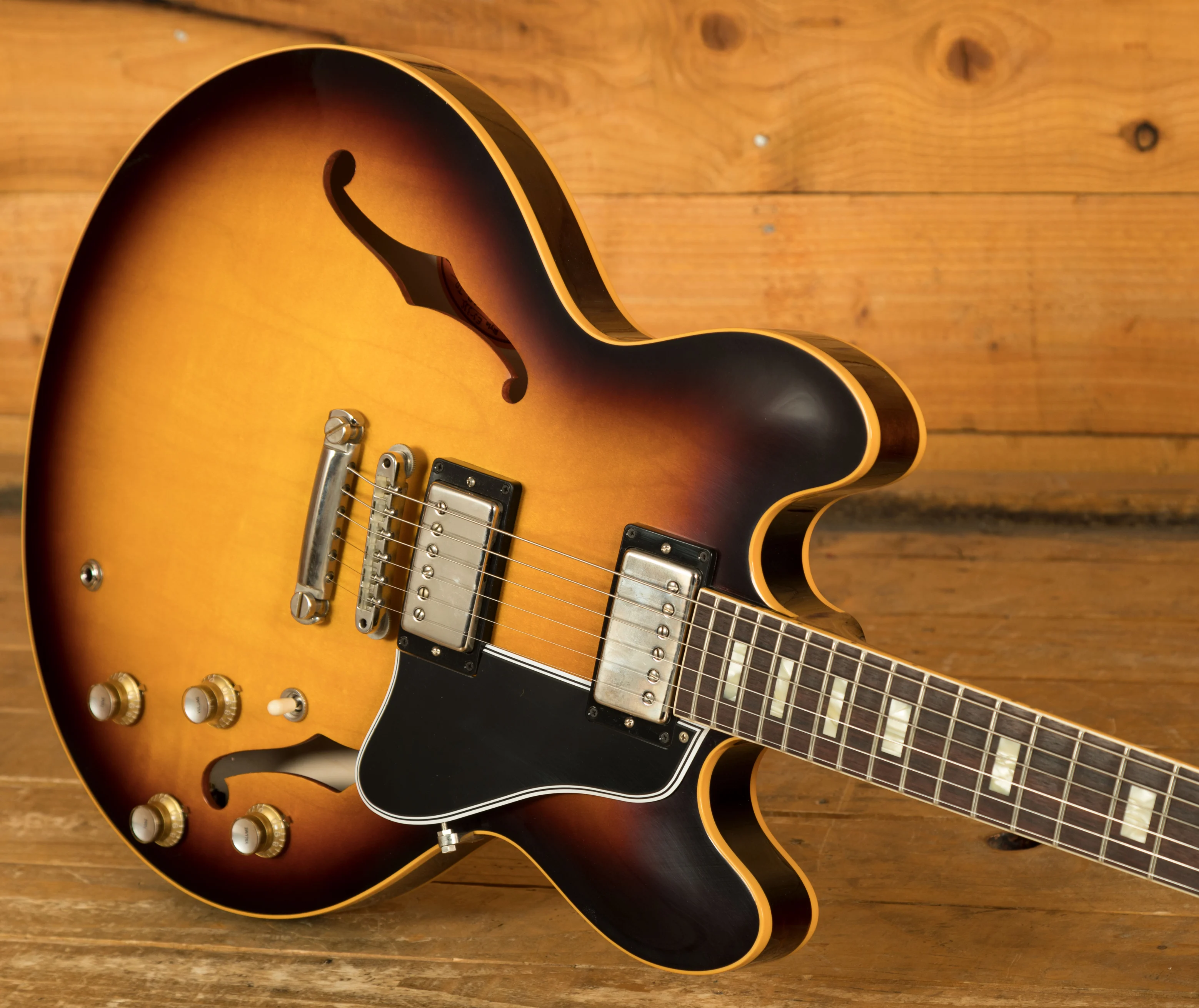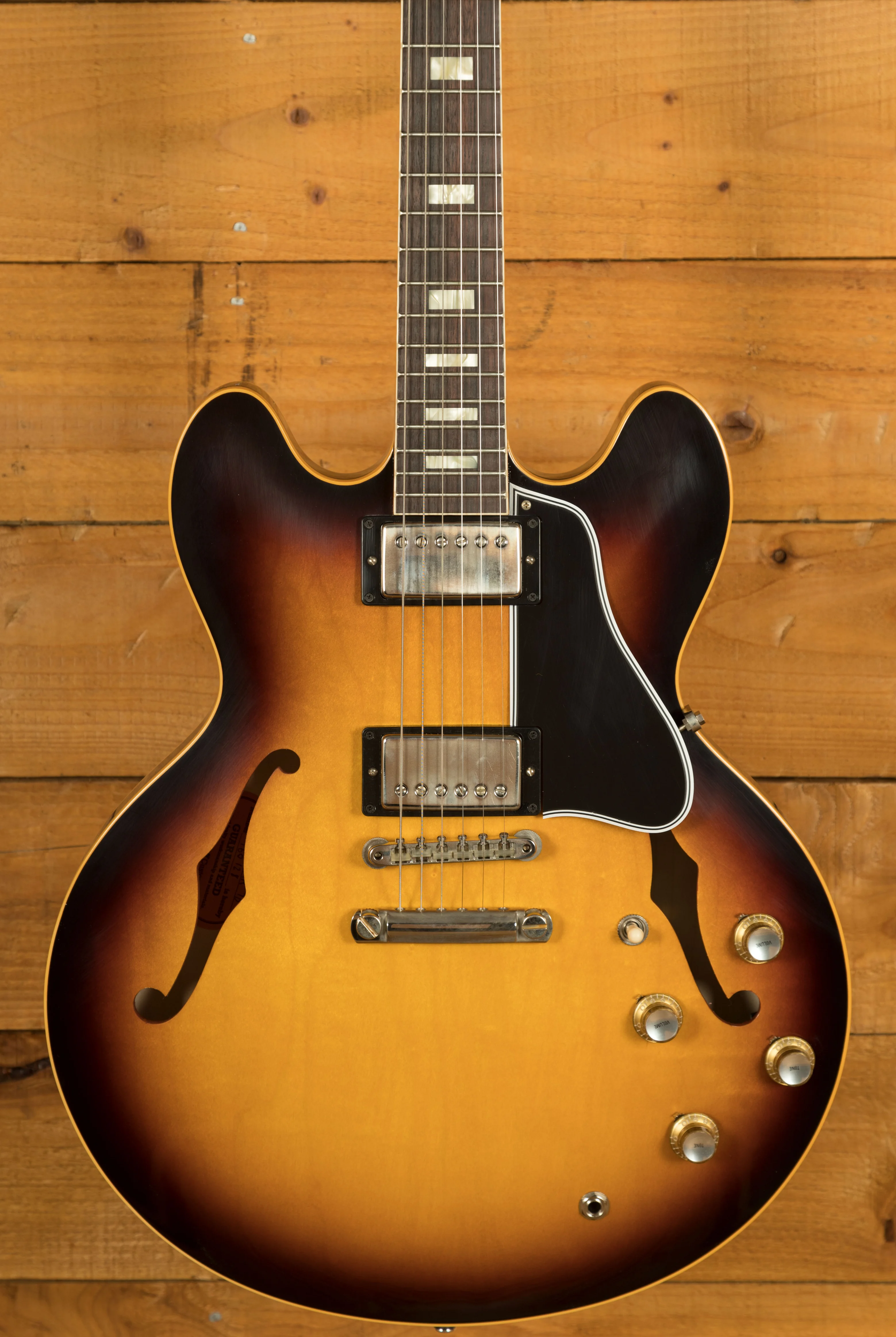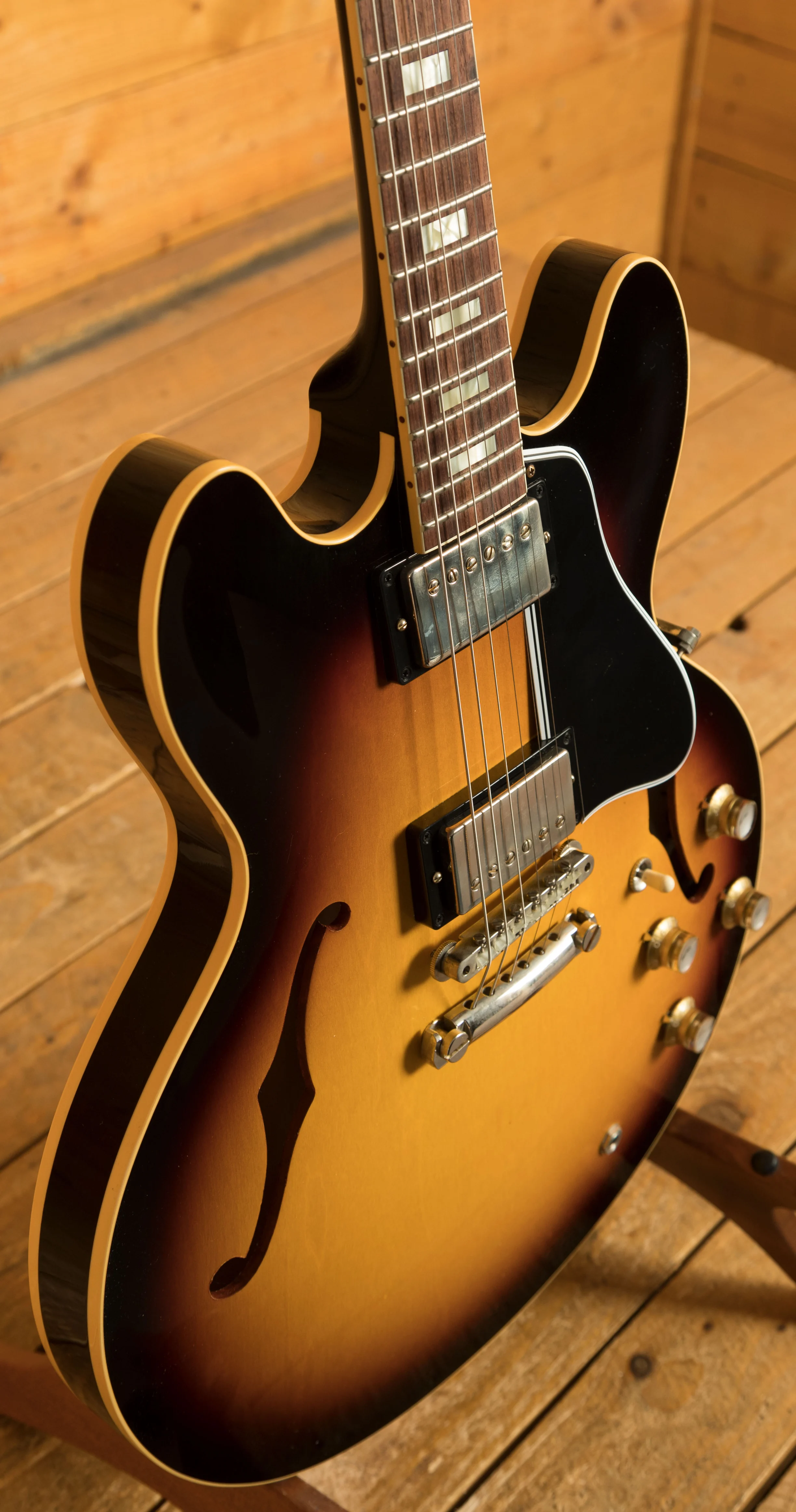Featuring a 3-ply Maple/Poplar/Maple body, it's finished in a slick, old school Vintage Burst VOS. Delivering a rich and authentic tone, this ES-335 is super resonant and beautifully balanced; it just oozes that vintage Gibson appeal. The nitro VOS finish is incredible and gives a vintage feel without any real wear.