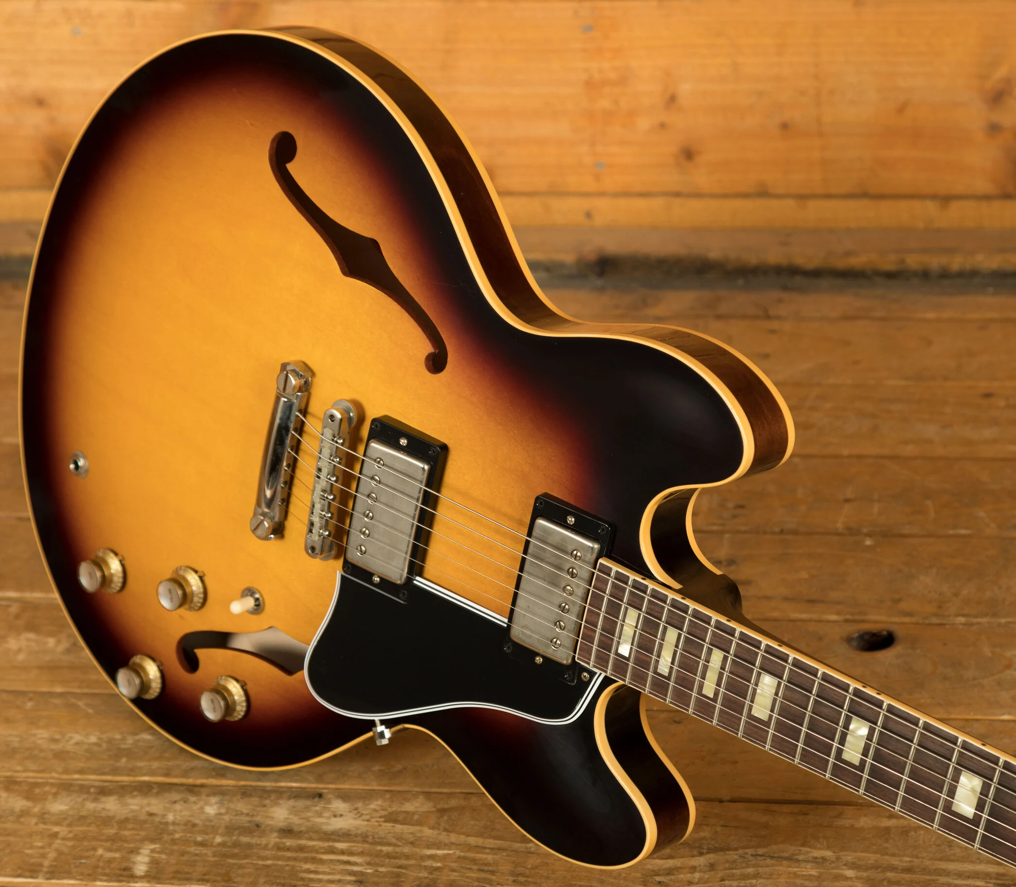 Featuring a 3-ply Maple/Poplar/Maple body, it's finished in a slick, old school Vintage Burst VOS. Delivering a rich and authentic tone, this ES-335 is super resonant and beautifully balanced; it just oozes that vintage Gibson appeal. The nitro VOS finish is incredible and gives a vintage feel without any real wear.