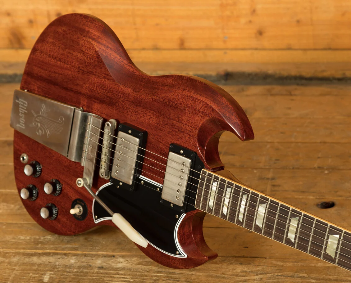 With a duo of Gibson Alnico III unpotted Custom Buckers it offers bite and a super responsive, well-rounded tone. Perfect for players looking for the authentic Gibson PAF tone, these pickups offer clarity, definition and punch. Everything you would want from an SG. Equipped with a Maestro Vibrola, you get smooth vibrato and a classic Gibson aesthetic.