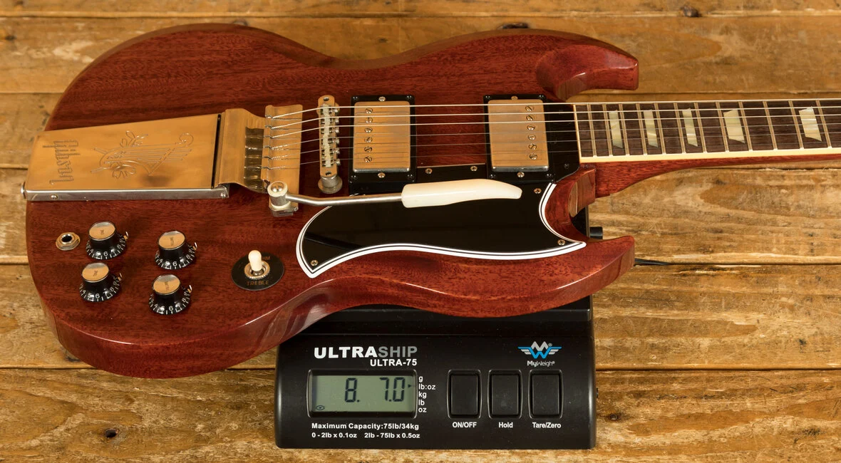 With the classic Mahogany body, finished in a Cherry Red VOS, this SG is the same mega tone machine we all know and love.
