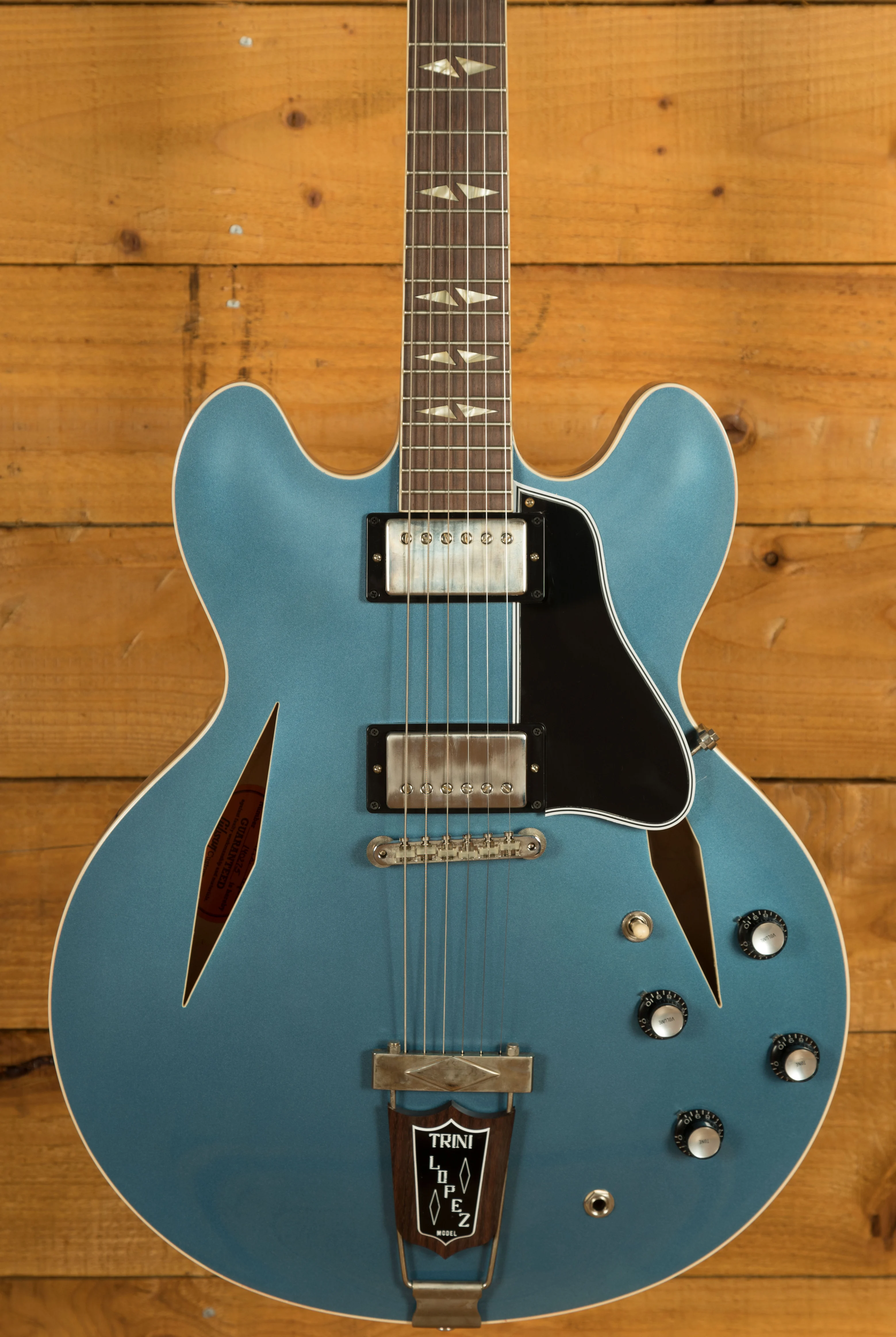 Back in 1964, the Gibson Guitar Corporation approached the legendary singer and guitarist Trini Lopez and created the Gibson Trini Lopez Standard, based on the classic Gibson 335 semi-hollow guitar but with a few rock and roll tweaks, like the distinctive Firebird headstock and diamond-shaped sound holes. Today, the originals are held in high esteem as one of Gibson's top creations. This Reissue model by the Gibson Custom Shop pays perfect homage to one of the all-time greats.