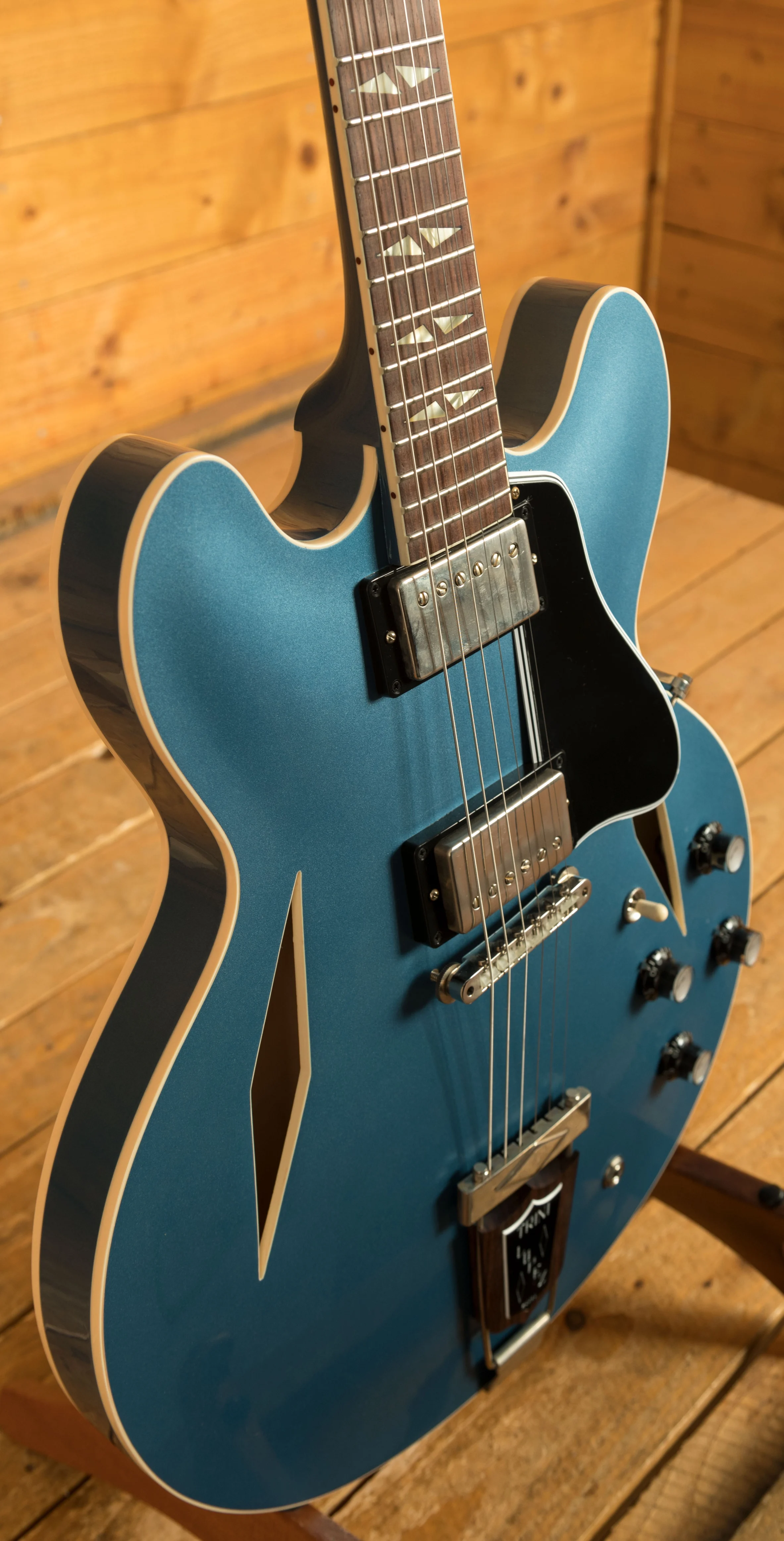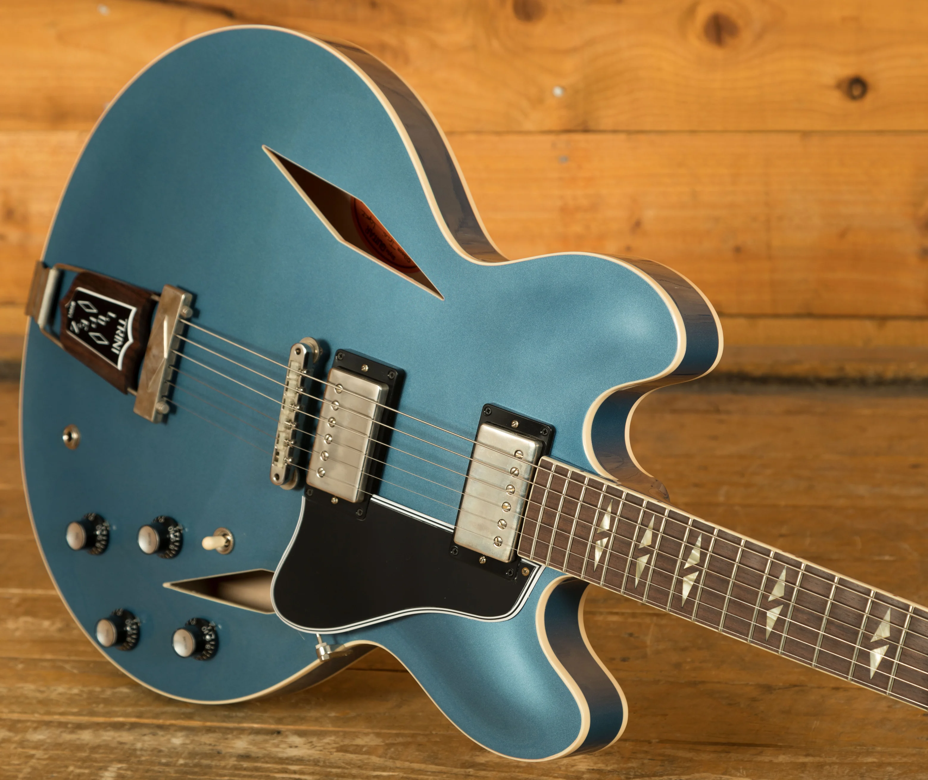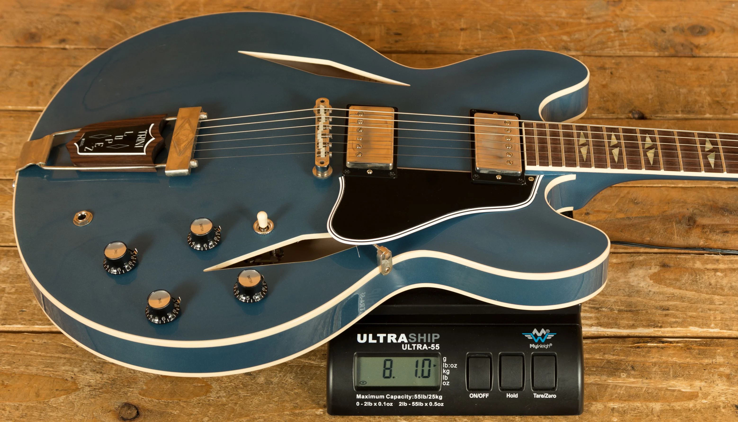 The Trini Lopez Standard features a 335 body shape constructed with a 3-Ply Maple/Poplar/Maple body and a solid Maple centreblock, which provides great feedback resistance. The body sports a really sweet Pelham Blue Nitrocellulose finish, which will age beautifully over time, just like the original '60s models.