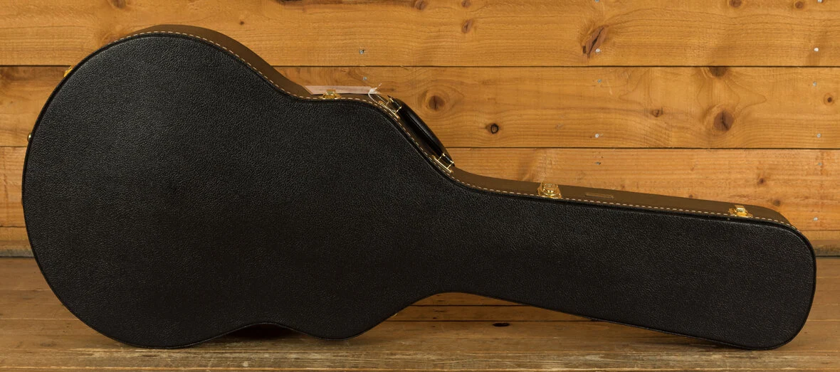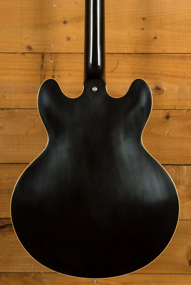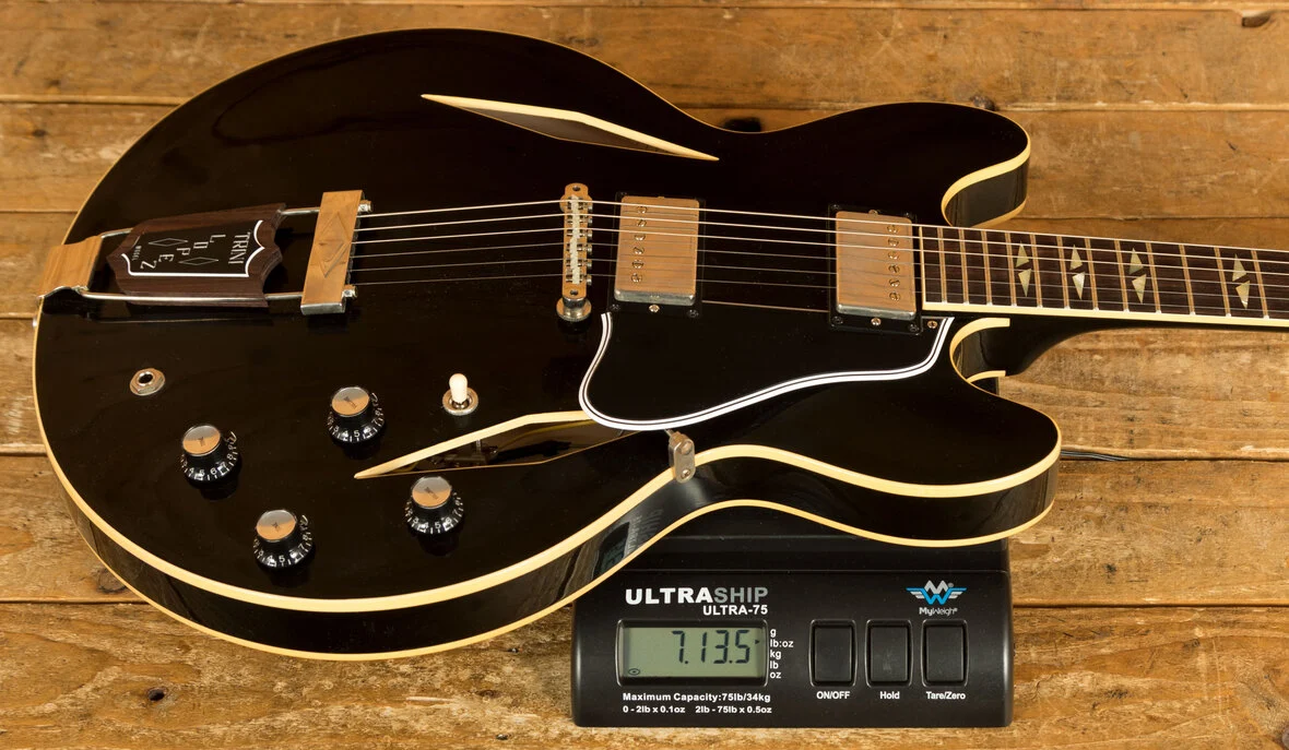 The Trini Lopez Standard features a 335 body shape. Constructed with a 3-Ply Maple/Poplar/Maple body with a solid Maple centerblock, helping to provide great feedback resistance. The body sports the classic Ebony Nitrocellulose finish which will wear beautifully over time, just like the original '60s models.