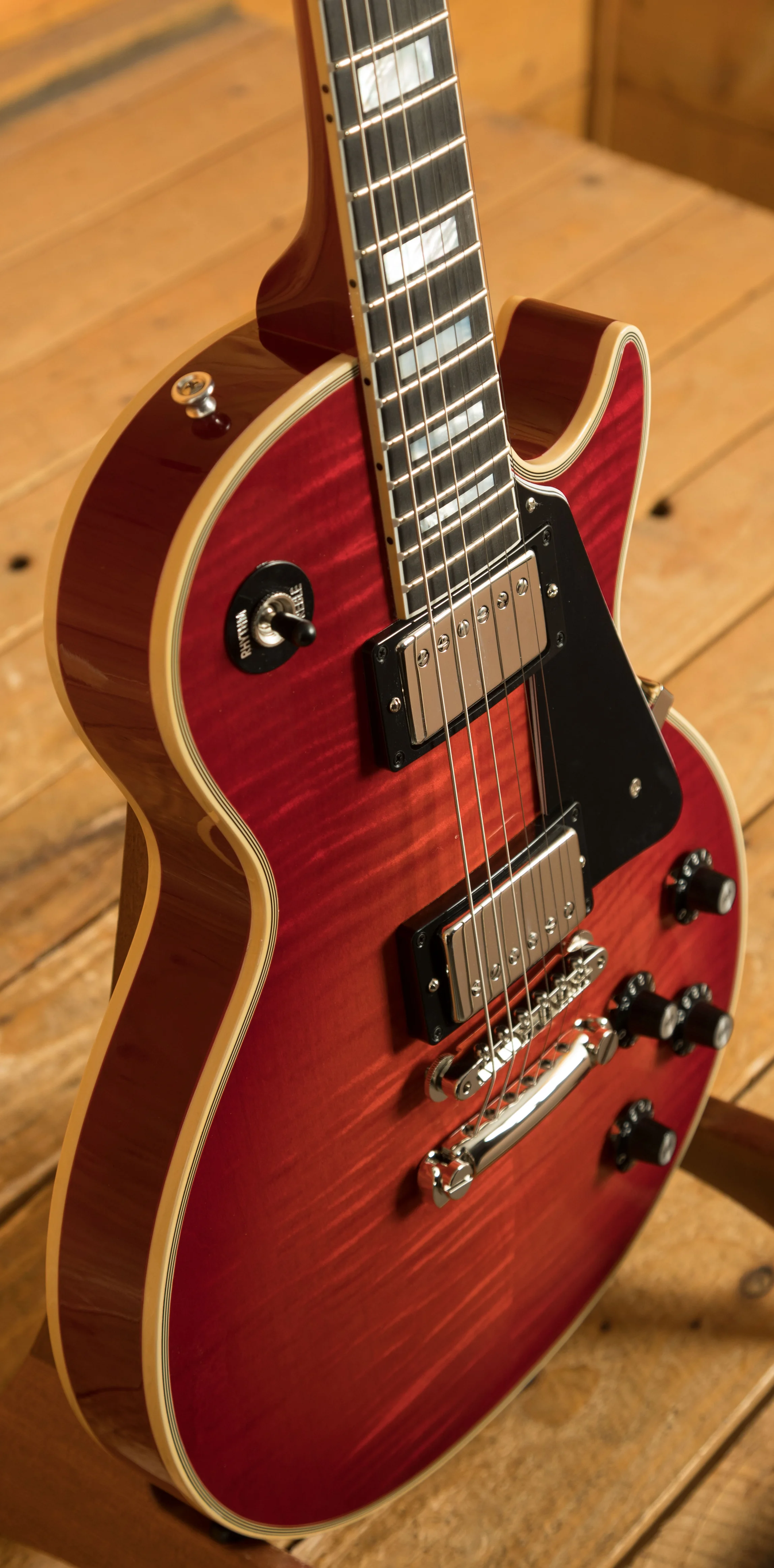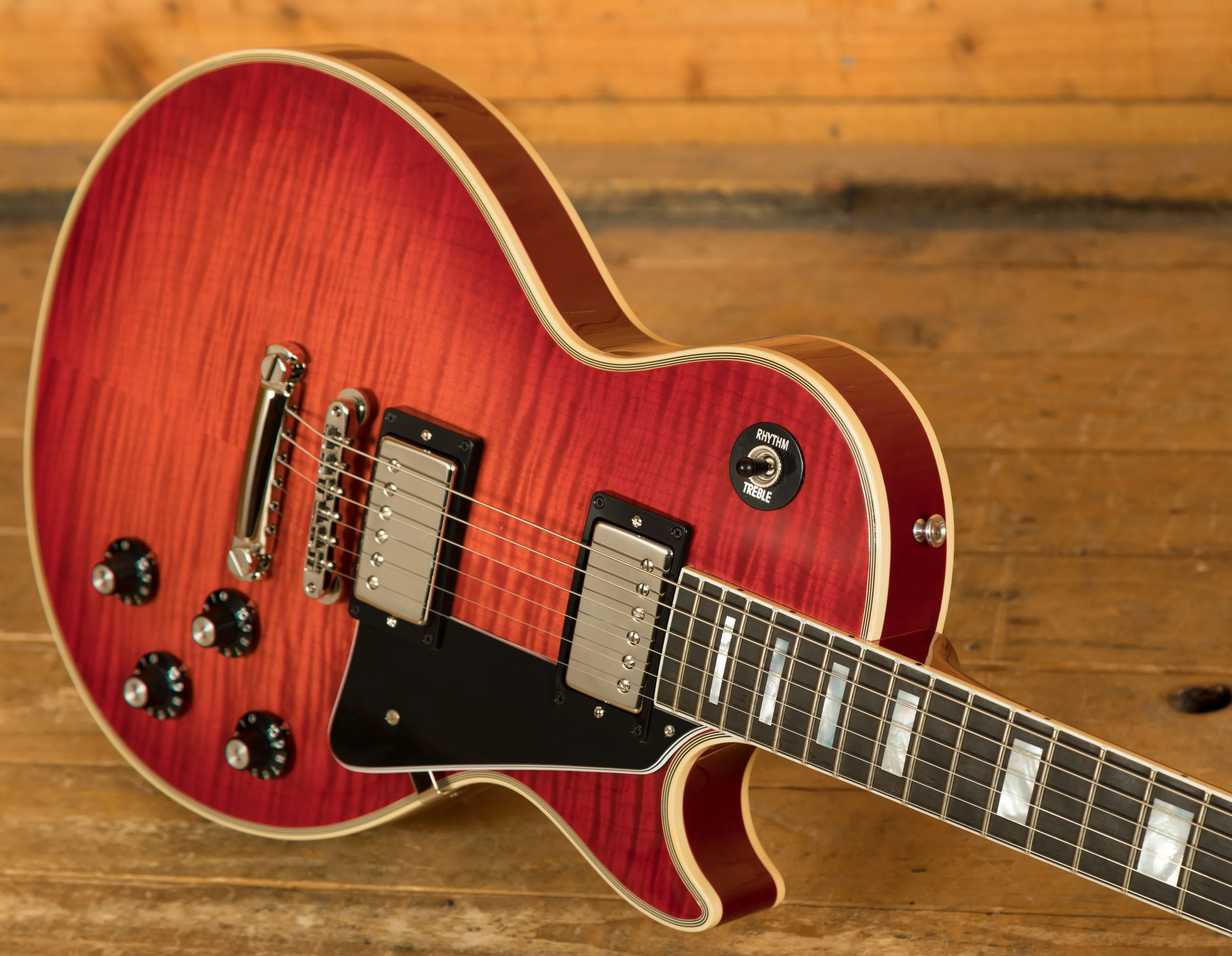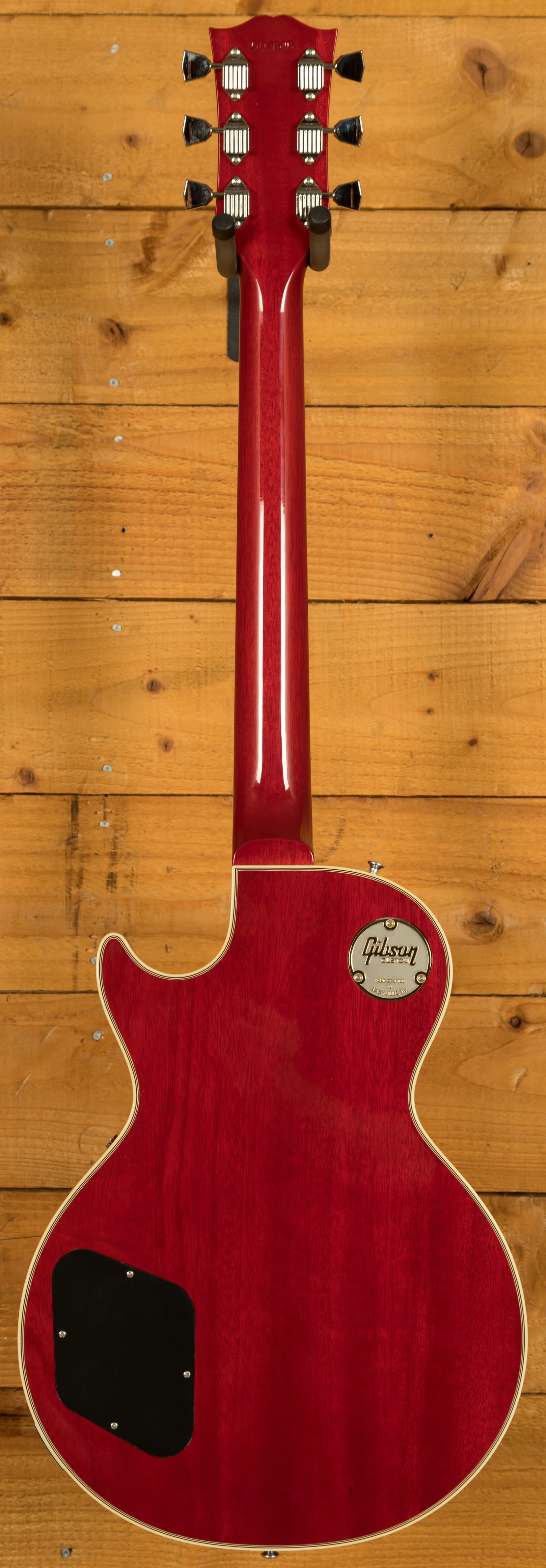 An ABR-1 bridge with stopbar and waffleback tuners keep the tuning and intonation in check. A real powerhouse, this Gibson Les Paul Custom comes complete with Gibson hardcase for great protection at home and on the road.