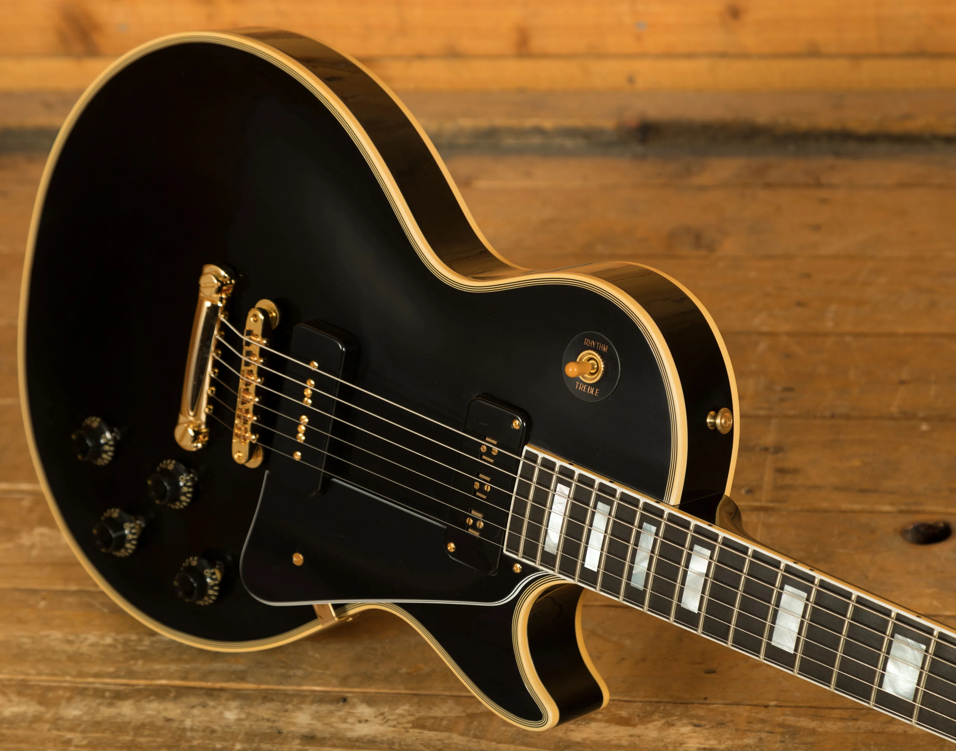 The Les Paul Custom is loaded with a duo of Gibson pickups, a P90 at the bridge and a fabled staple Alnico V at the neck. These deliver an alternative take on that authentic tone that only a Les Paul can produce.