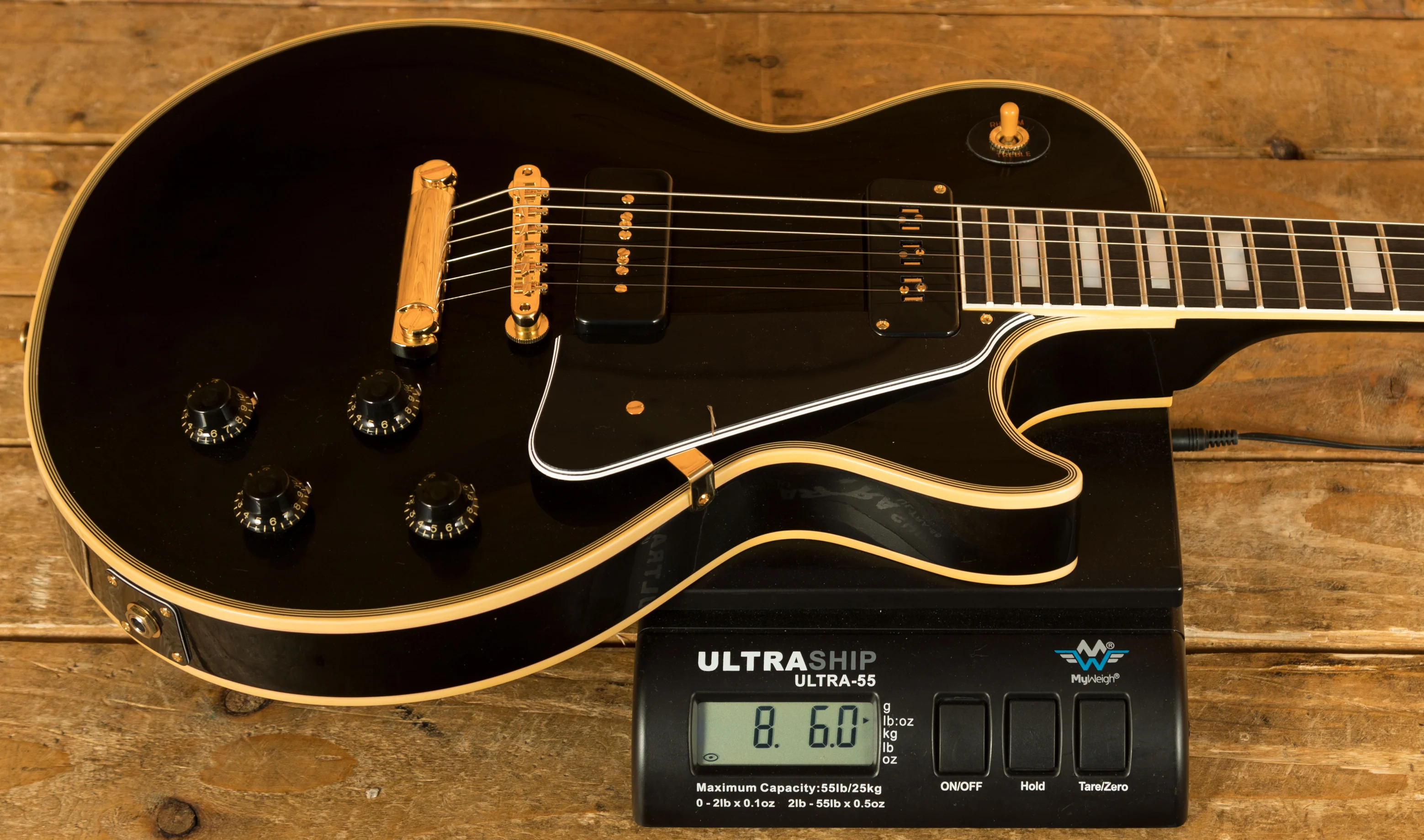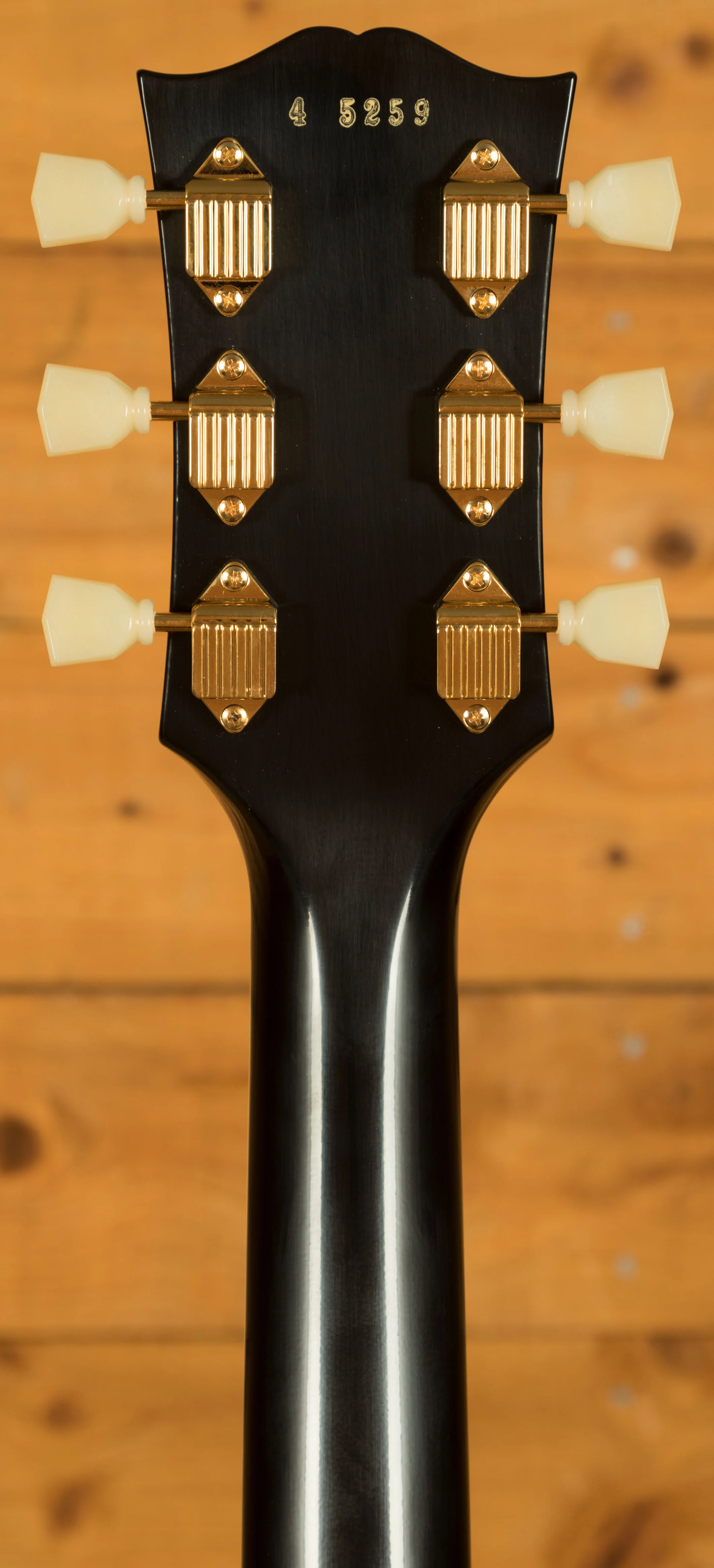 The Mahogany neck boasts a 24.75" scale length, an Ebony fingerboard with mother of pearl block inlays; it feels perfectly balanced and poised, just as a Les Paul should. With the period correct long neck tenon and hide glue fit, this guitar delivers incredible sustain and resonance.