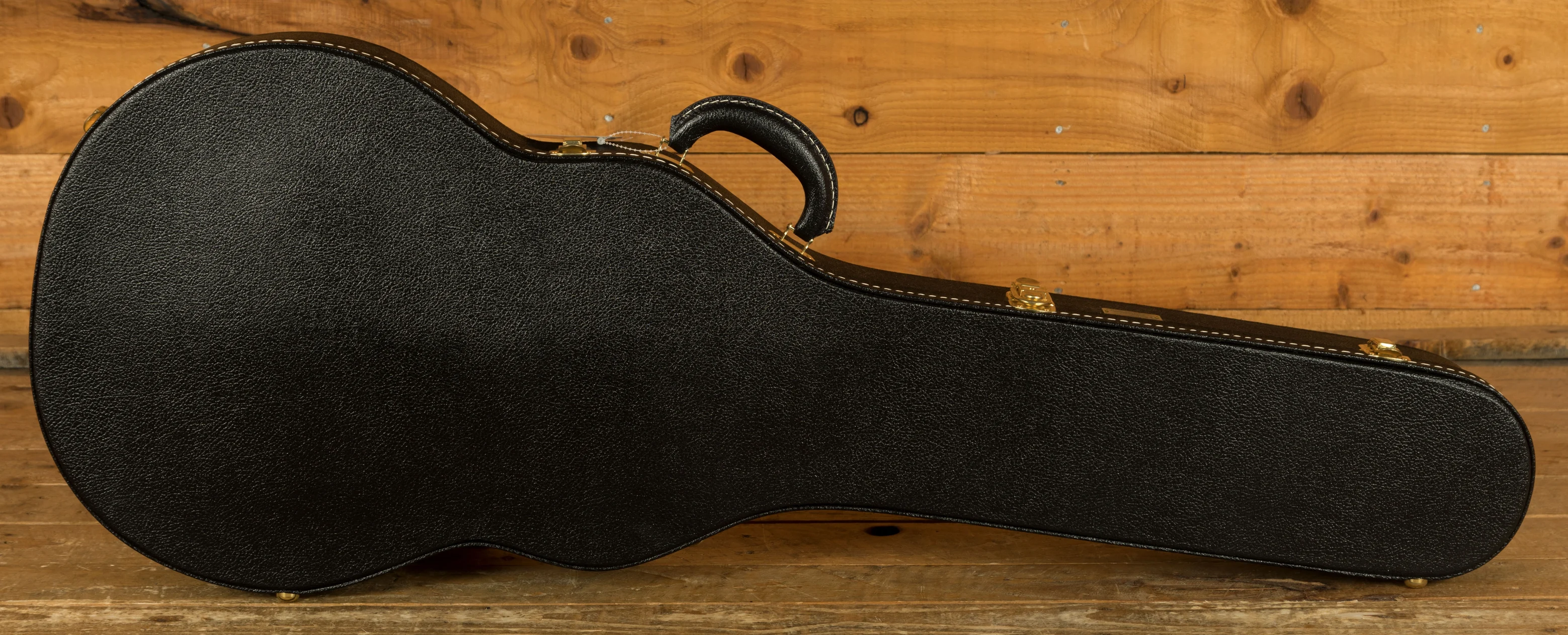 The Mahogany neck boasts a 24.75" scale length, an Ebony fingerboard with mother of pearl block inlays; it feels perfectly balanced and poised, just as a Les Paul should. With the period correct long neck tenon and hide glue fit, this guitar delivers incredible sustain and resonance.