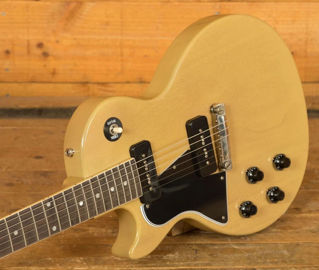 With a solid Mahogany body, finished in the iconic TV Yellow, this is super resonant and really nicely balanced. The C-Shape Mahogany neck offers a fast and responsive platform for bold chords and slick lead lines. The Rosewood fingerboard boasts 22 frets, a 12" radius, 24.75" Scale length and classic dot inlays