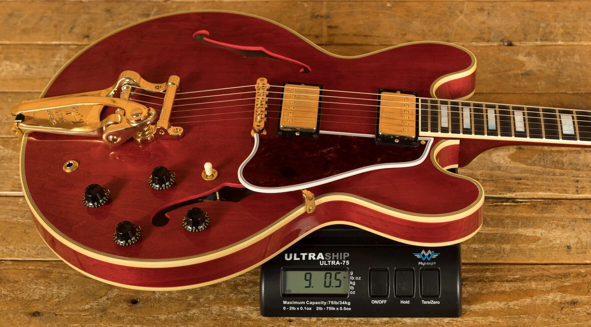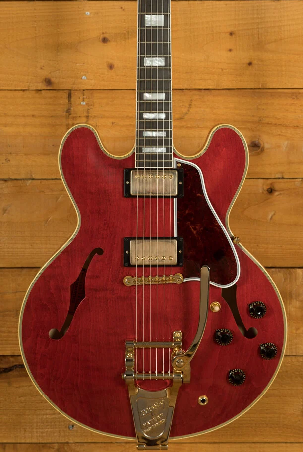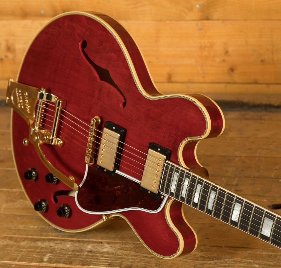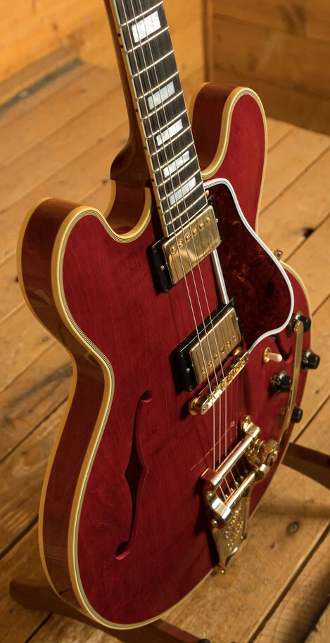 A pair of Gibson Custombucker Alnico 3 humbuckers delivers those classic PAF tones, deep, rich and resonant they offer great clarity. According to Gibson these are some of the most historically accurate PAF clones on the market, with an ultra-rich harmonic quality; it's as close as you can get to the classic 335 tone. With light aged gold hardware across the board and a ABR-1 Bridge and Bigsby Tremolo, you can look as good as you sound!