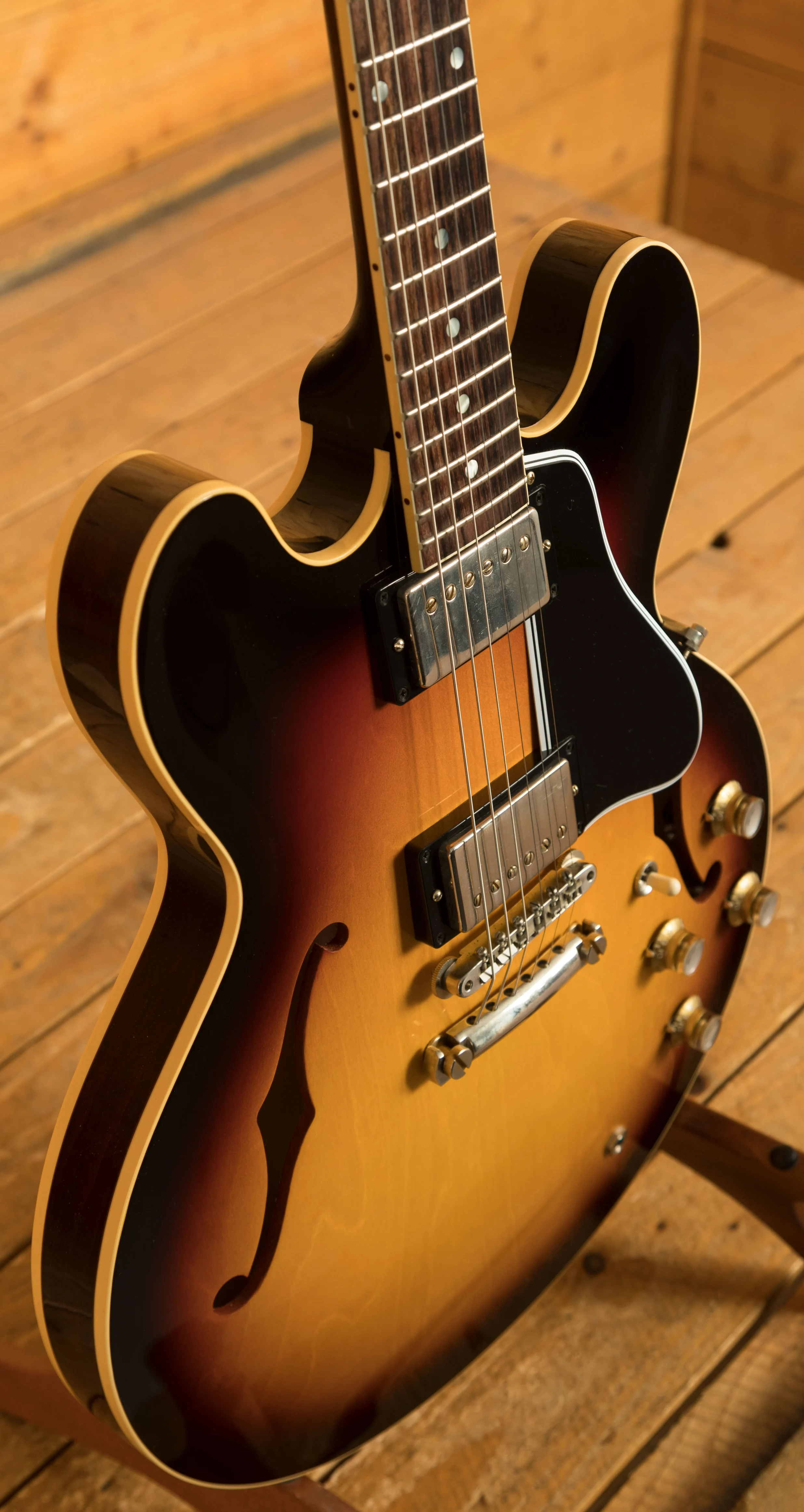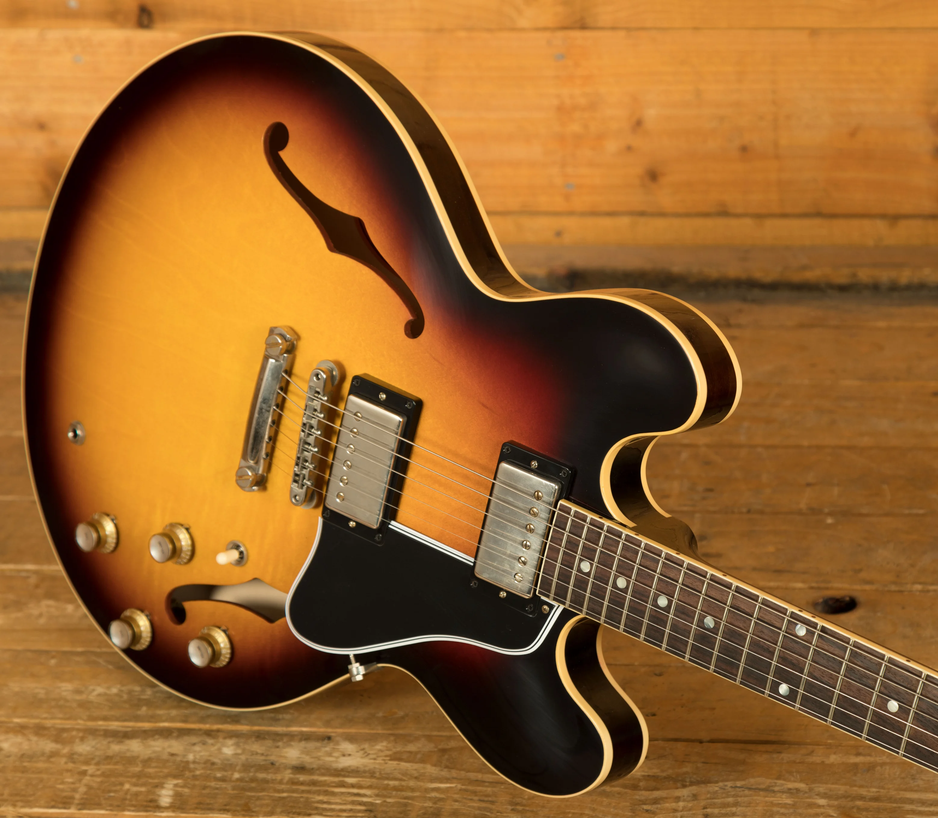 Featuring a 3-ply Maple/Poplar/Maple body, it's finished in a really cool Vintage Burst. Delivering a rich and authentic tone, the ES-335 is super resonant and beautifully balanced; it just oozes that real Gibson quality.