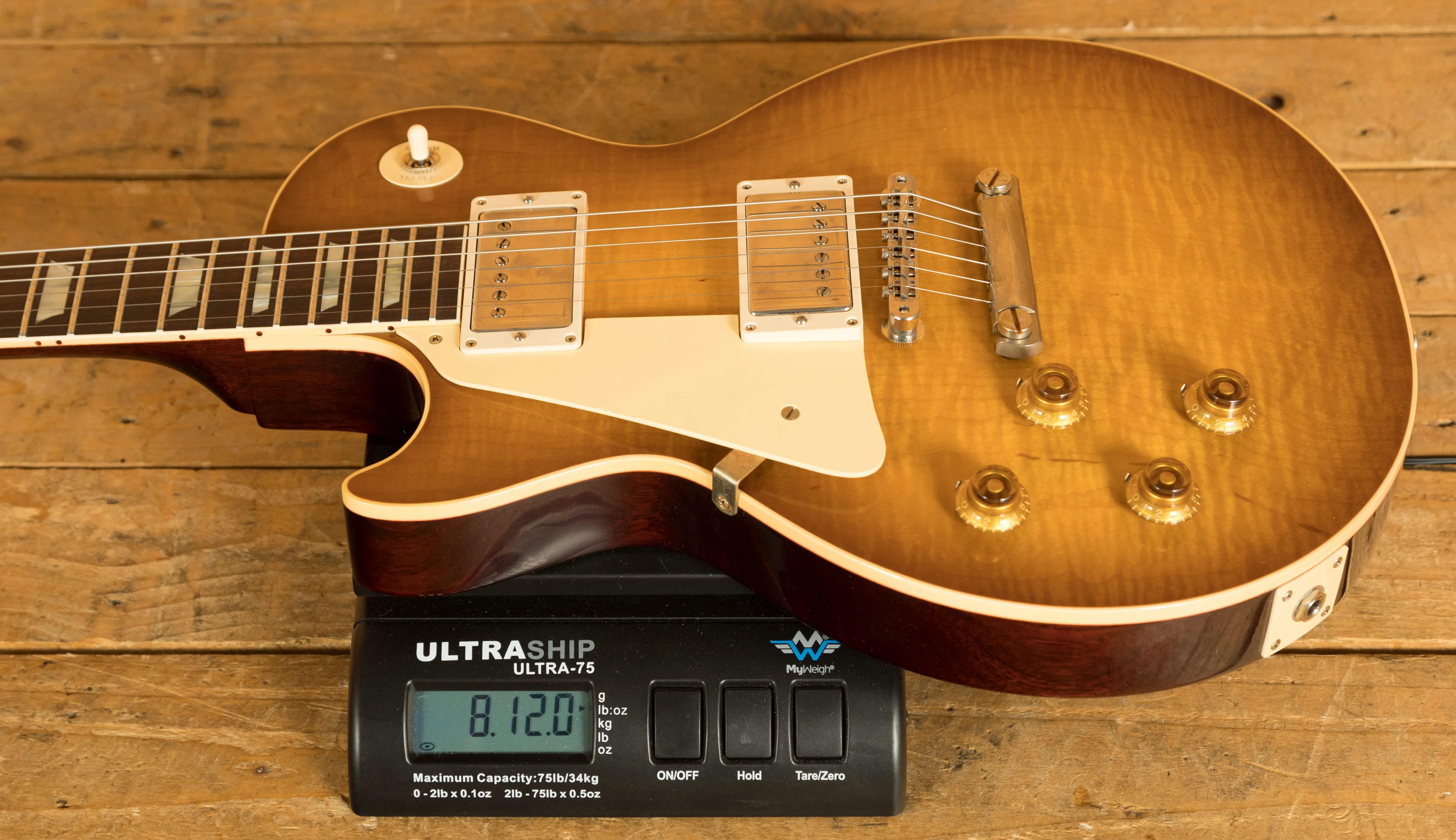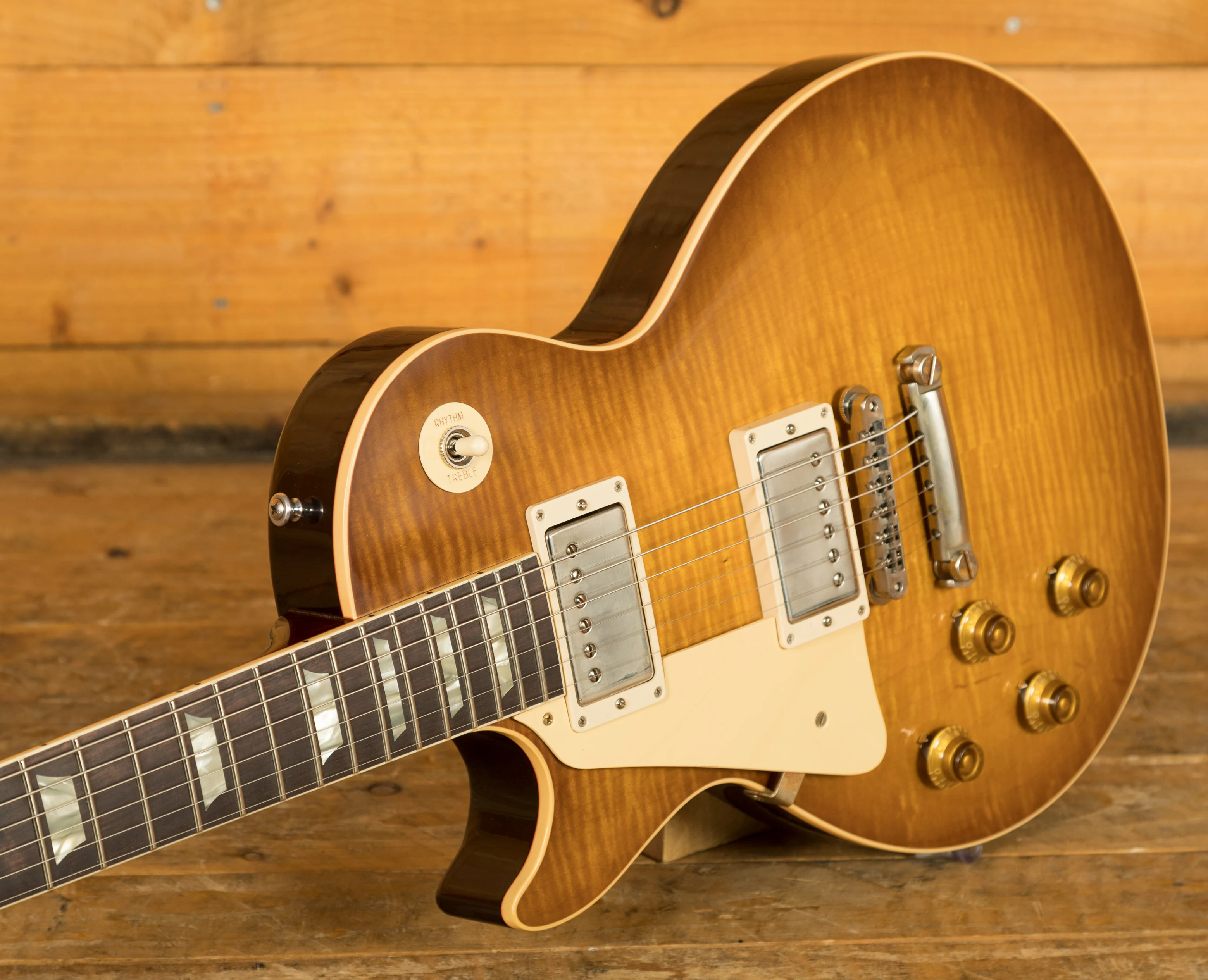 With a Mahogany body, this Les Paul benefits from a hand picked figured Maple top for the ultimate tonewood partnership. We enjoy a very strong relationship with the Gibson Custom Shop with our very own John priest taking regular trips to pick some killer tops for our guitars. Rich and super resonant it offers premium tone and timeless aesthetics, while the Dirty lemon Burst finish looks a million dollars and really allows the wood to breathe and the natural tone to sing through. With hide glue construction, this Les Paul offers true vintage tonality.