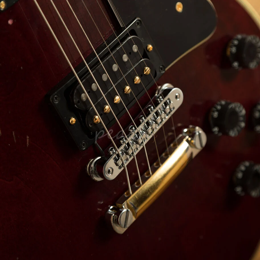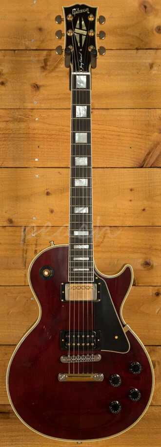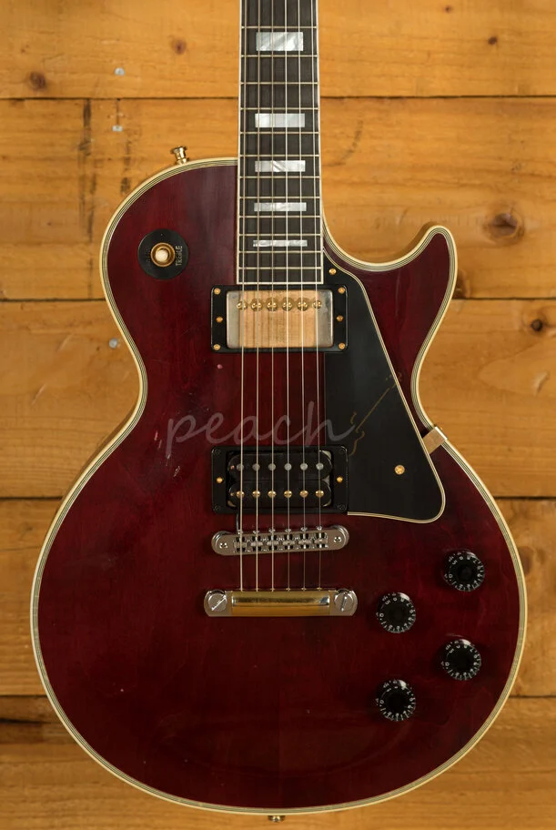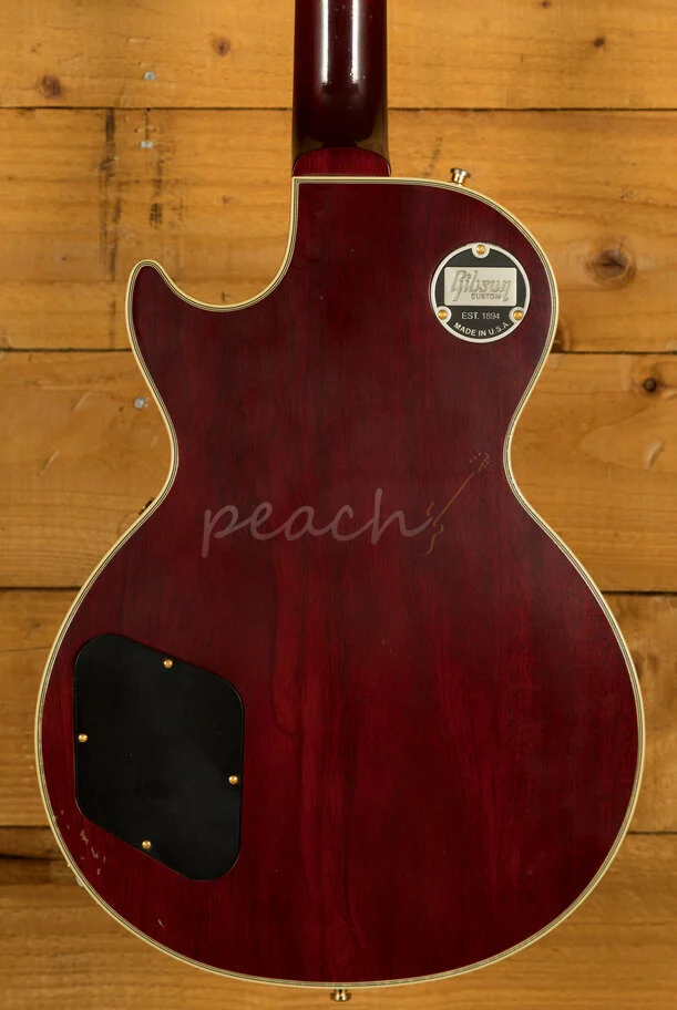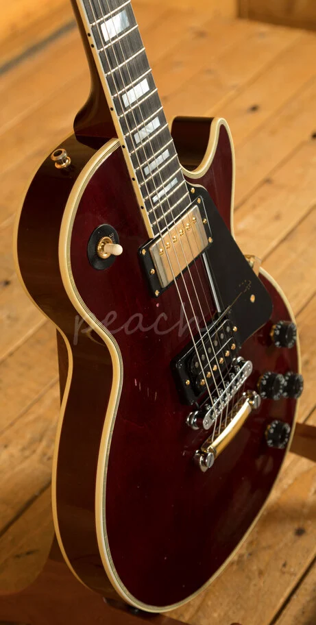 The "Wino" Les Paul Custom features classic Gibson body construction with a resonant Mahogany body topped with an awesome Plain Grain Maple top, beautifully finished in Wine Red and aged by the incredible Murphy Lab team,an all new division dedicated to the art of innovation who are highly skilled in aging guitars using the latest and most sophisticated technology and tools. Headed by legendary builder "Tom Murphy". Finished off with Aged Gold hardware these look super slick.