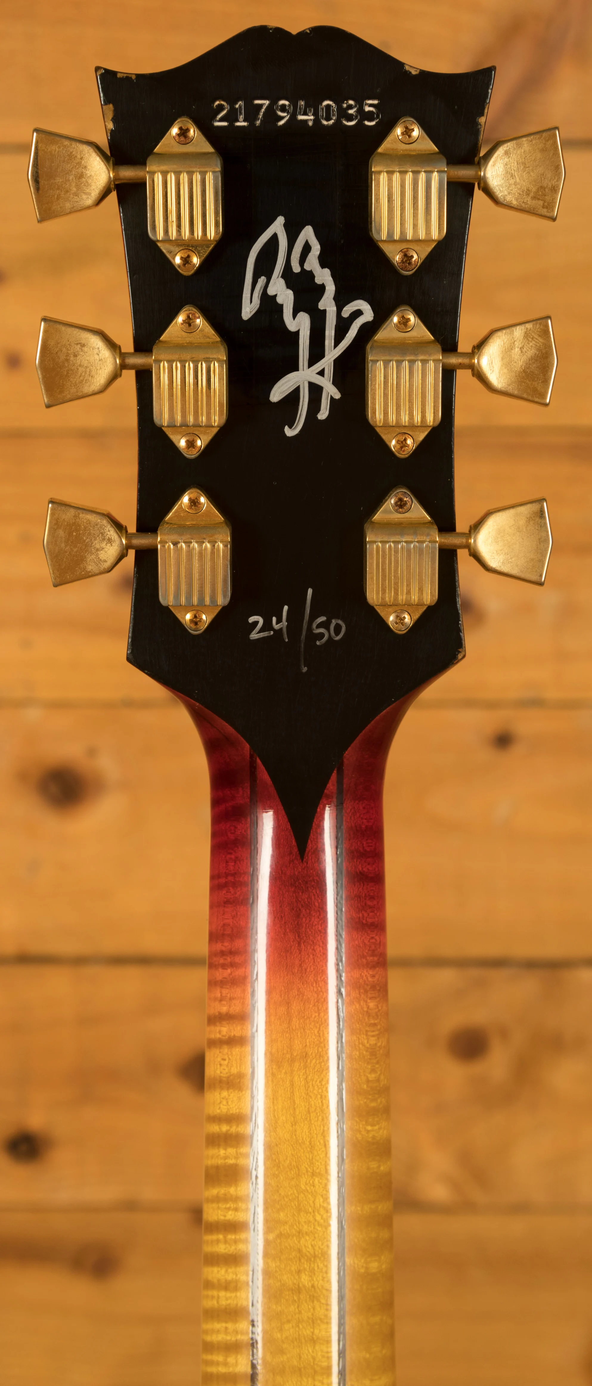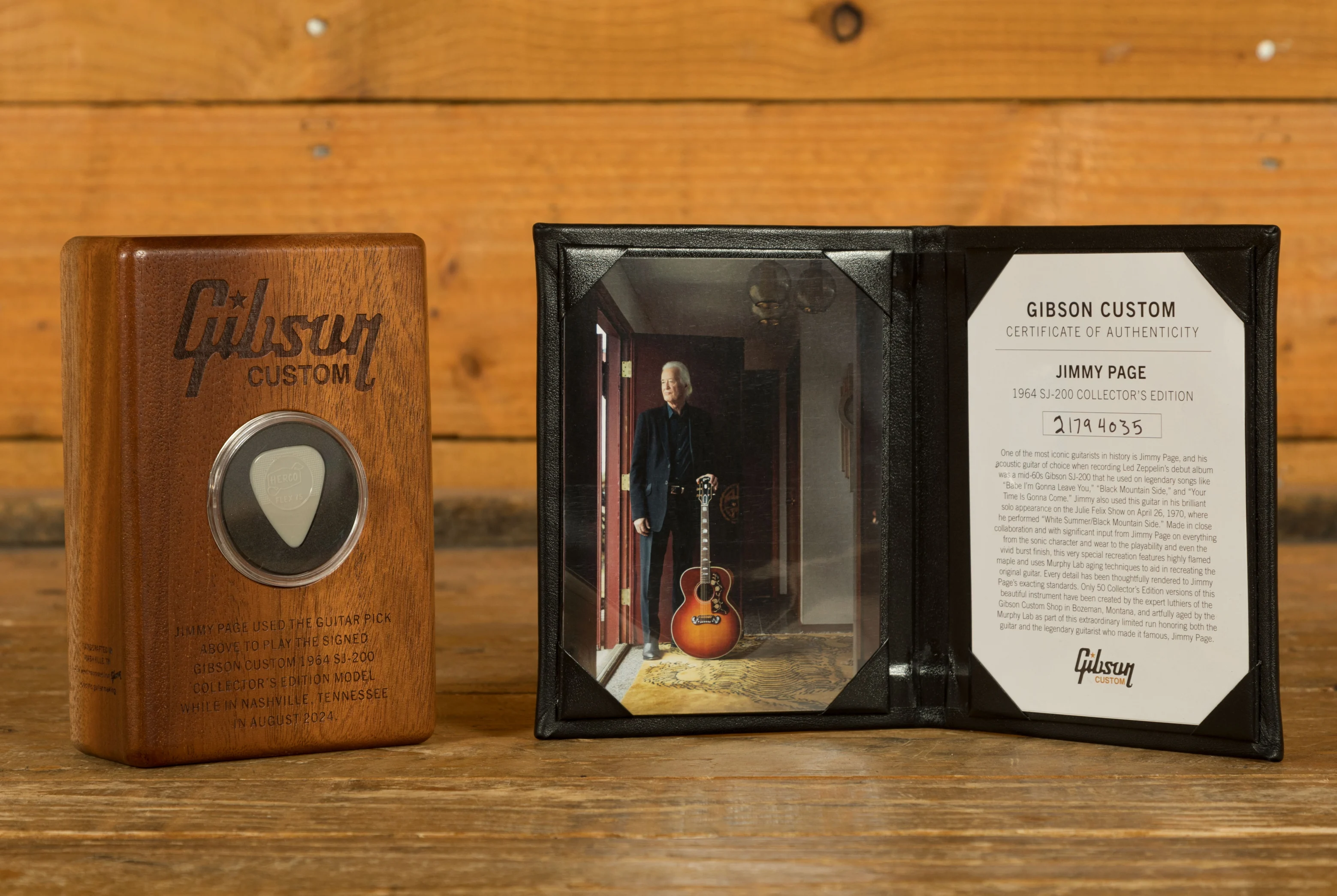 The guitar has been aged using Gibson Custom's Murphy Lab techniques, which were specifically tailored to replicate the look and feel of Jimmy Page's original instrument. This light ageing process adds to the authenticity, capturing the essence of a vintage guitar while maintaining modern playability. The guitar comes with a Gibson Custom hardshell case featuring Page's iconic Zoso logo as well as a Gibson "The Garden" vintage-style strap, a Gibson handcrafted wooden guitar stand, an additional Tune-O-Matic bridge with gold-plated brass saddles, and a Zoso Certificate of Authenticity.